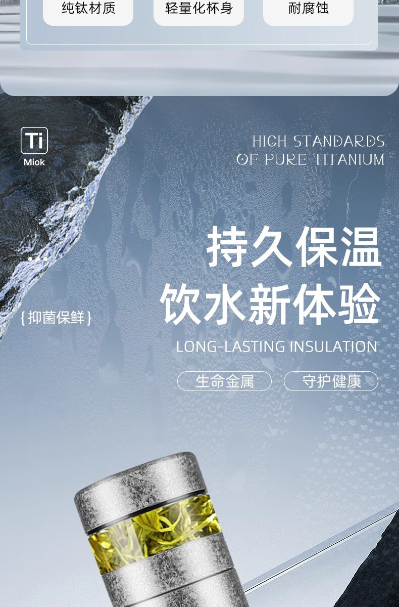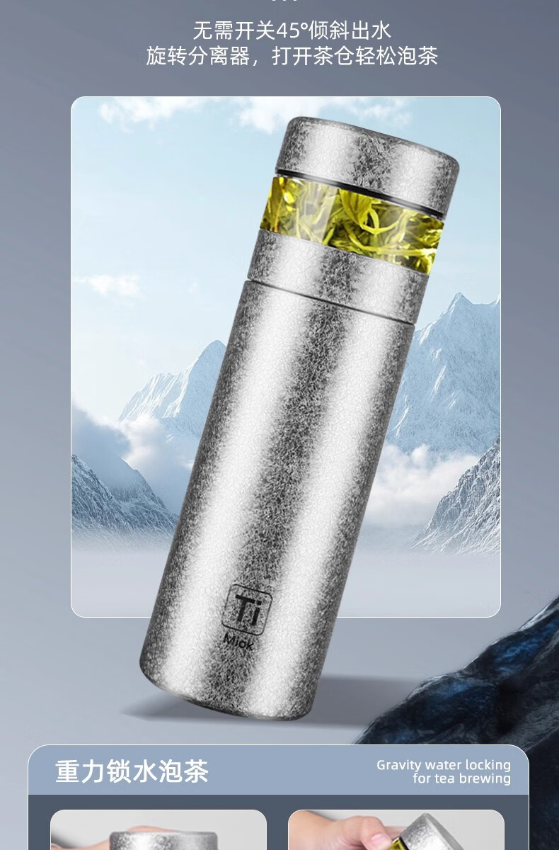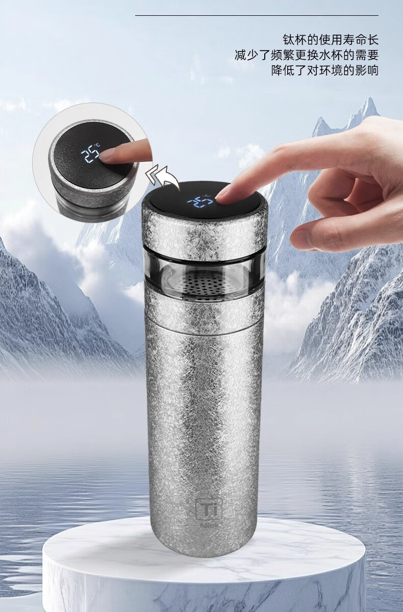 纯钛保温杯数显茶水分离杯便携大容量泡茶杯礼品保温杯水杯内外HL 全新理前