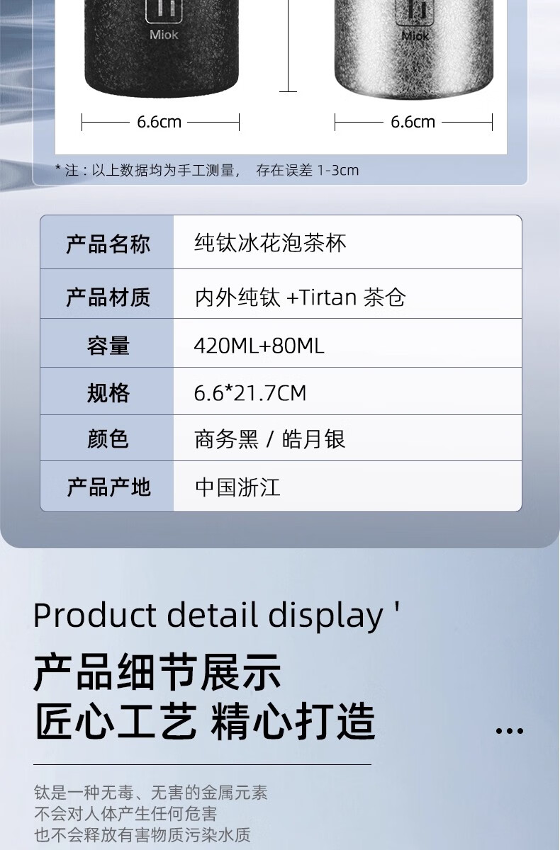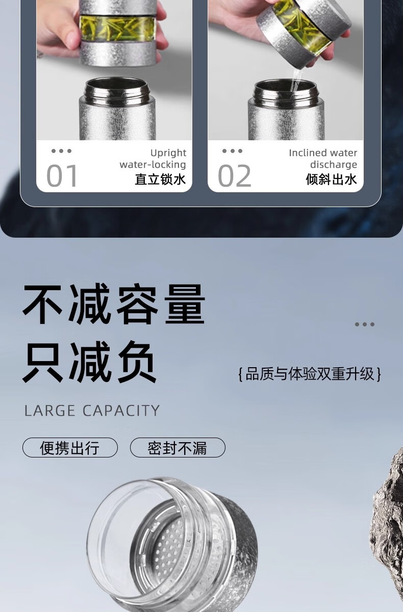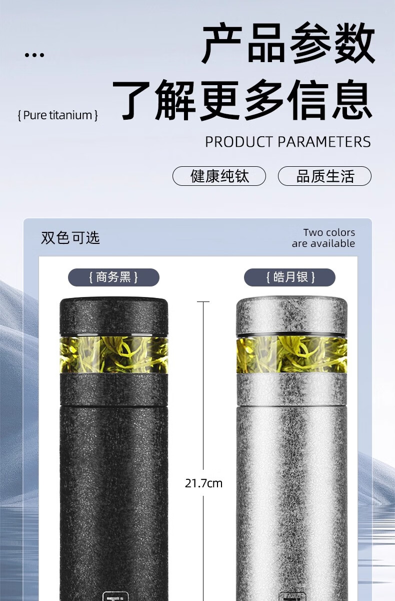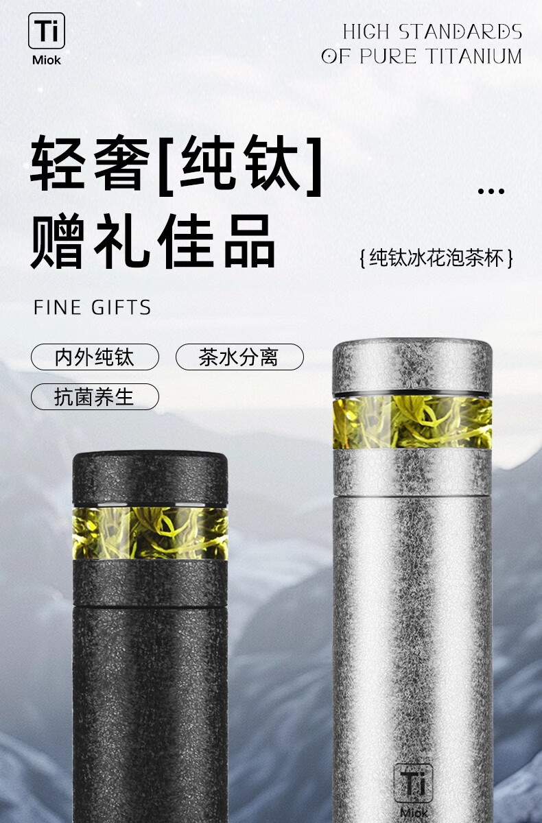 纯钛保温杯数显茶水分离杯便携大容量泡茶杯礼品保温杯水杯内外HL 全新理前