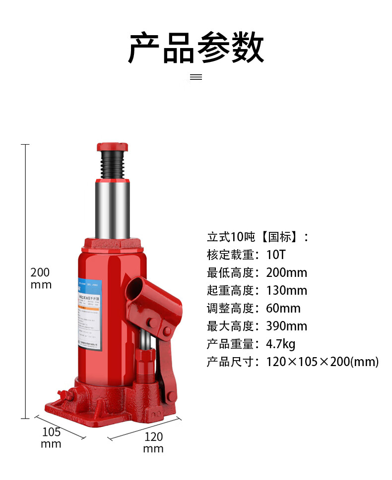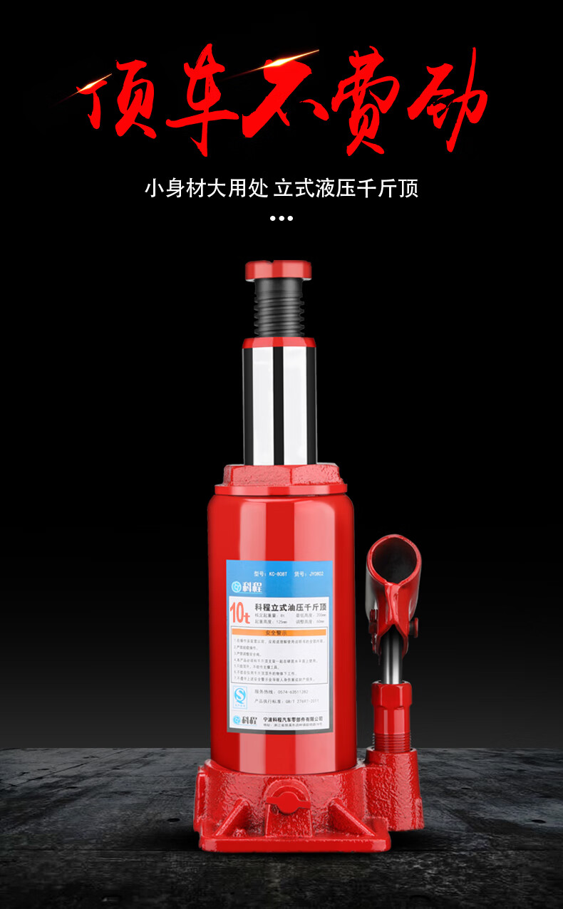 科程10吨立式液压千斤顶 汽车千斤顶小轿车用车载货车SUV面包车千金顶 立式国标 10吨 塑盒装