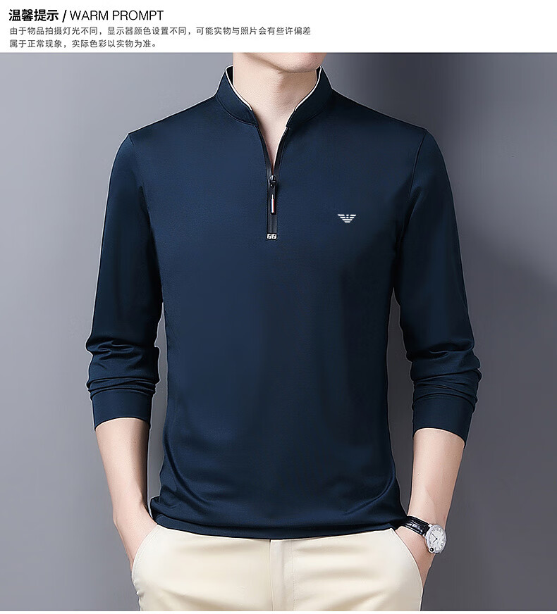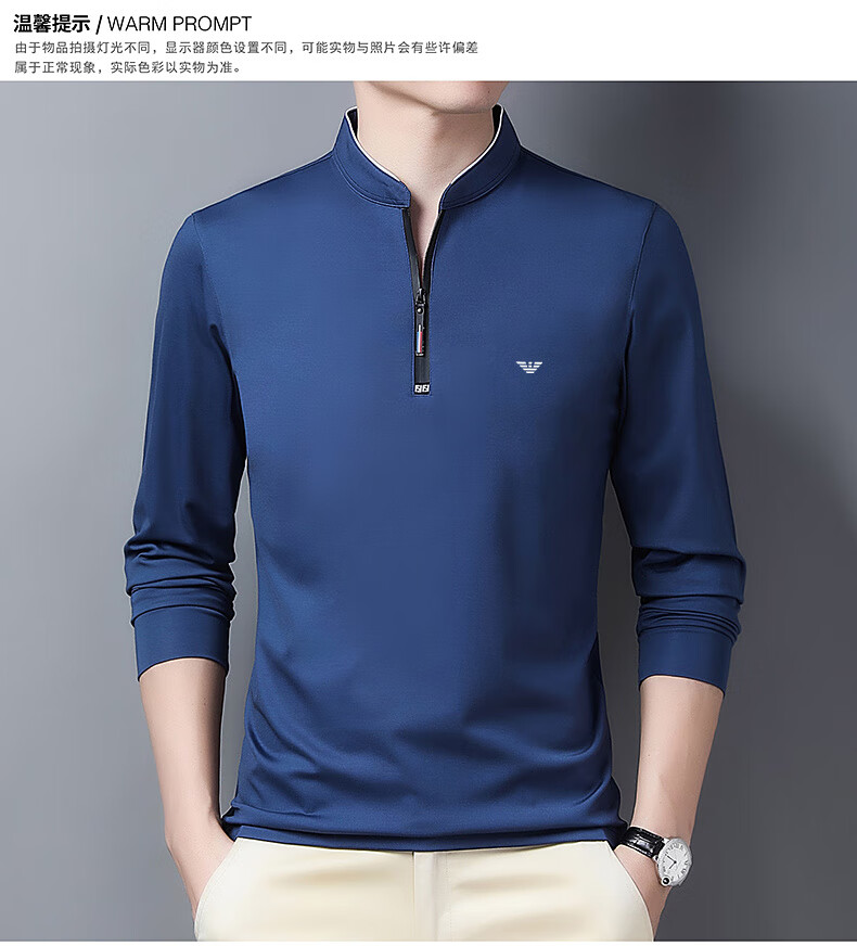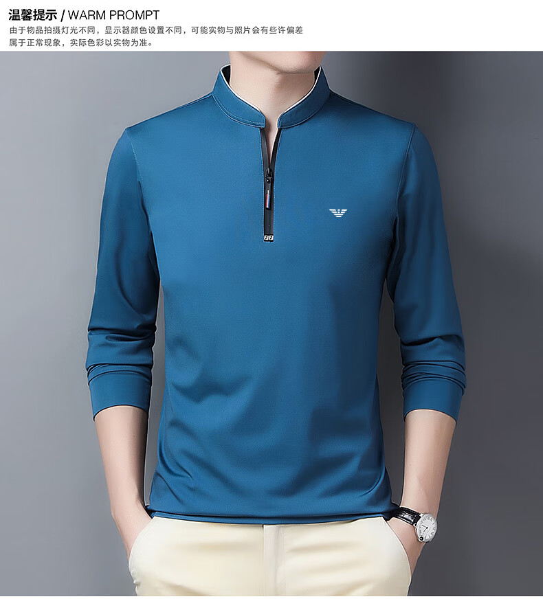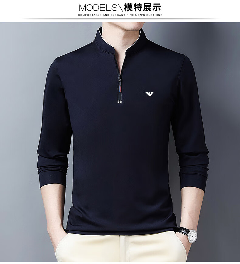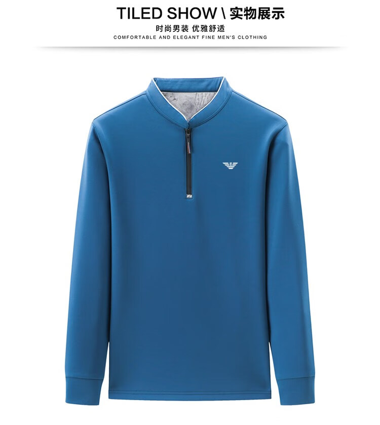 AX 阿玛尼 高端品牌感中男长袖T恤秋冬休闲加绒立领运动衫男装 GA/6623宝兰 薄款 M 165