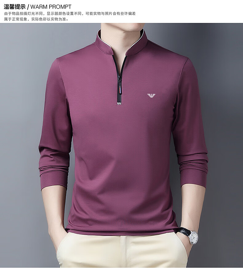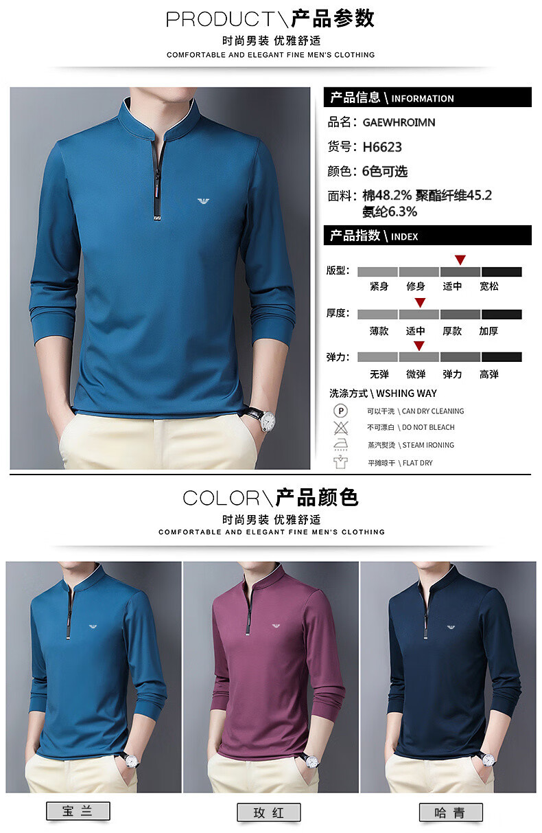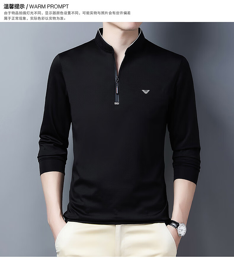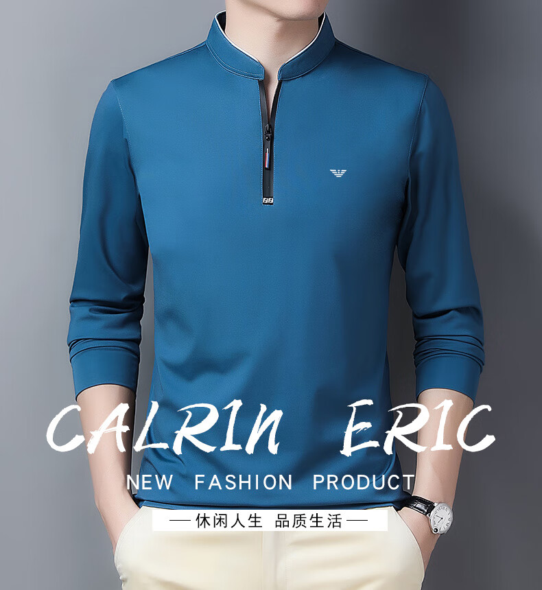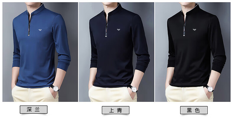 AX 阿玛尼 高端品牌感中男长袖T恤秋冬休闲加绒立领运动衫男装 GA/6623宝兰 薄款 M 165