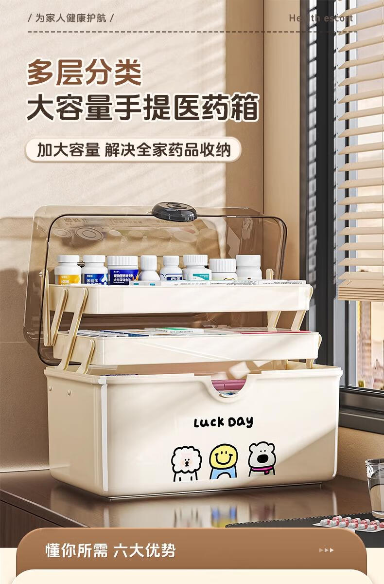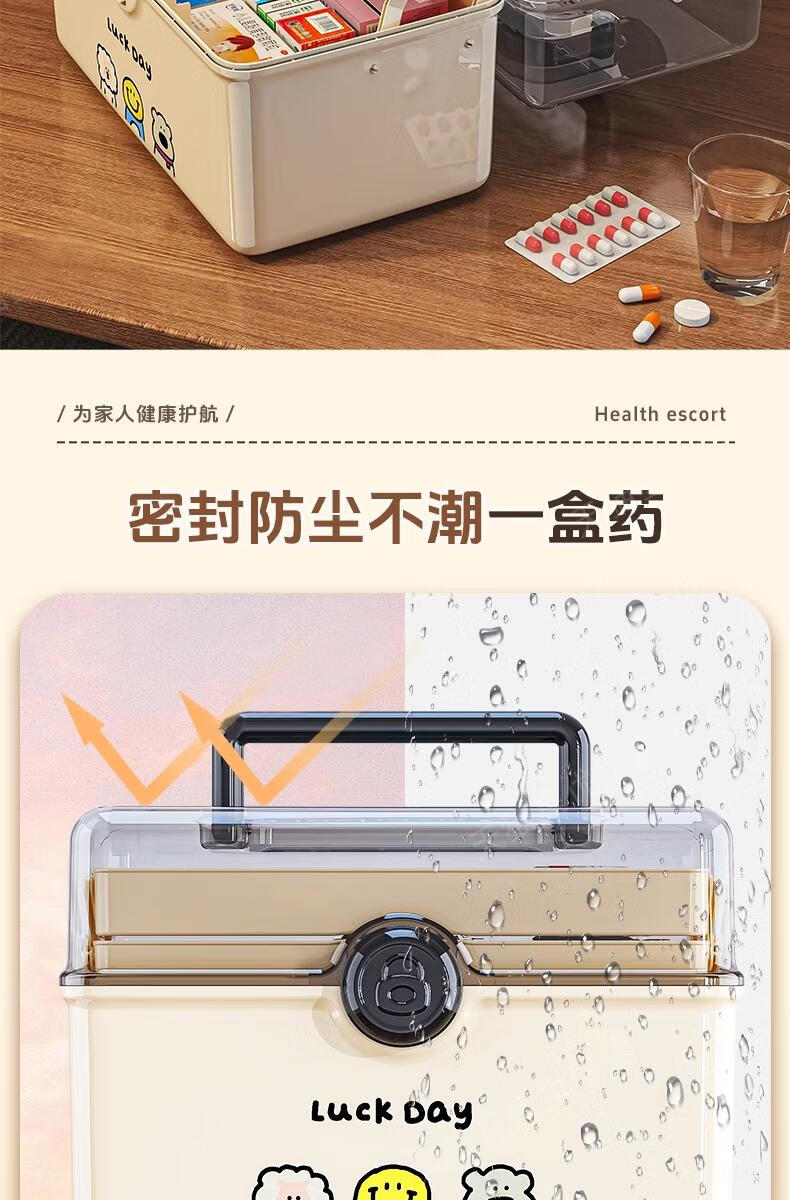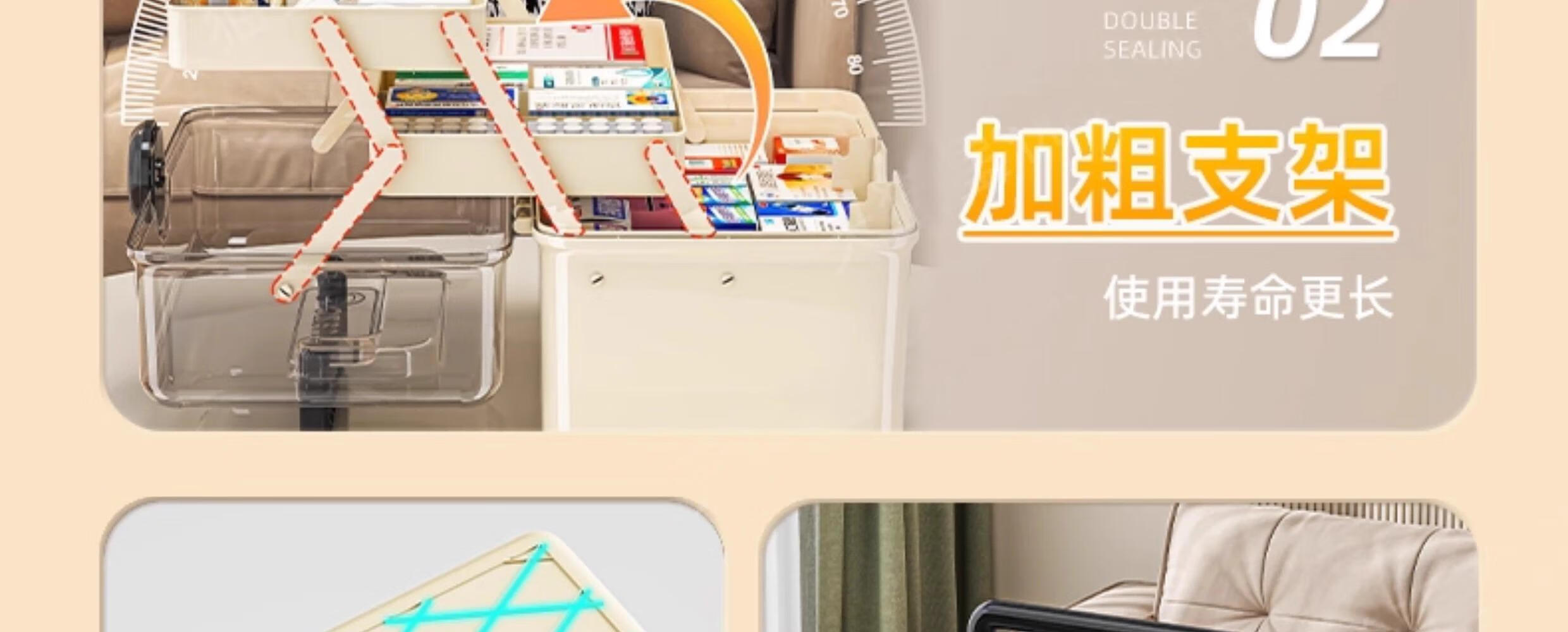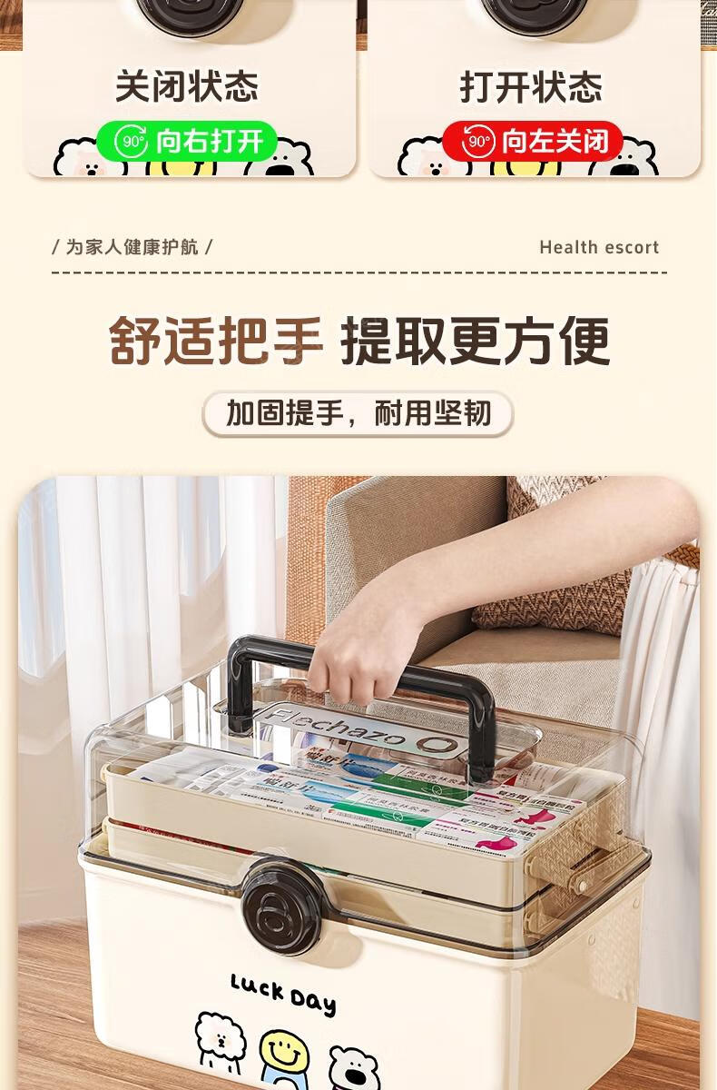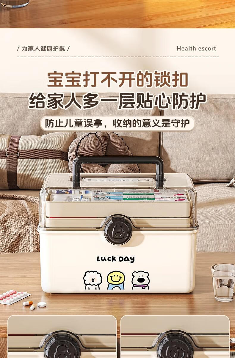 星优药箱家用医药箱家庭装大容量带提手医疗急救箱大号药品药物收纳盒 加高加大款-带隔层