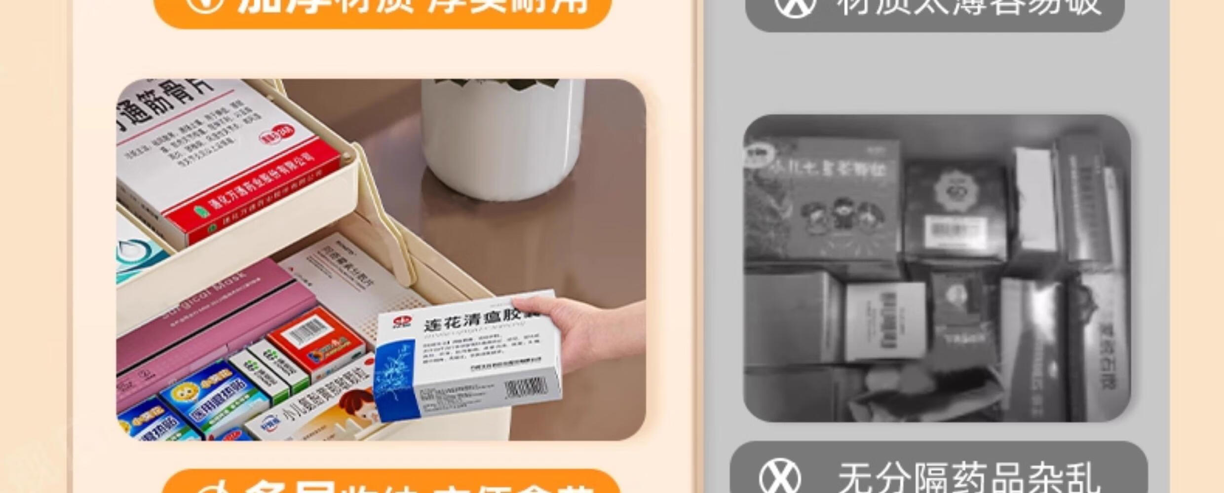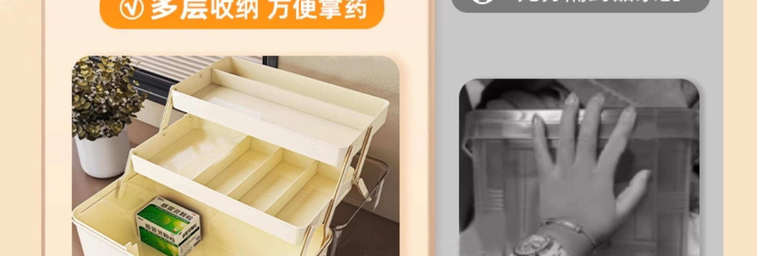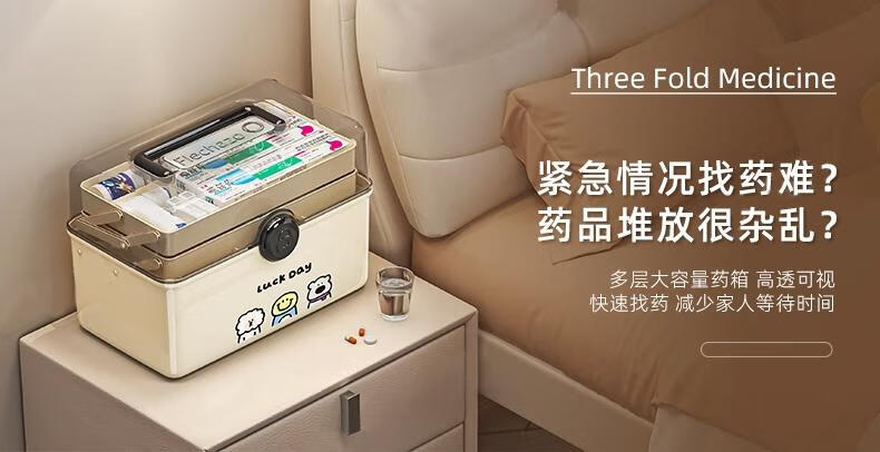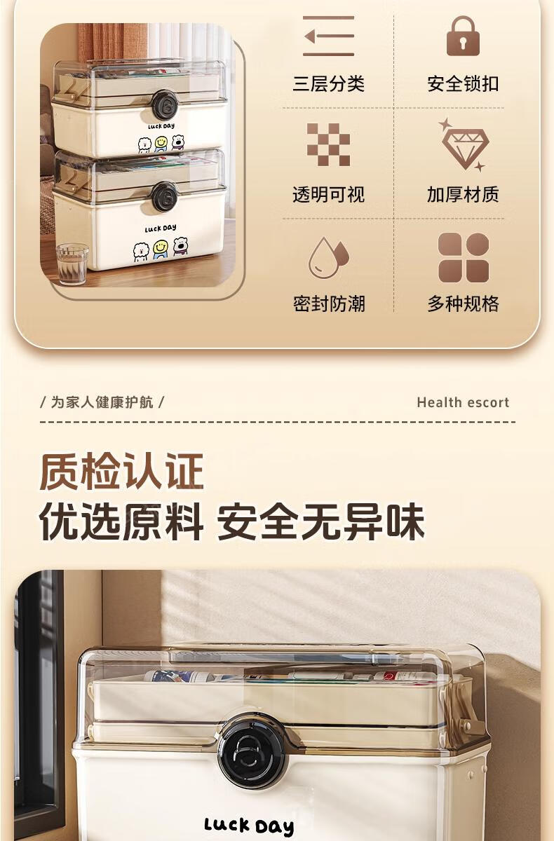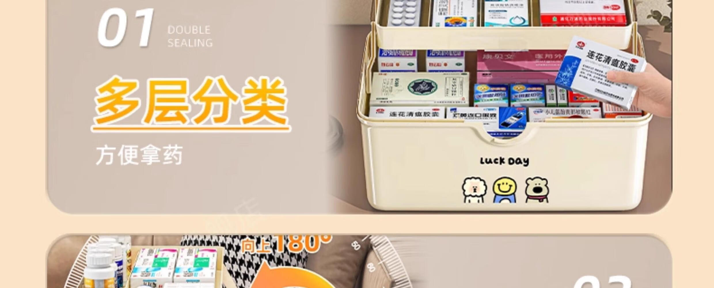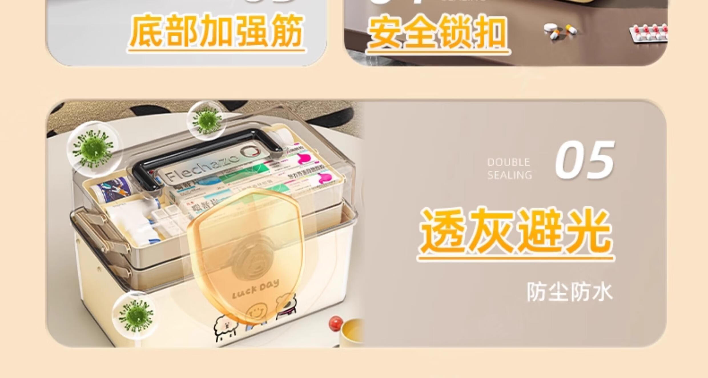 星优药箱家用医药箱家庭装大容量带提手医疗急救箱大号药品药物收纳盒 加高加大款-带隔层