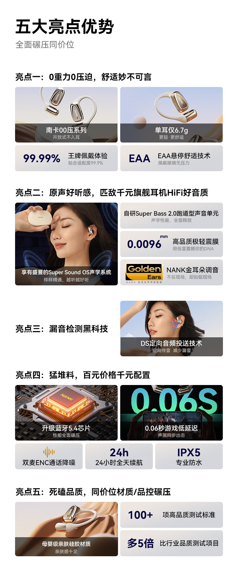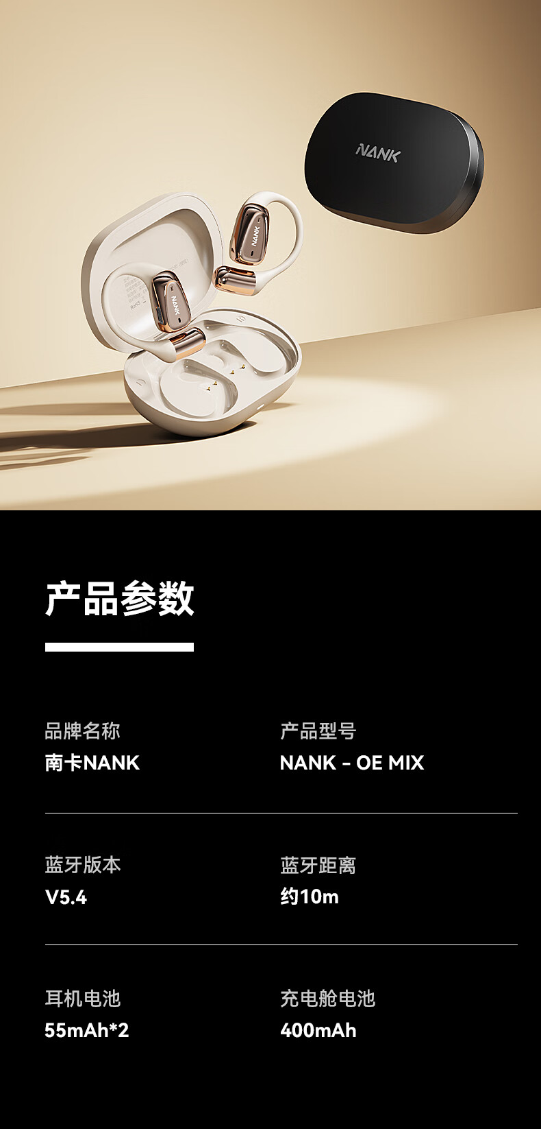 南卡(NANK)蓝牙耳机00压 OE MIX 耳机骨传导概念不入耳挂耳开放式运动跑步骑行长续航通话降噪耳机 【oemix】卡其色