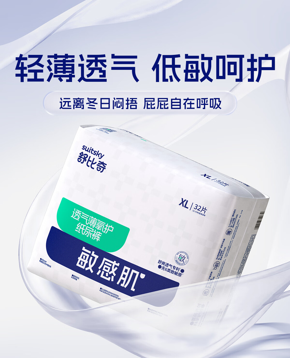 舒比奇透气薄氧护敏感肌纸尿裤XL码32片(12-17kg)尿不湿超薄透气