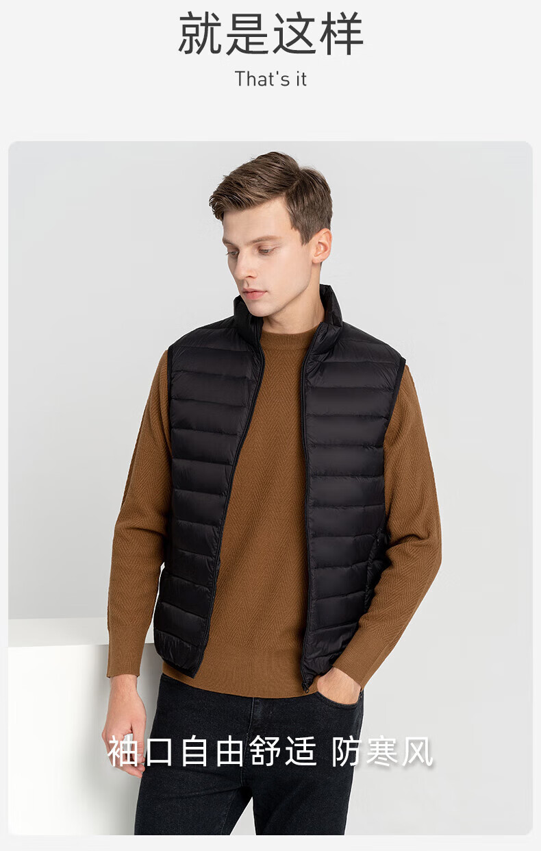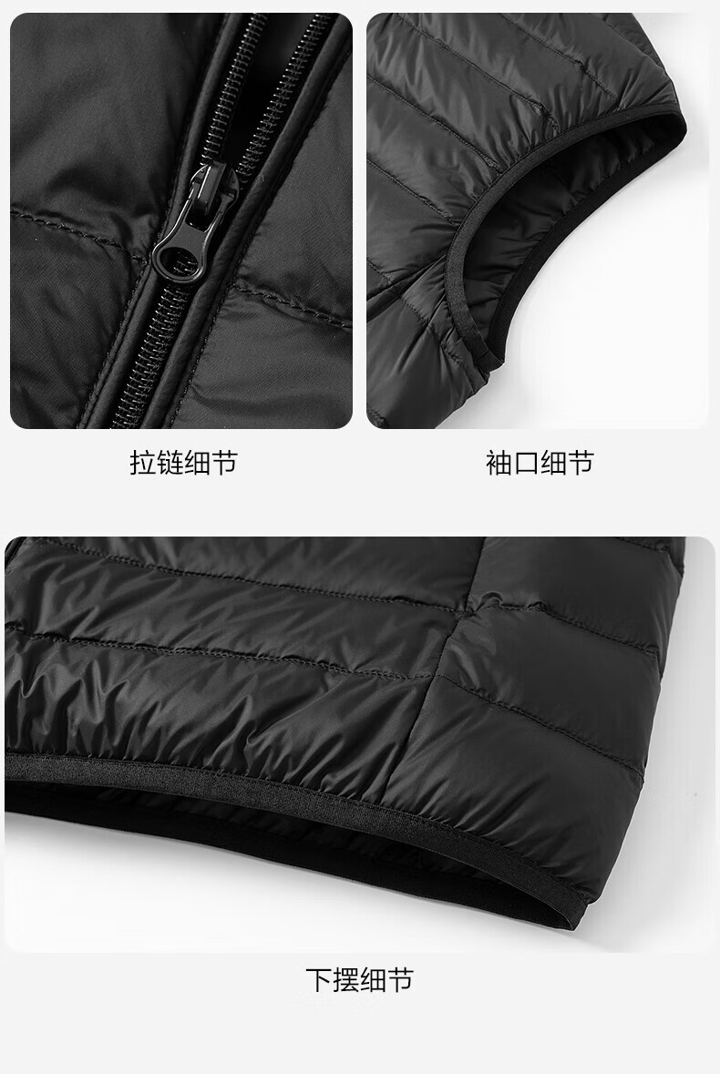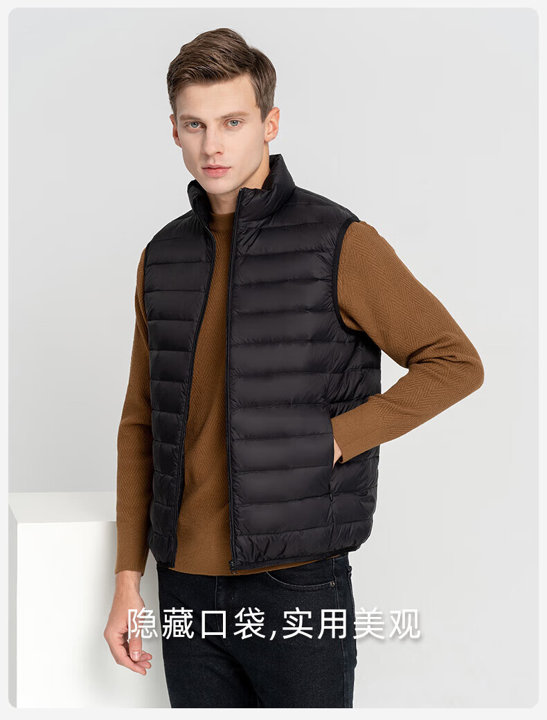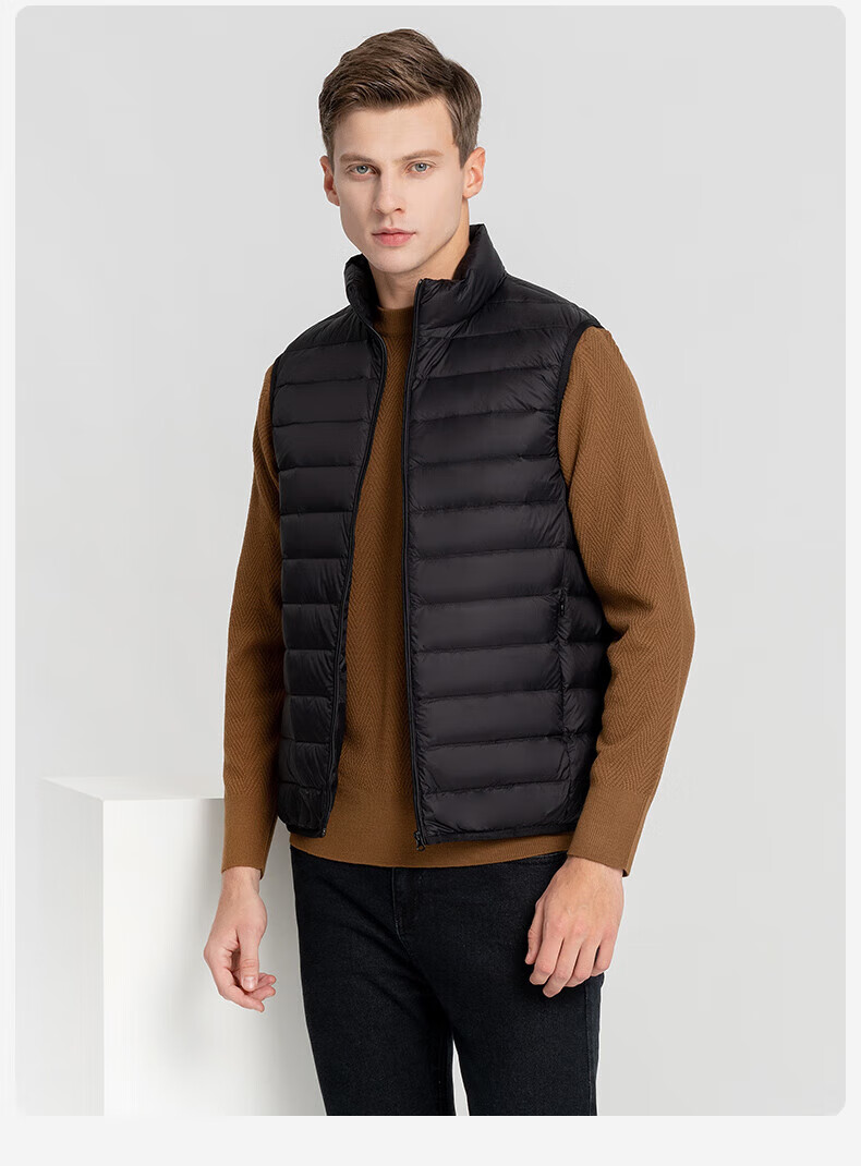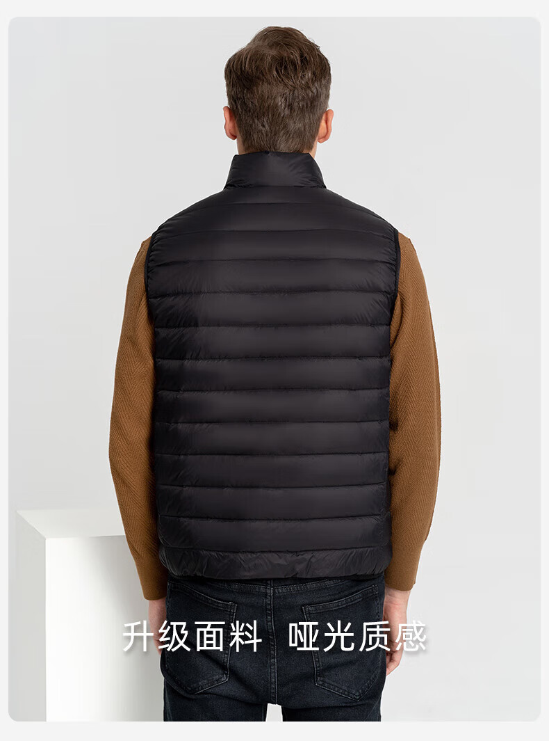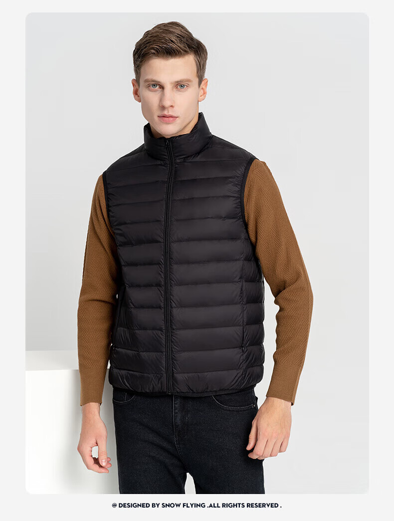 雪中飞秋冬新款男式轻薄羽绒服马甲基础男士短款羽绒秋马甲 宝石黑|8086 L /175/96A