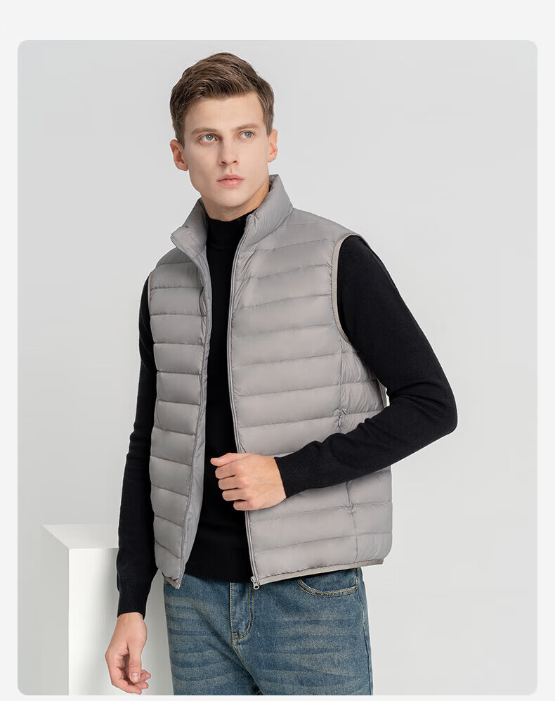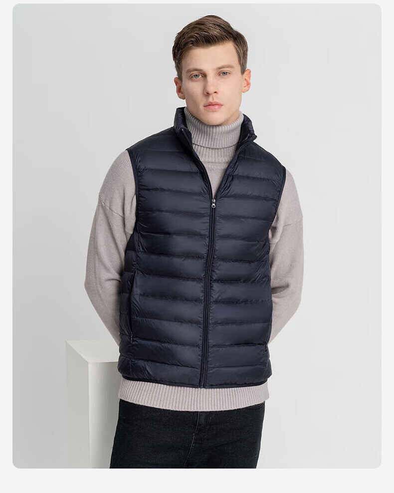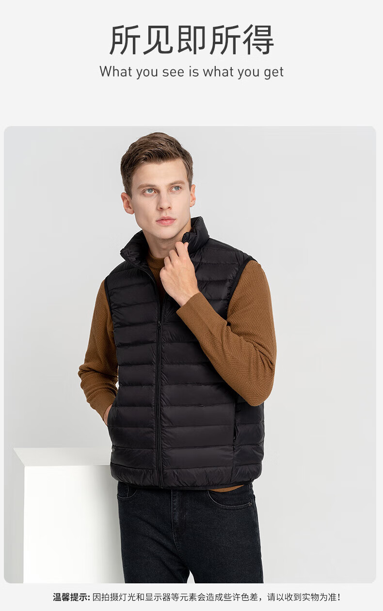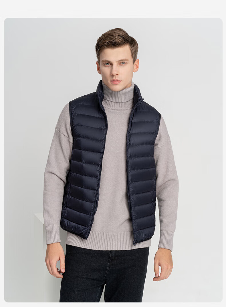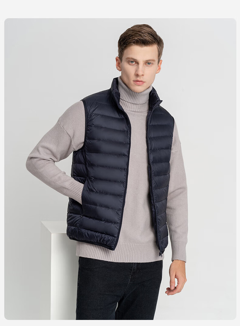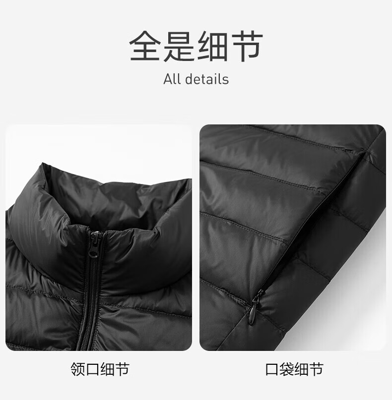 雪中飞秋冬新款男式轻薄羽绒服马甲基础男士短款羽绒秋马甲 宝石黑|8086 L /175/96A
