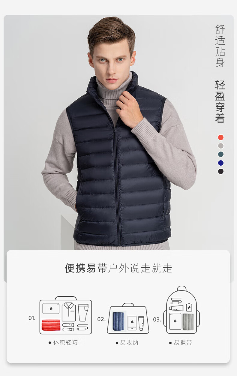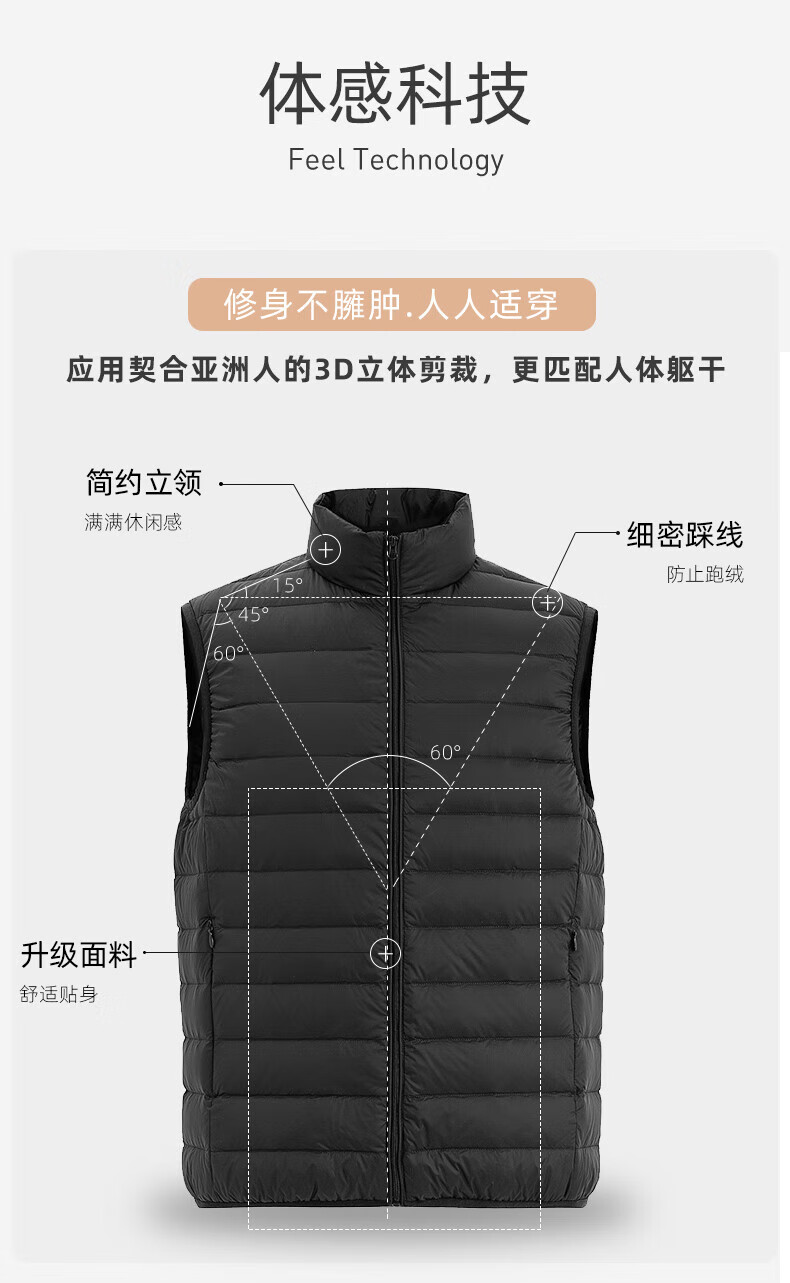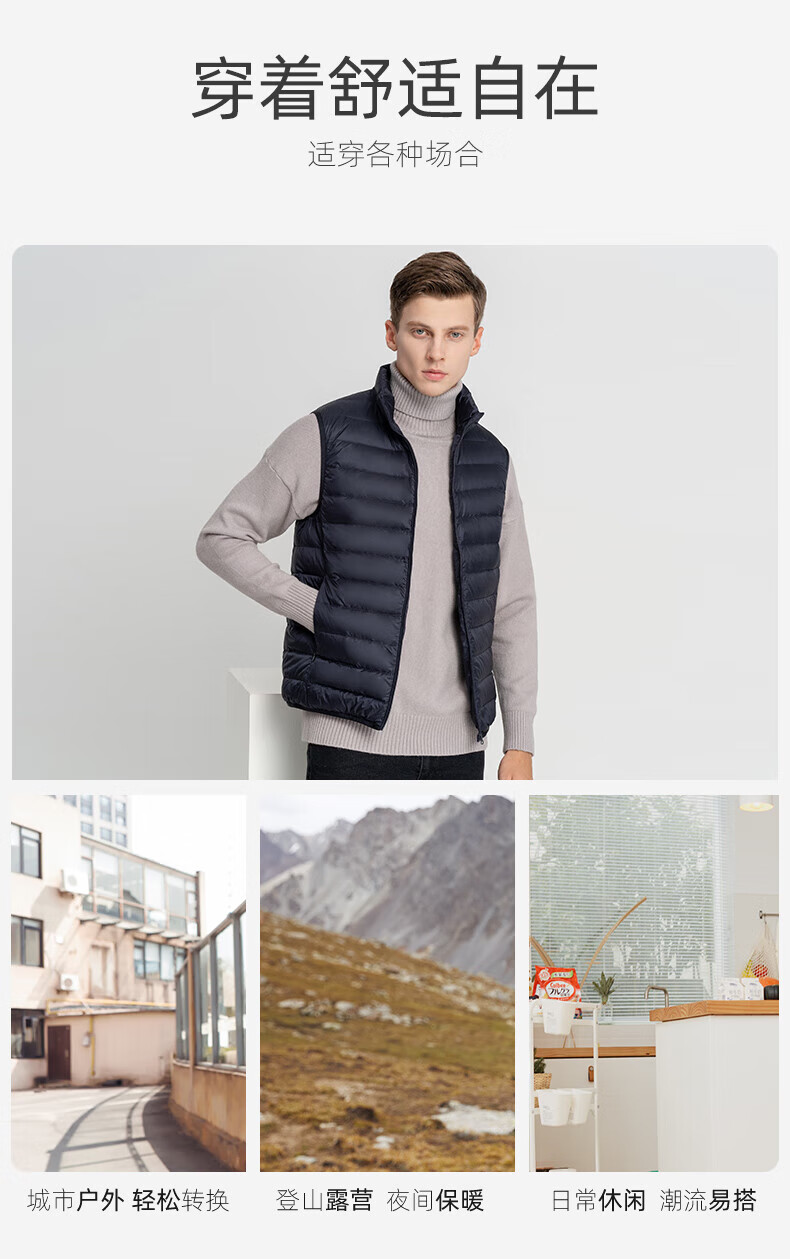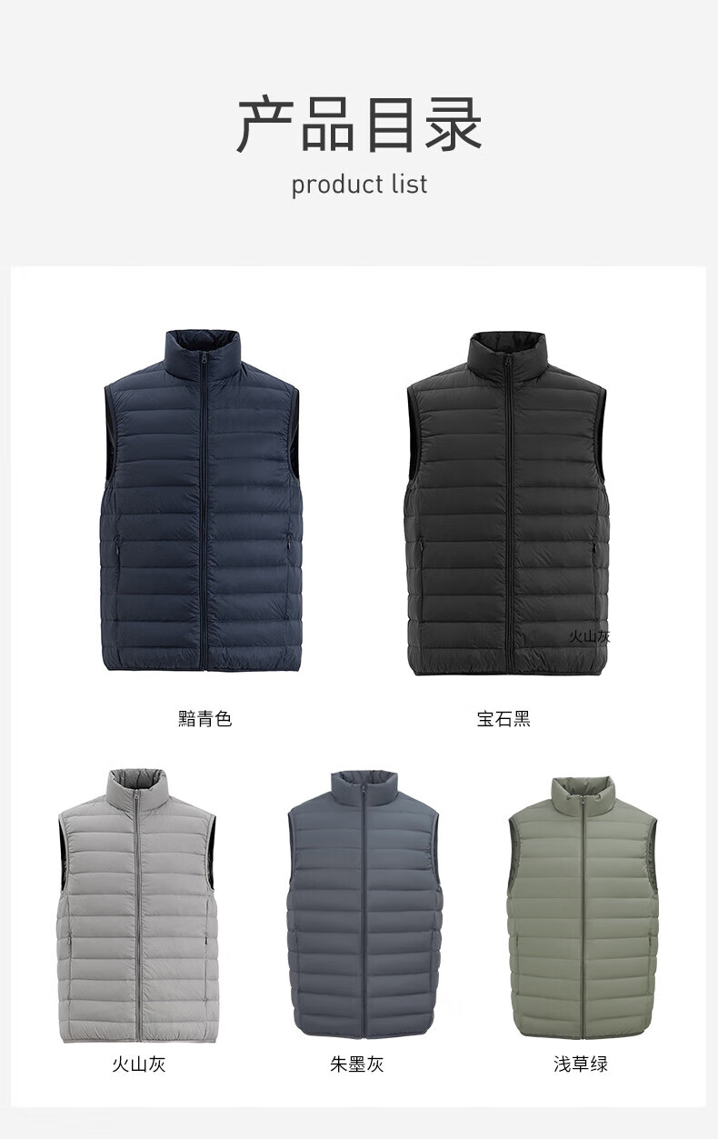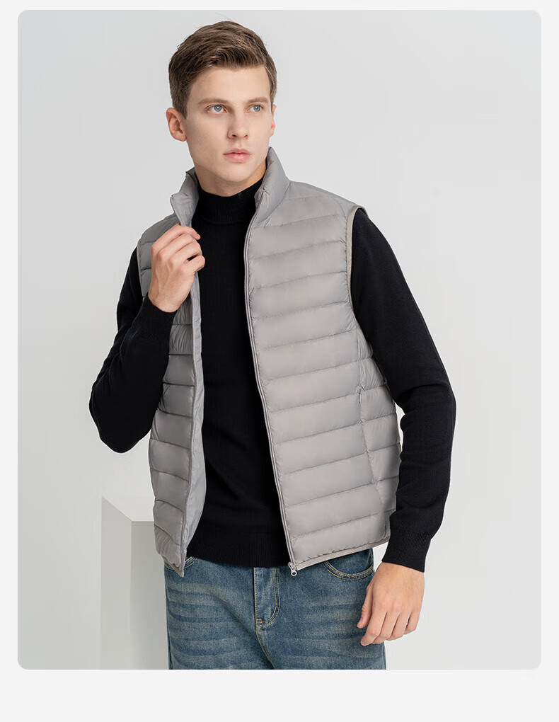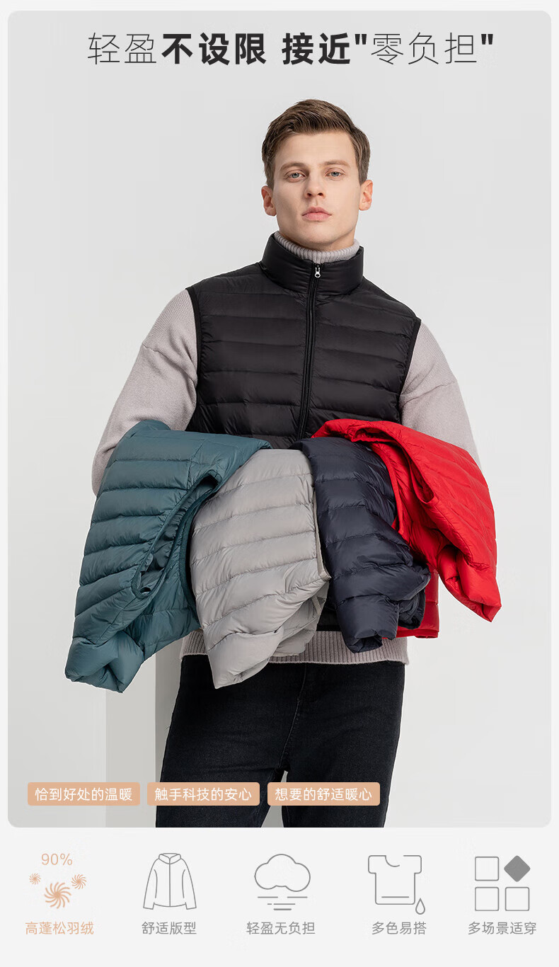 雪中飞秋冬新款男式轻薄羽绒服马甲基础男士短款羽绒秋马甲 宝石黑|8086 L /175/96A