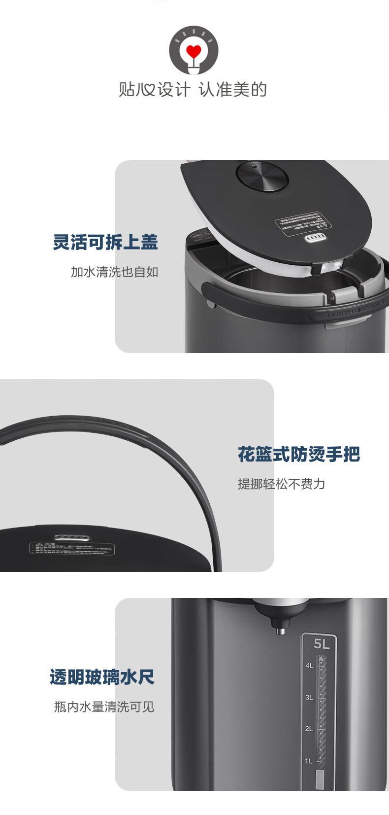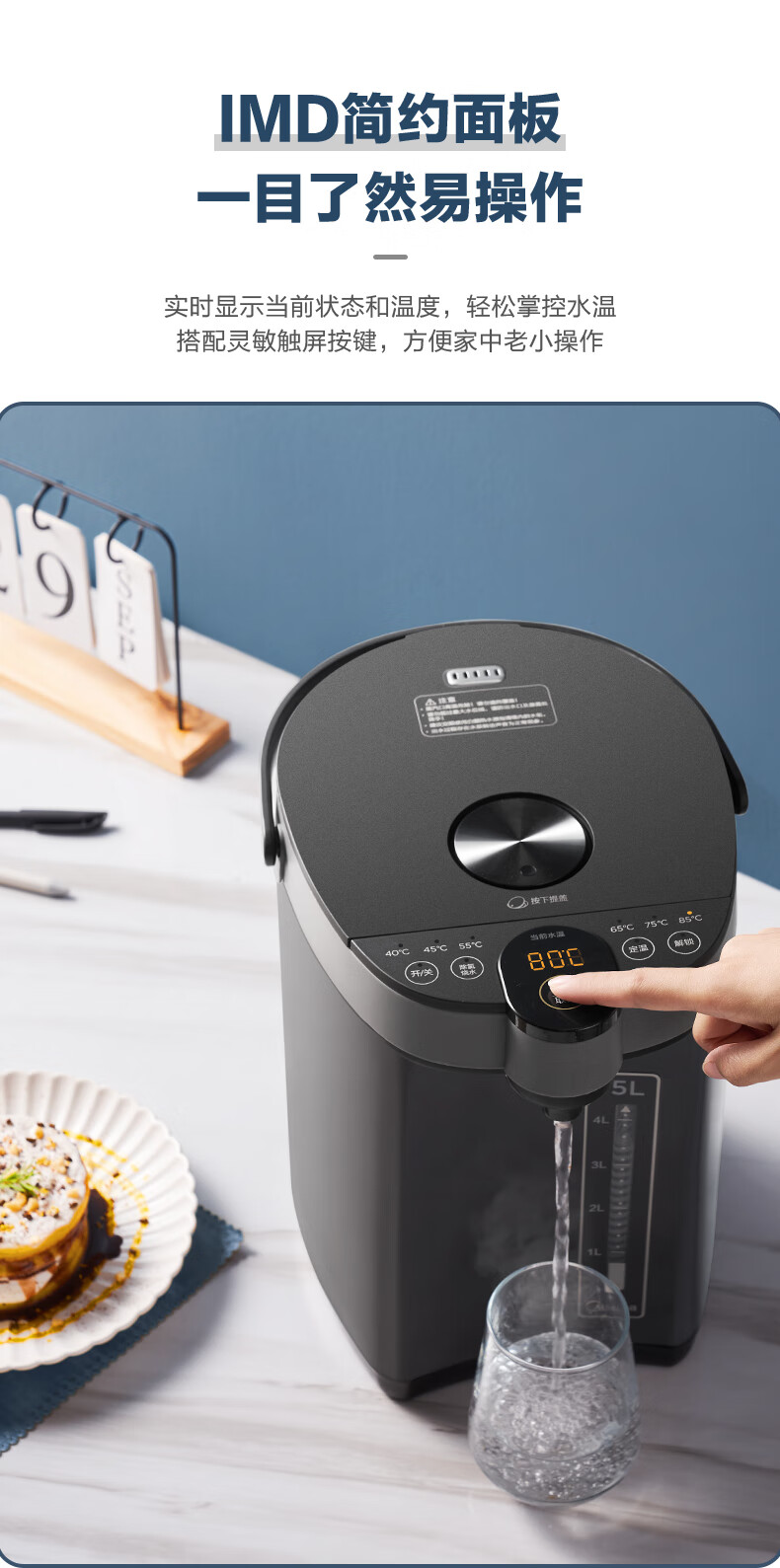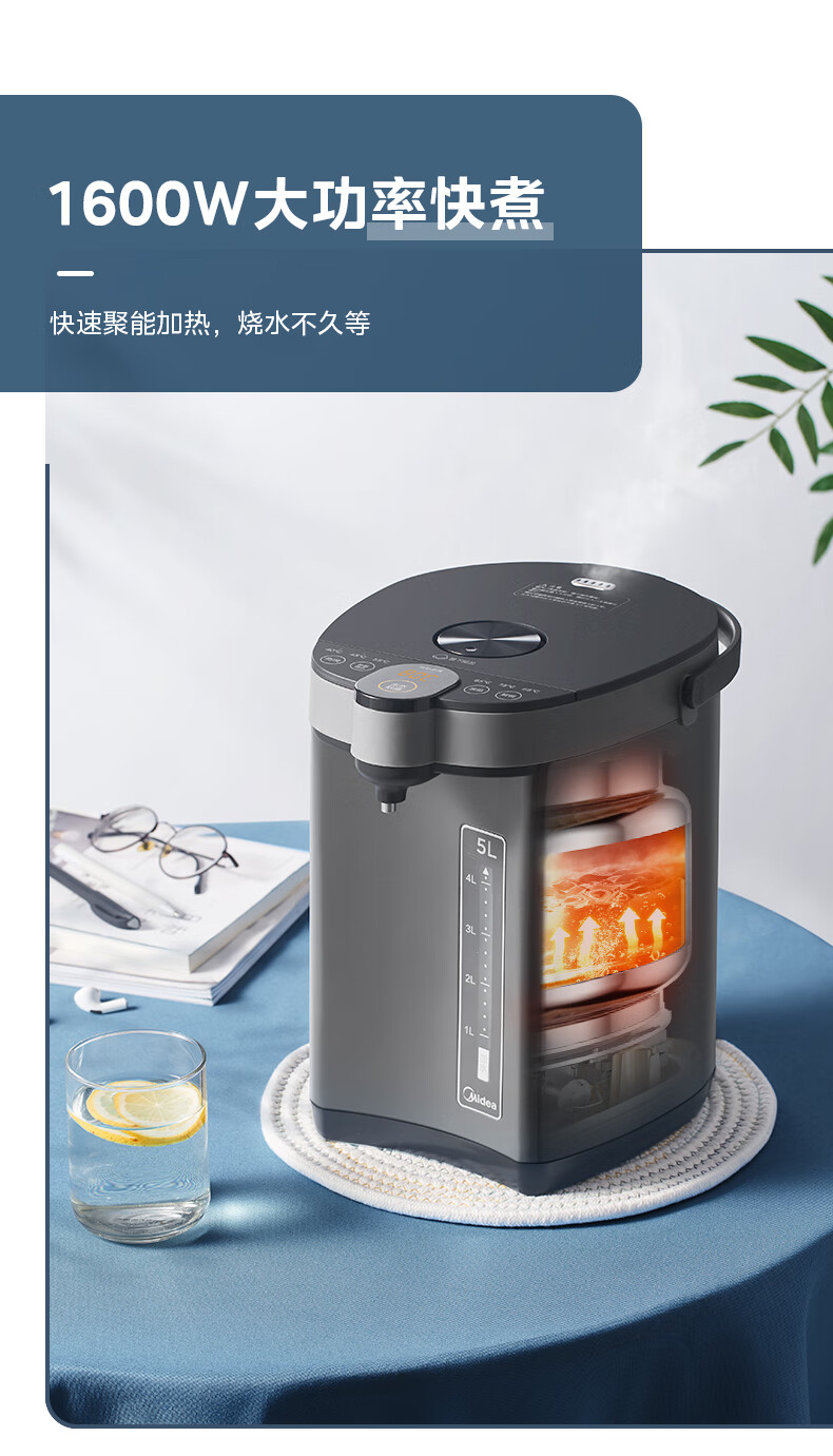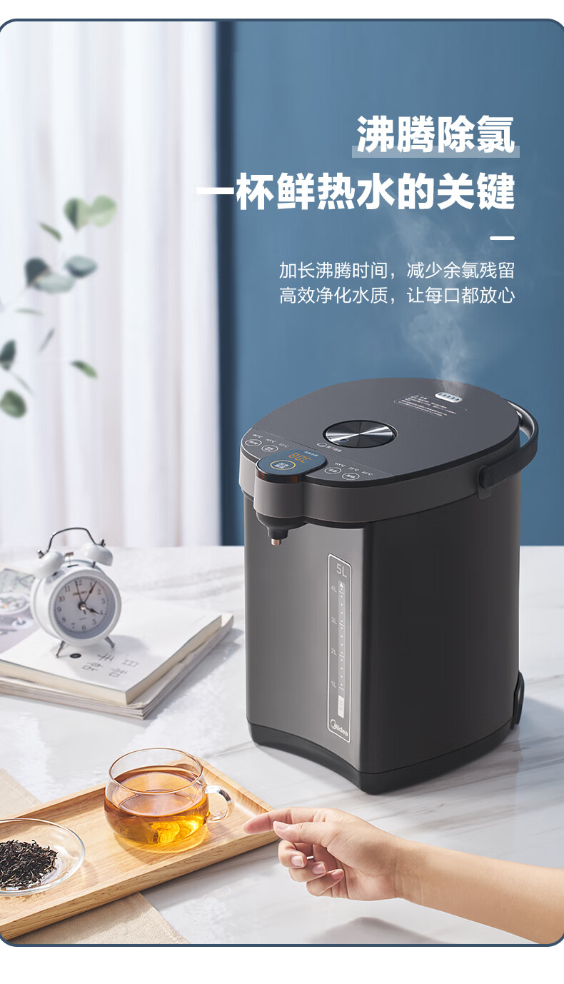 美的(Midea) 电热水瓶 5L升大容量保温除氯电水瓶 家用烧水壶保温一体全自动恒温电热水壶 开水壶 5L 【304食品级材质内胆】