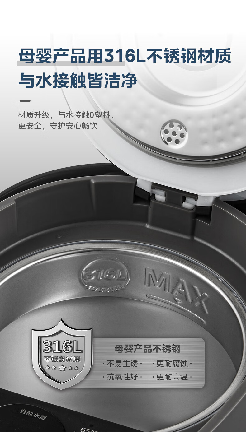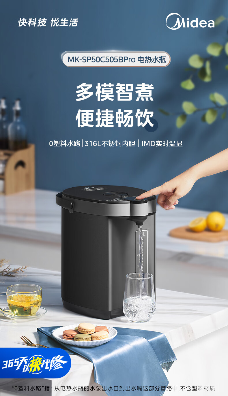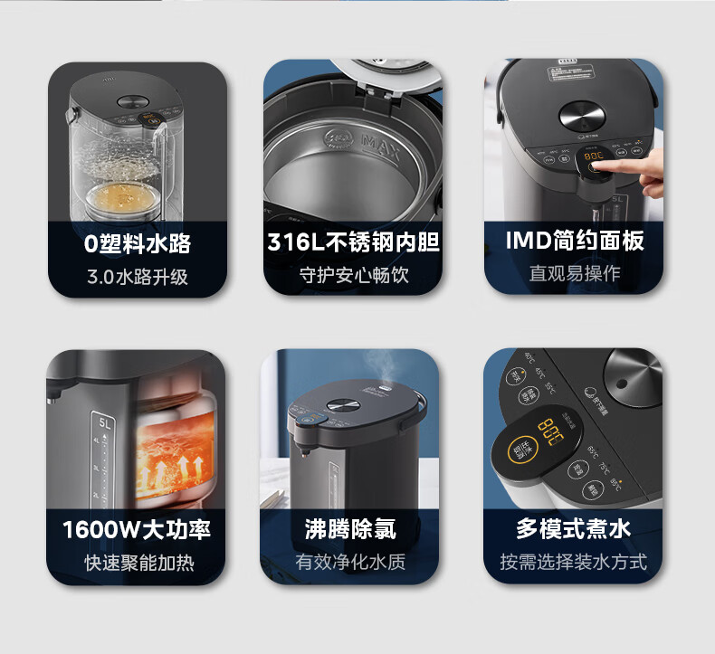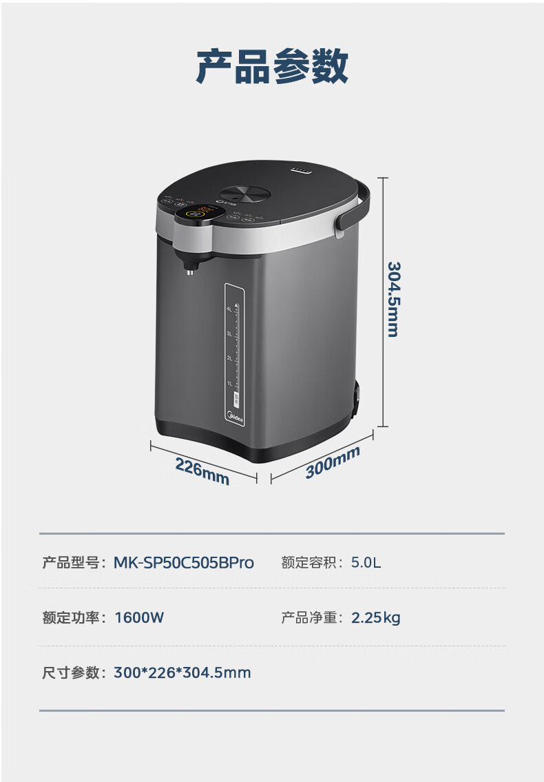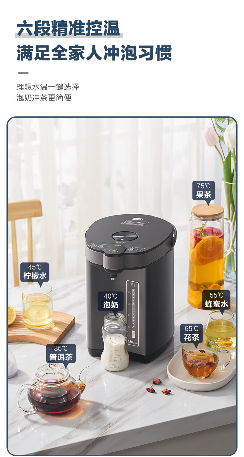 美的(Midea) 电热水瓶 5L升大容量保温除氯电水瓶 家用烧水壶保温一体全自动恒温电热水壶 开水壶 5L 【304食品级材质内胆】