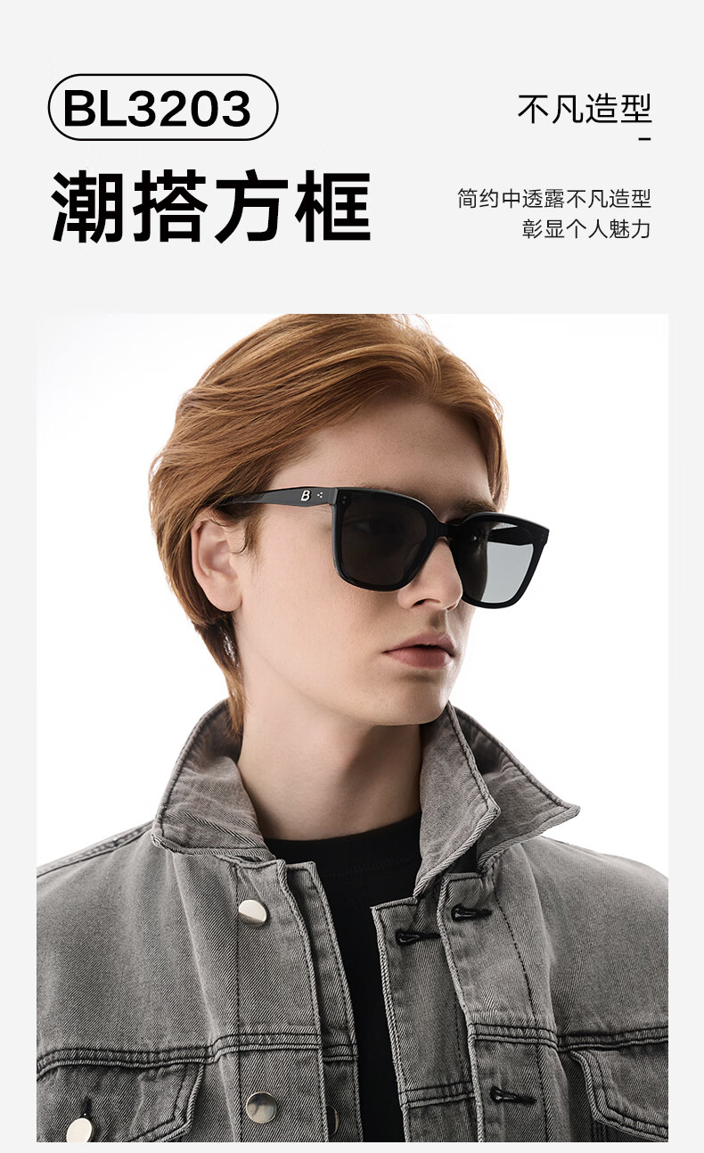 暴龙(BOLON)太阳镜 林一明星同款潮流墨镜通勤潮搭遮阳镜 暴龙眼镜 BL3203 C10-框亮黑色/片深灰-偏光款