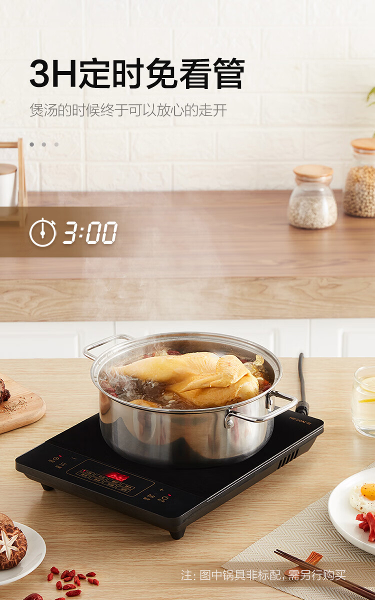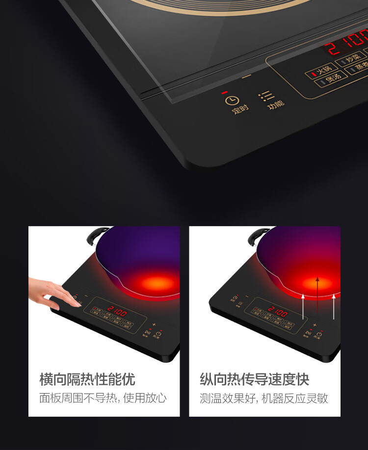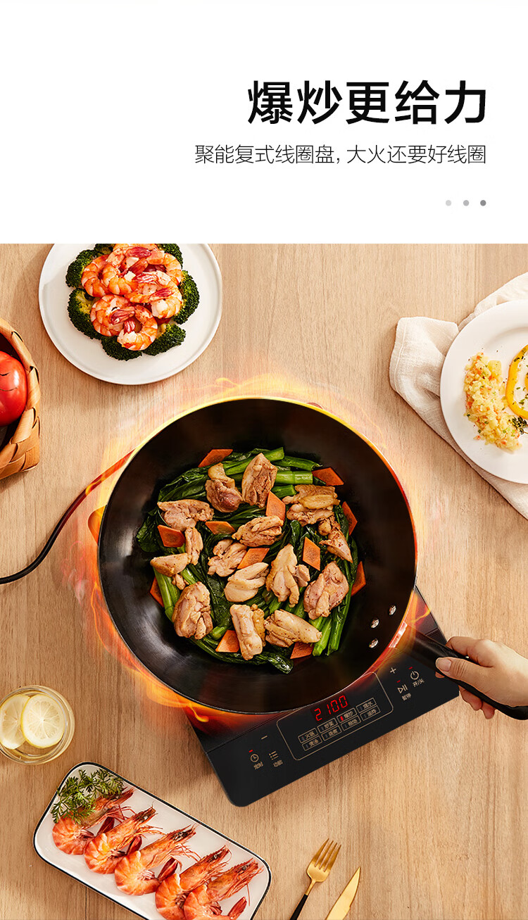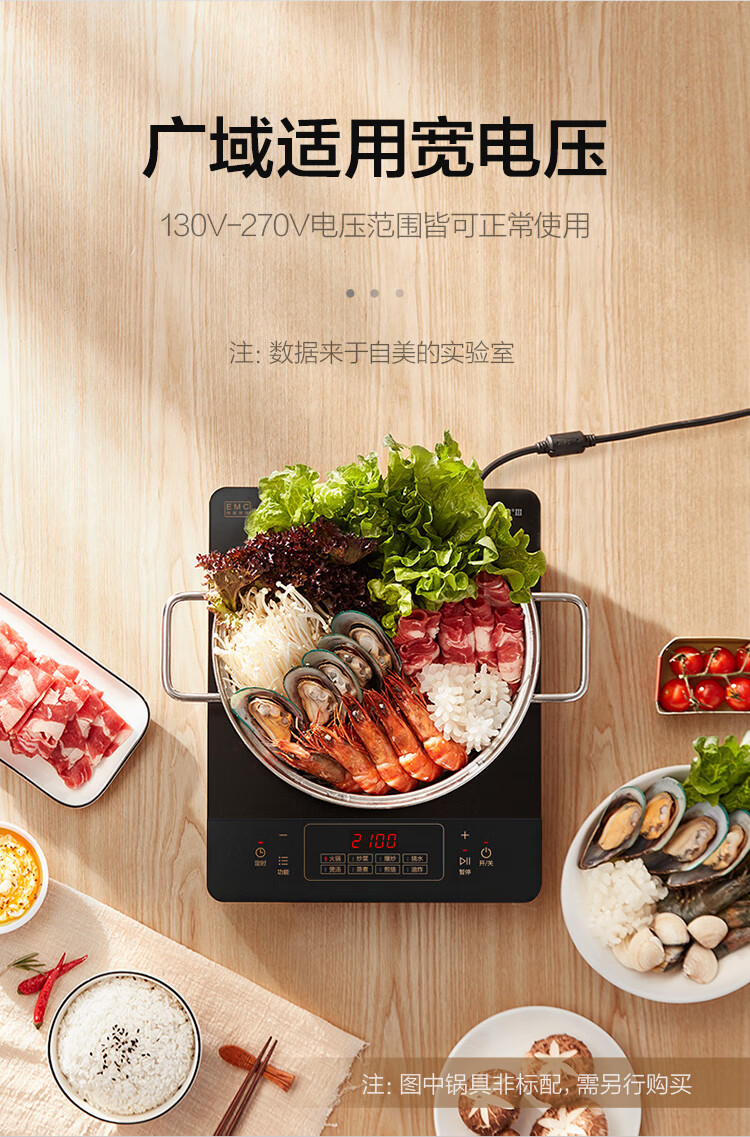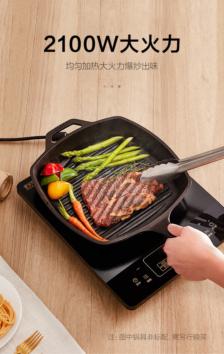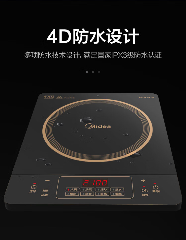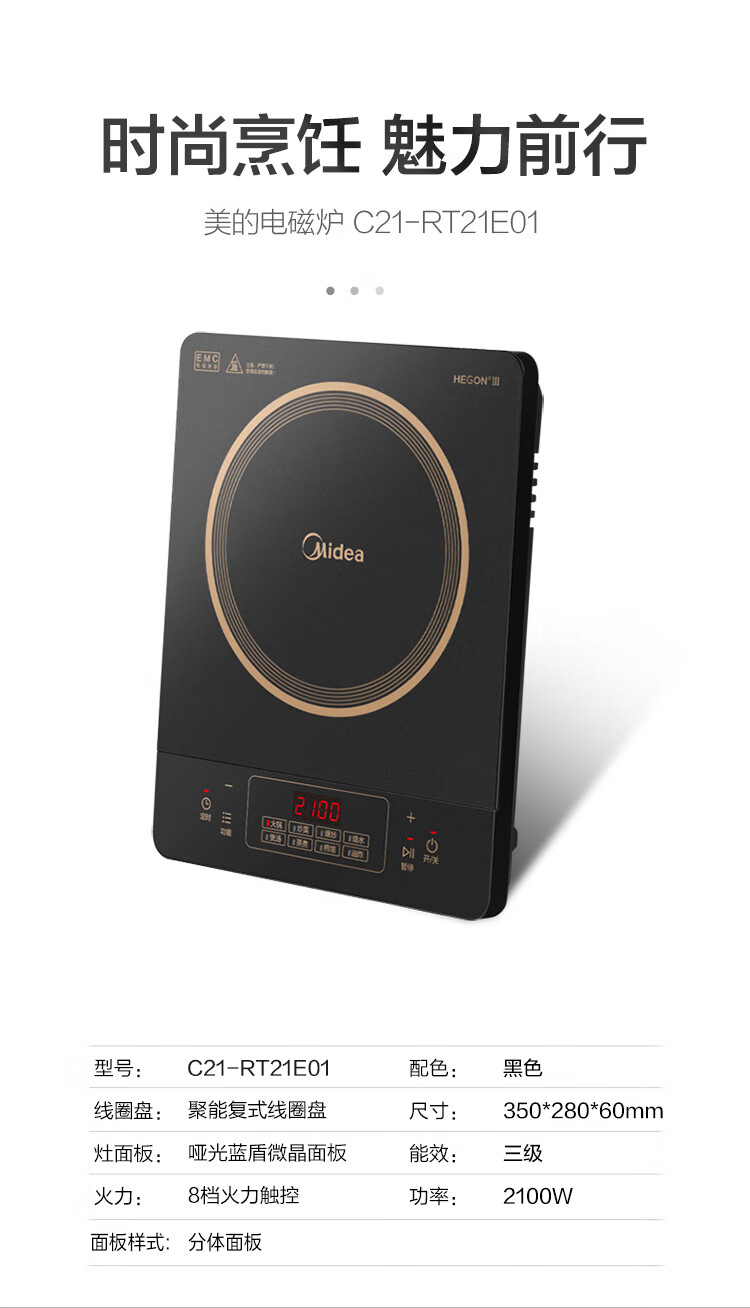 美的(Midea)电磁炉家用电陶炉 大功率家用电磁灶猛火爆炒耐用防水面板 八档火力纤薄电池炉 行业爆款【升级大面板】RT21E0105