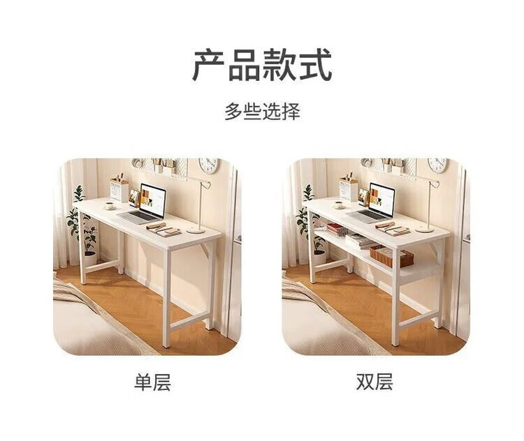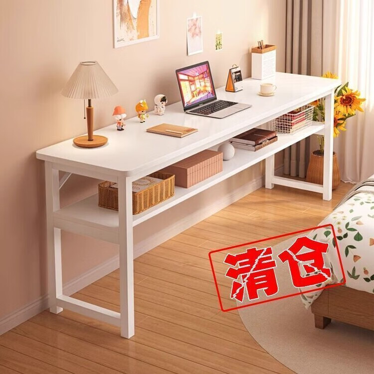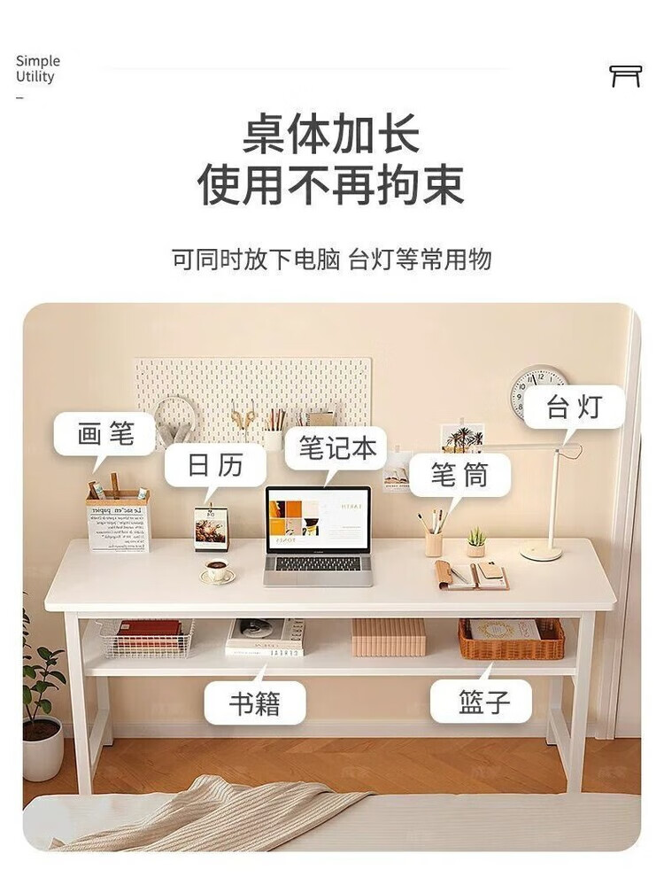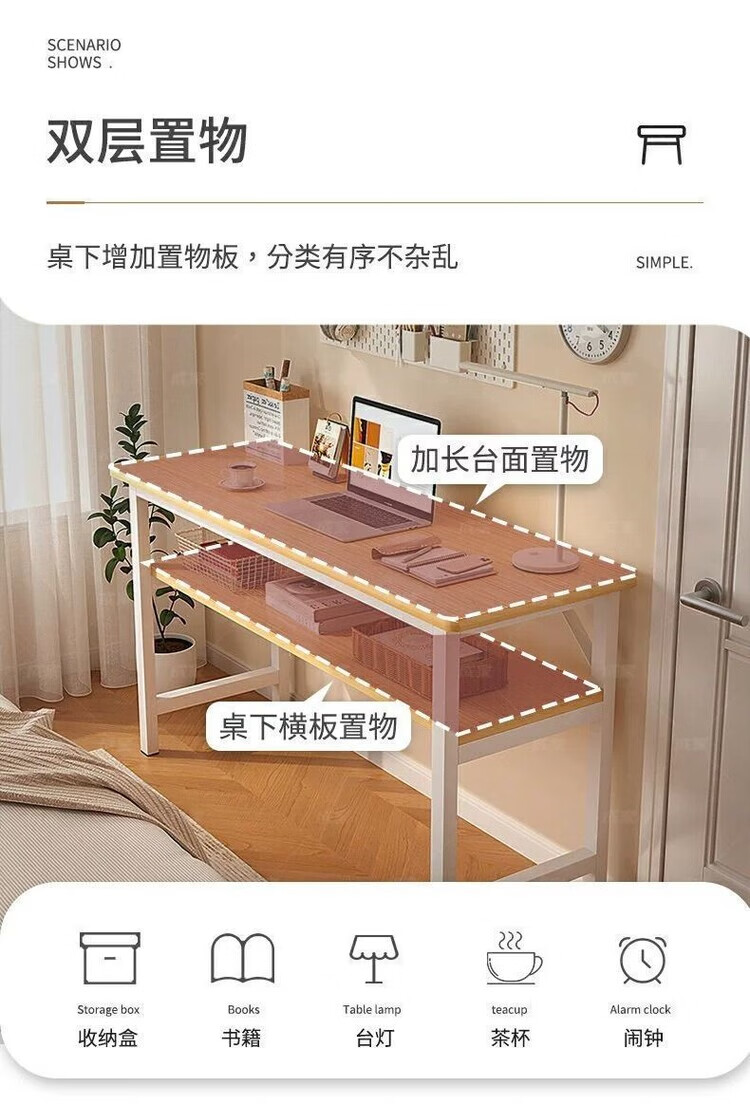 欣慕雅书桌台式长条桌家用电脑桌学习桌学生写字桌办公简约长方形工作台 80cm暖白色双层 【加粗桌腿】