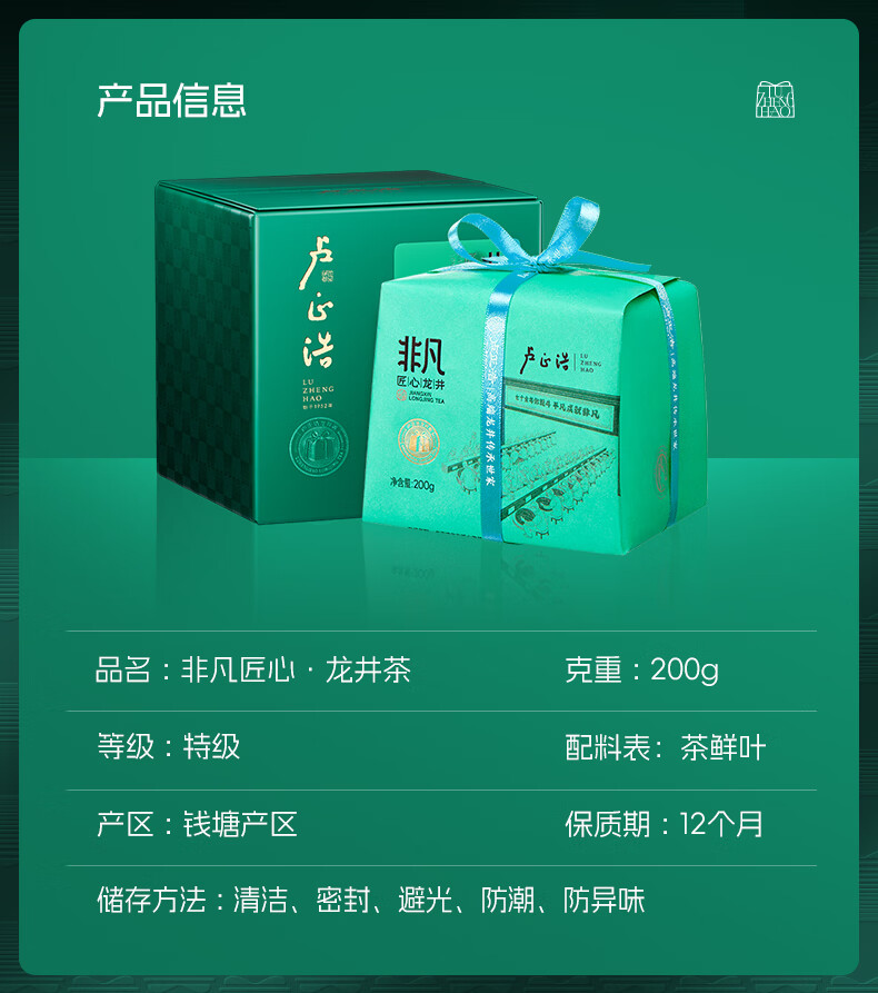 卢正浩绿茶钱塘龙井茶叶特级250g2026新茶上市明前春茶纸包群体种老茶树