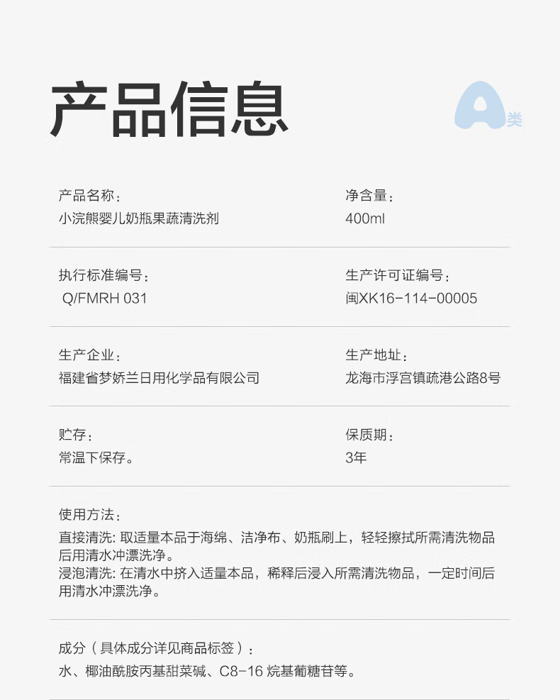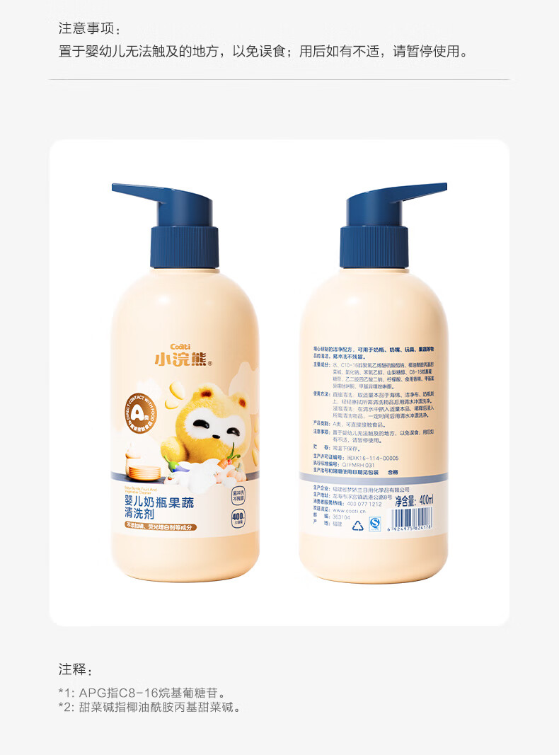 小浣熊婴儿奶瓶果蔬清洗剂果蔬餐具清洗液奶瓶奶嘴清洗液 婴儿奶瓶果蔬清洗剂400ml