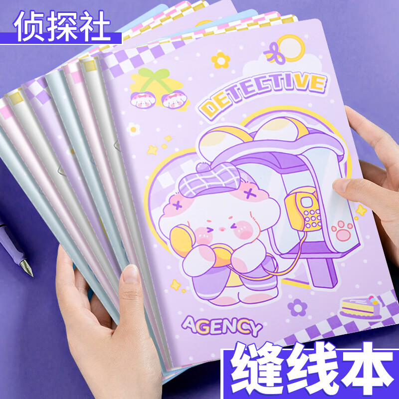 笔记本本子软面抄写本 车线缝线本记事本小清新简约大号考研学生用日记本文具日志本 【1本装】A5-侦探社(封面随机)