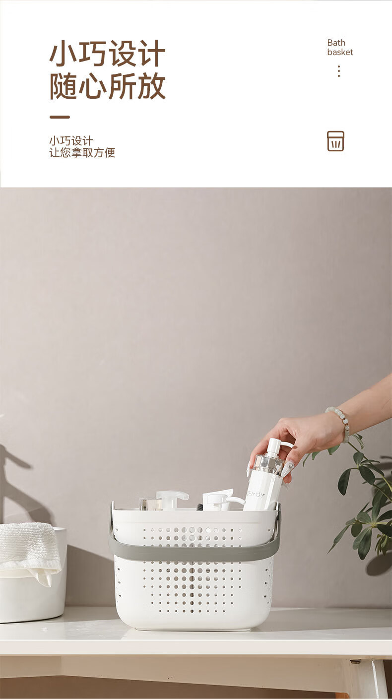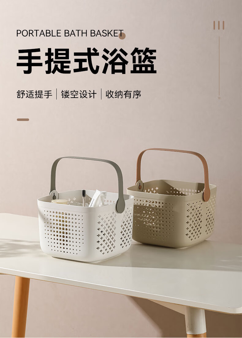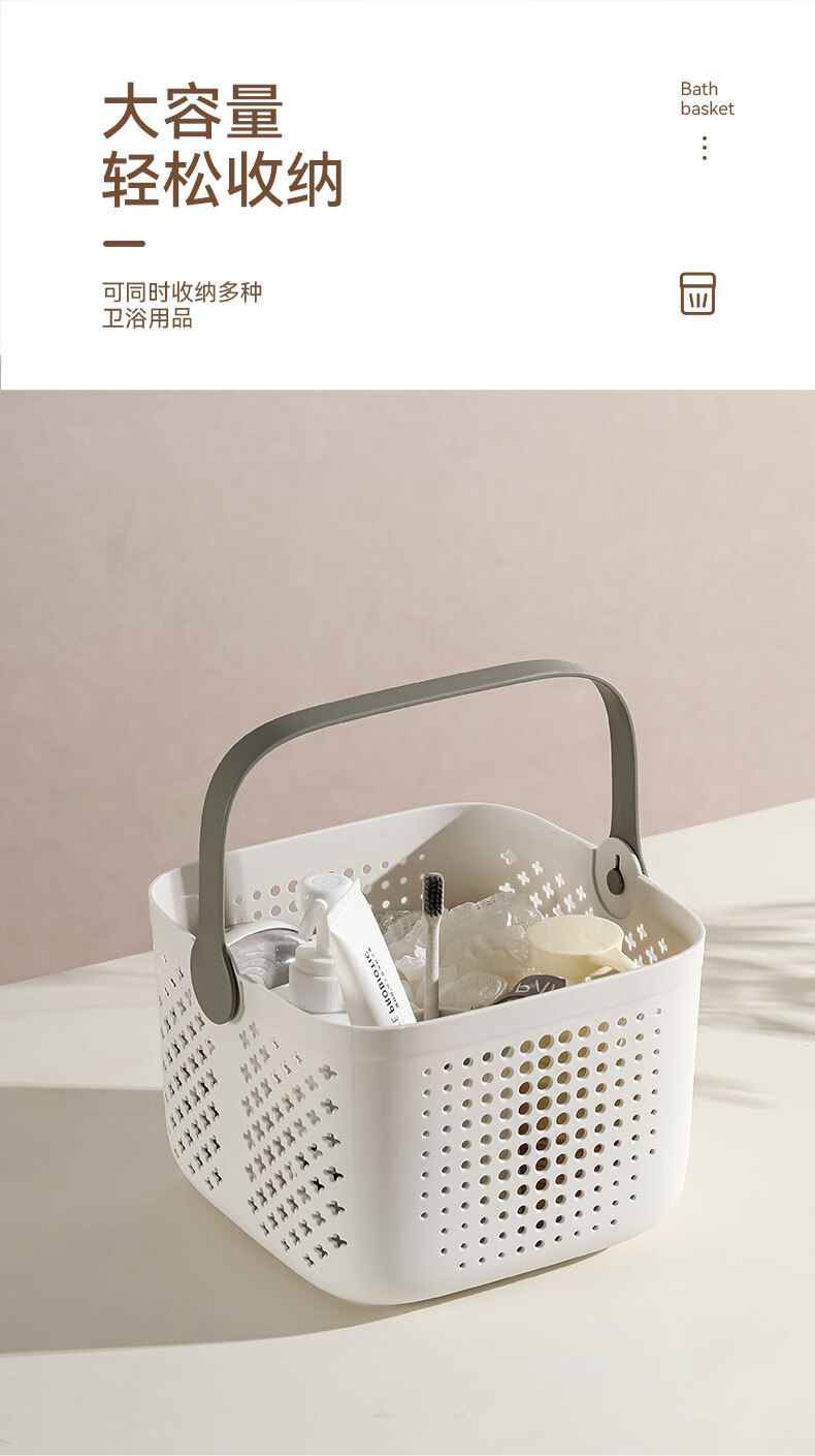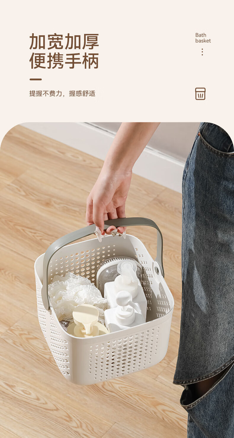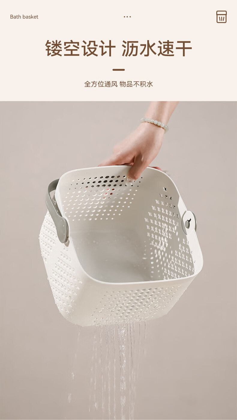 京东物流 手提洗澡篮浴室洗刷用品置物篮学生专用轻奢洗澡筐 奶油色 22.5*21*16.5cm