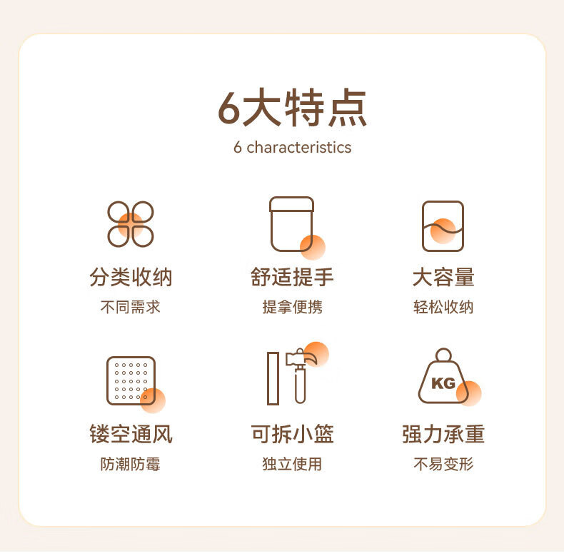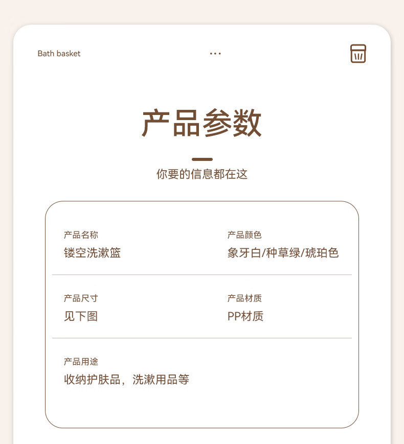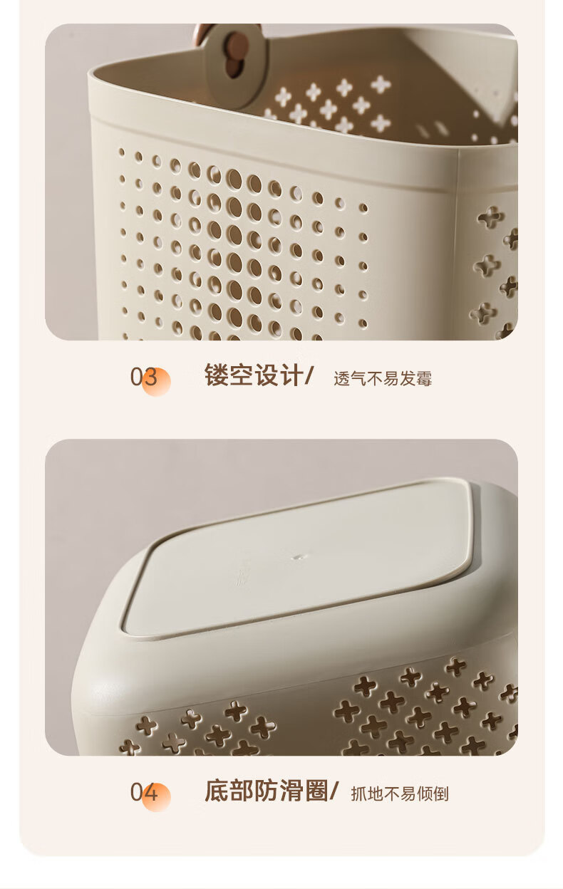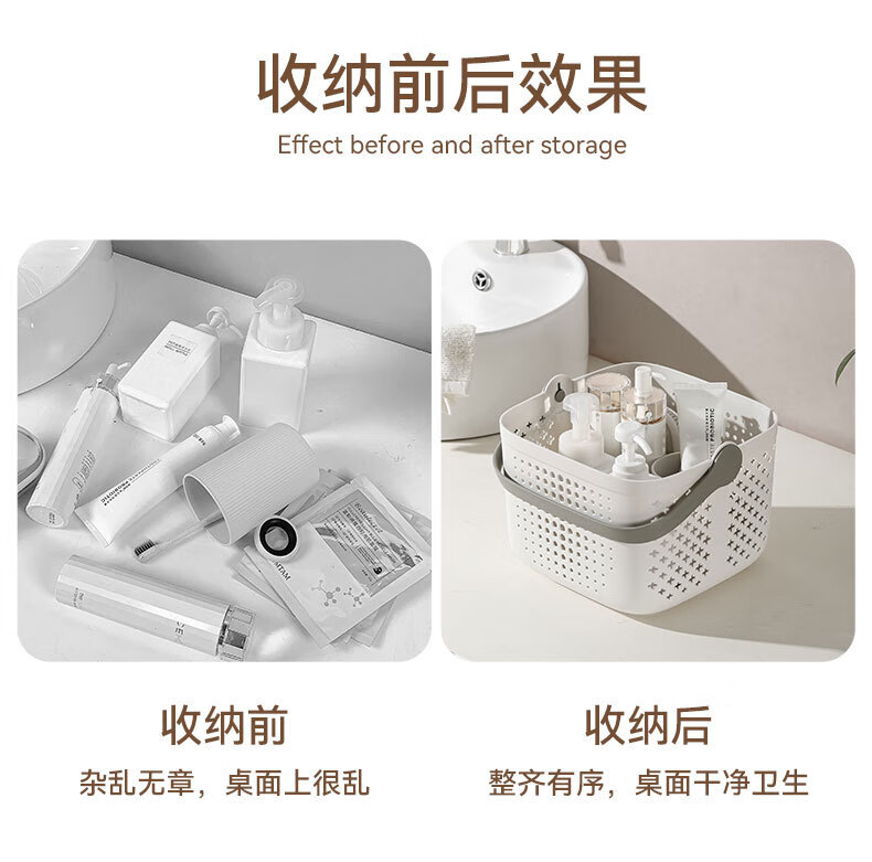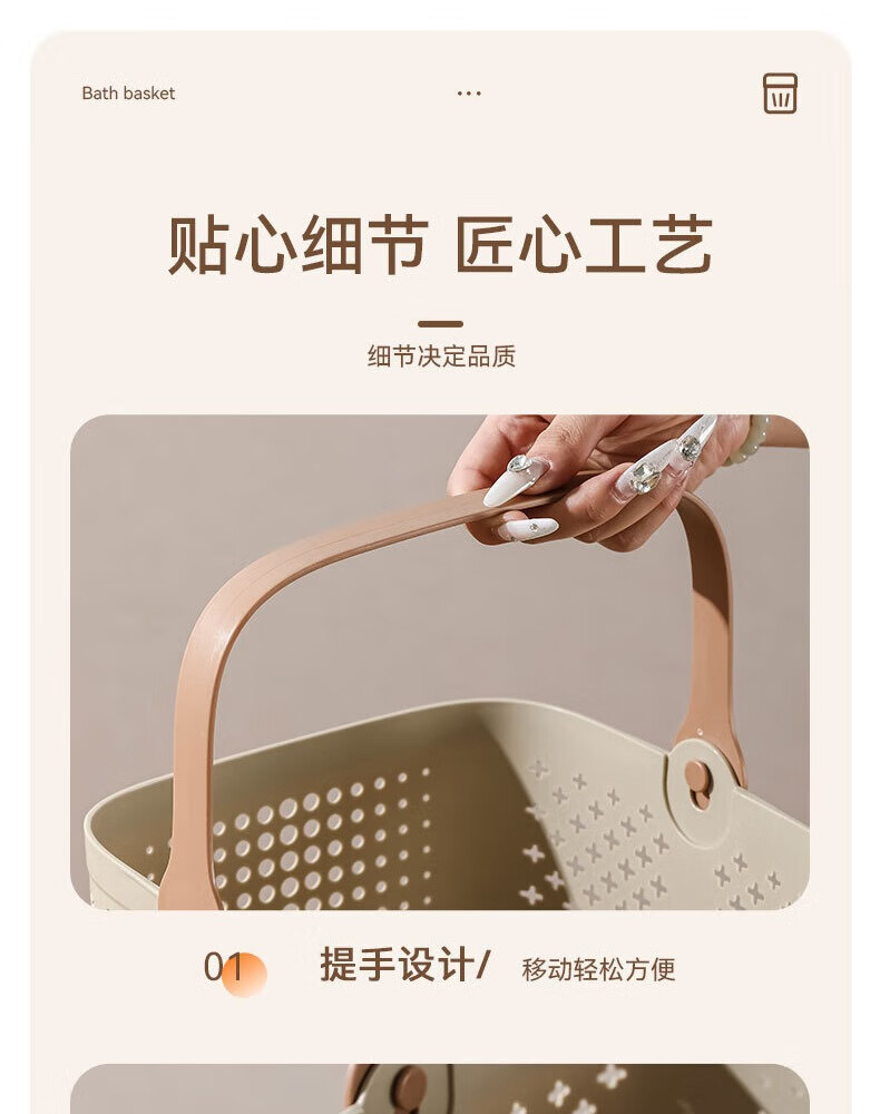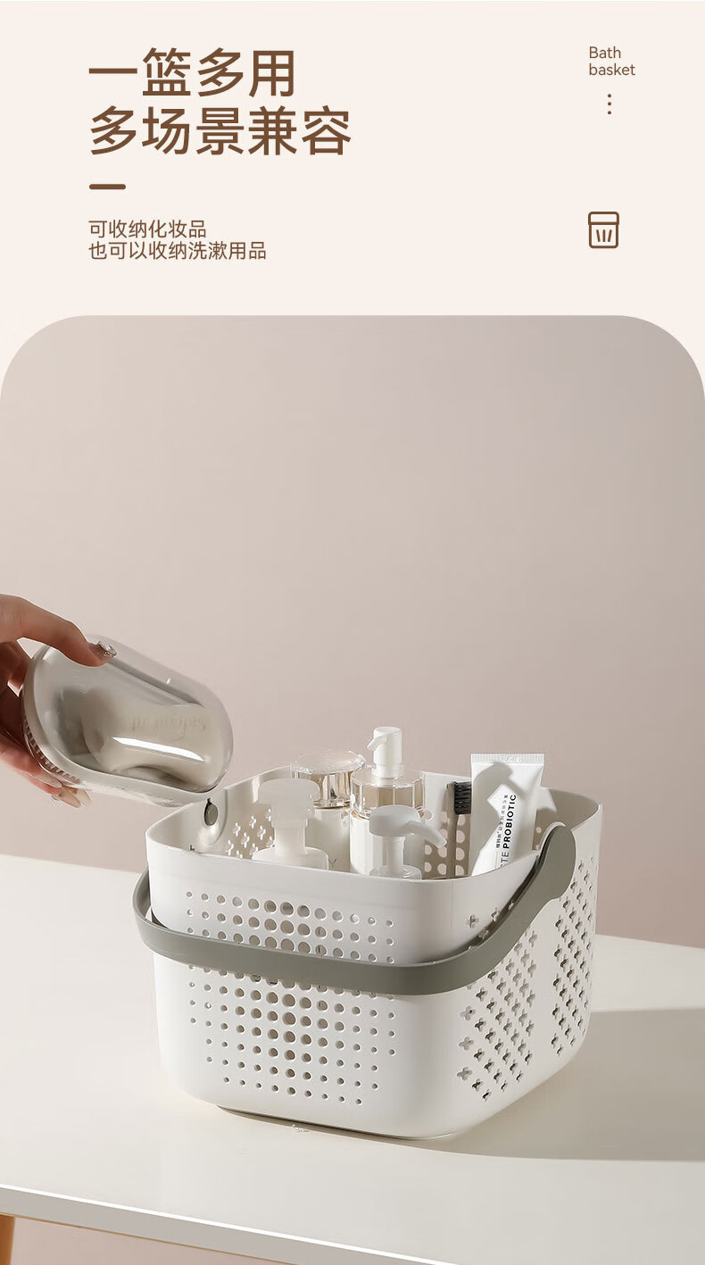 京东物流 手提洗澡篮浴室洗刷用品置物篮学生专用轻奢洗澡筐 奶油色 22.5*21*16.5cm