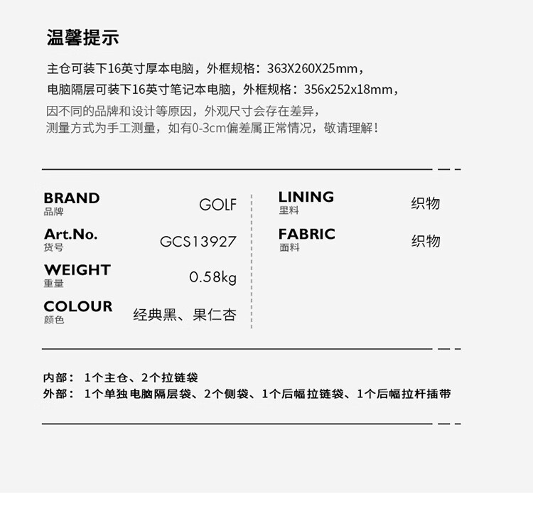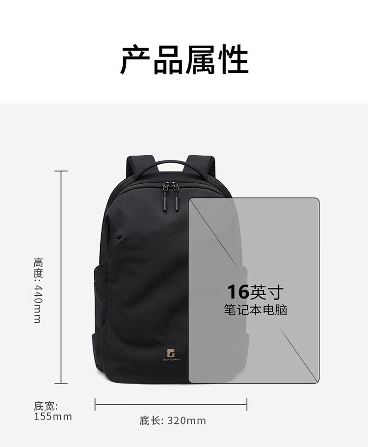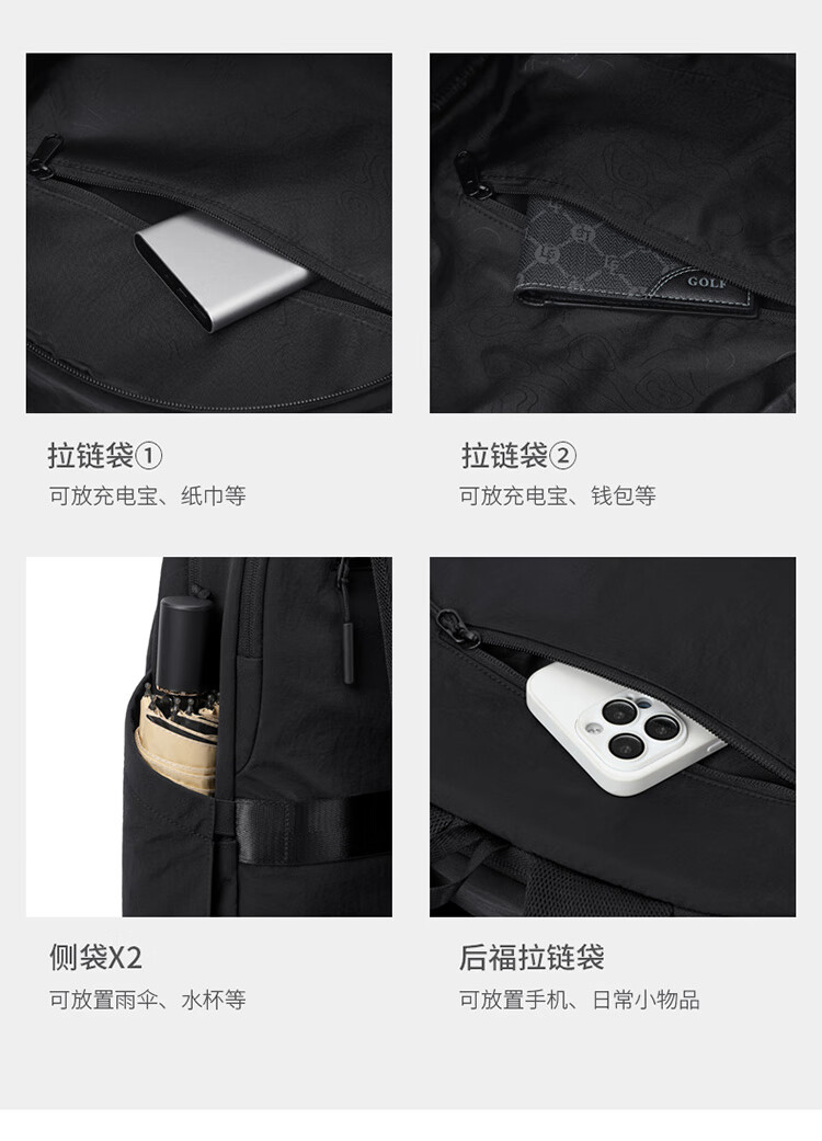 高尔夫(GOLF)双肩包男士旅行背包男女16英寸电脑包学生书包轻量化休闲运动背包