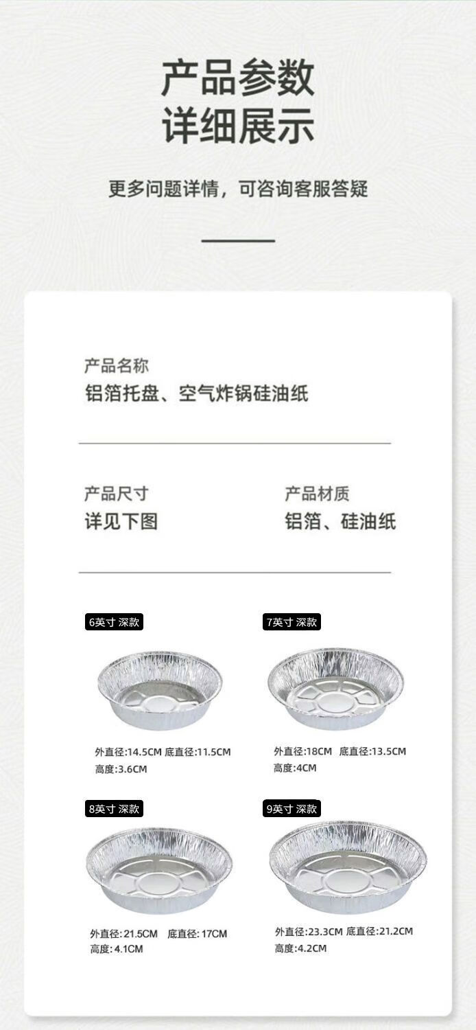 简漾锡纸盘空气炸锅专用纸盘吸油纸烤箱食用家用烘焙油纸食品级耐高温 100个 【8英寸】 4-8升通用锡纸盘