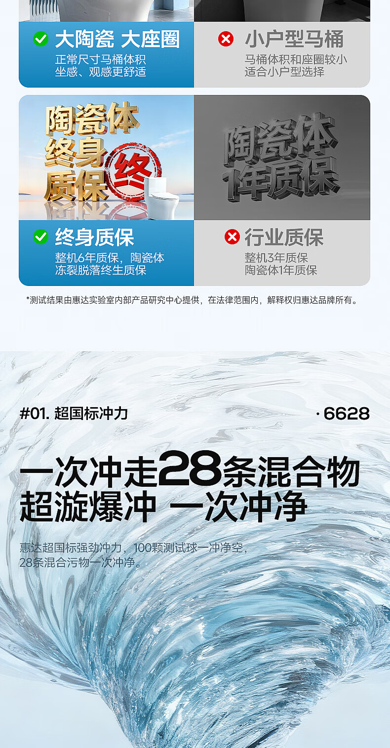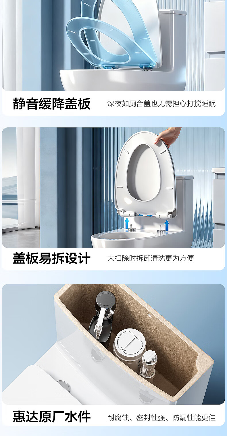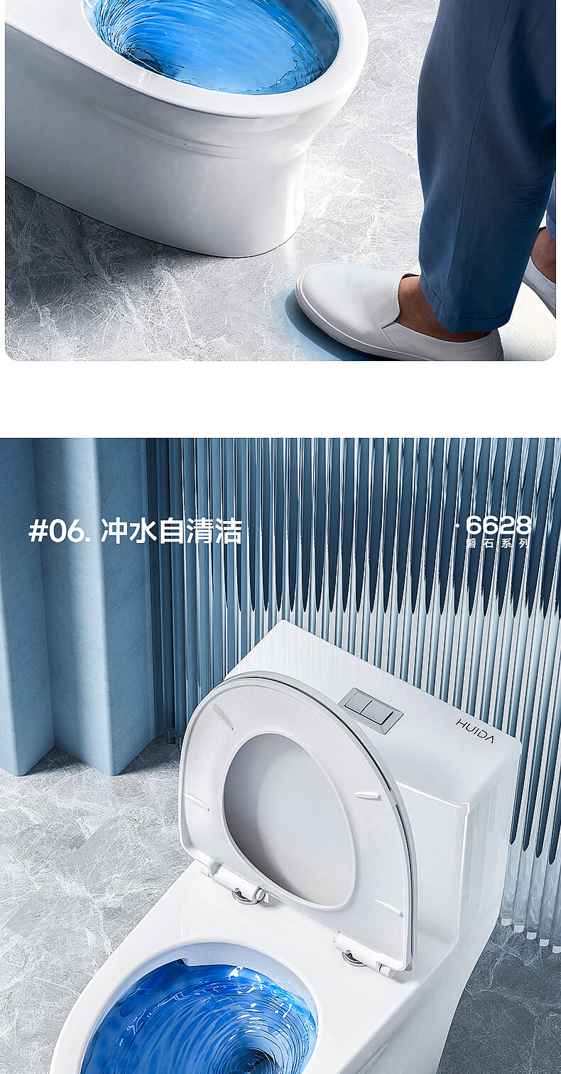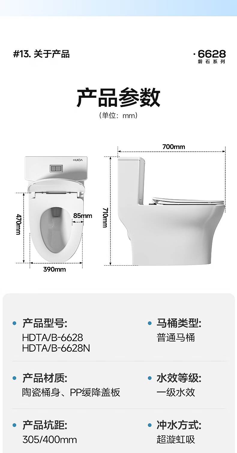 惠达(HUIDA)家用微无棱普通马桶虹吸式缓降盖板马桶大冲力卫生间坐便器6628 【2025新品】磐石系列6628 坑距390以上选 400坑距