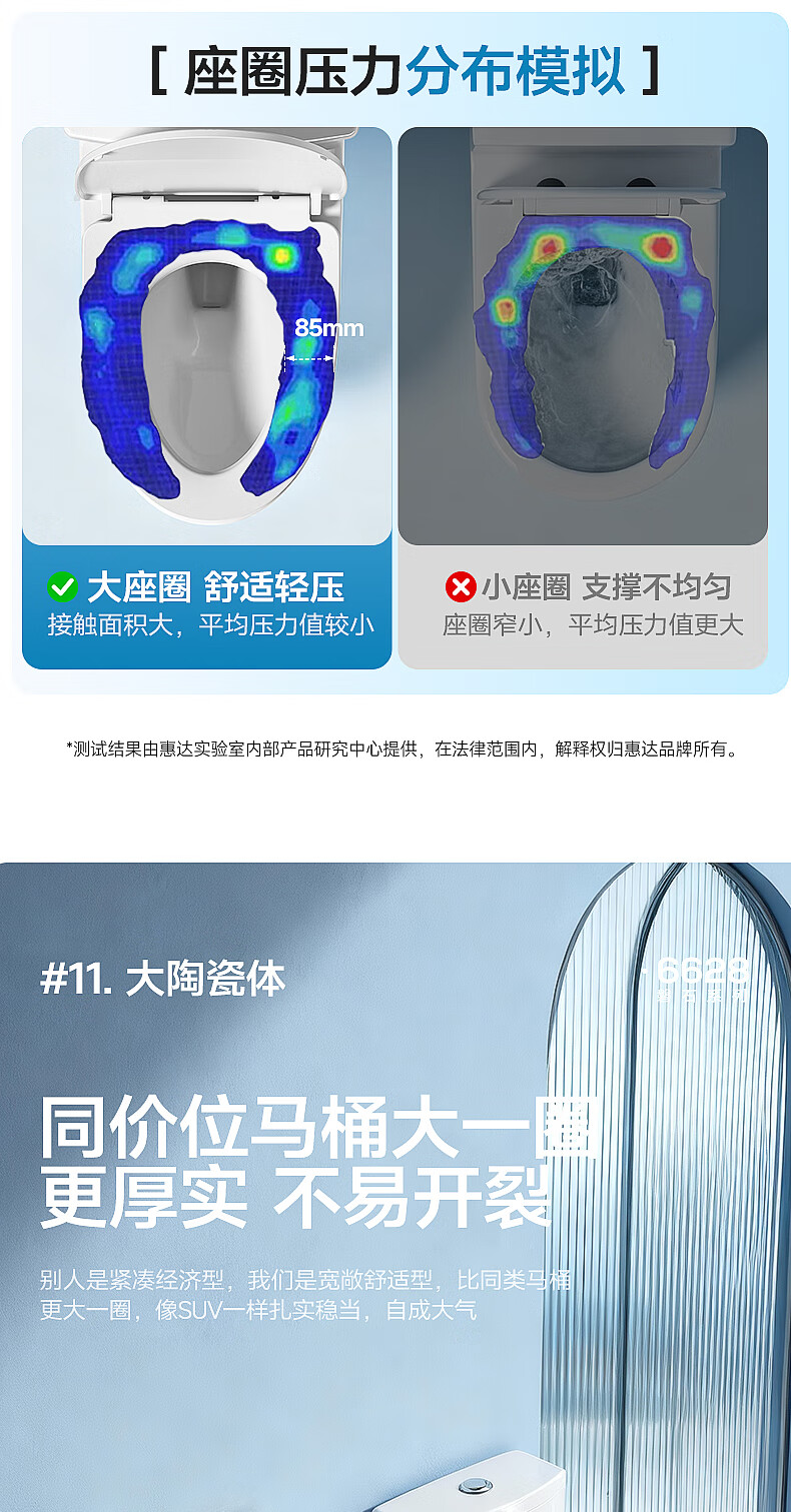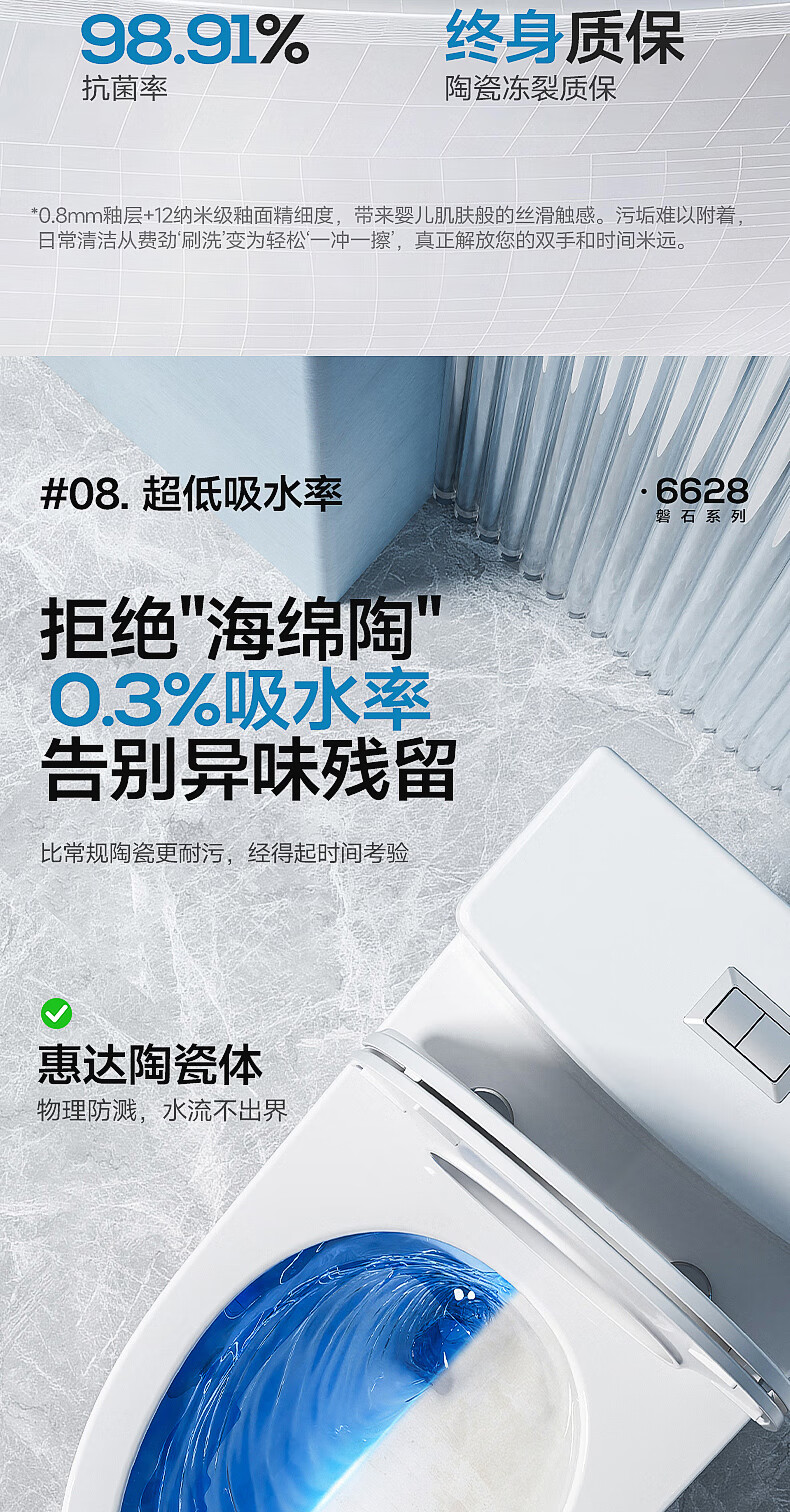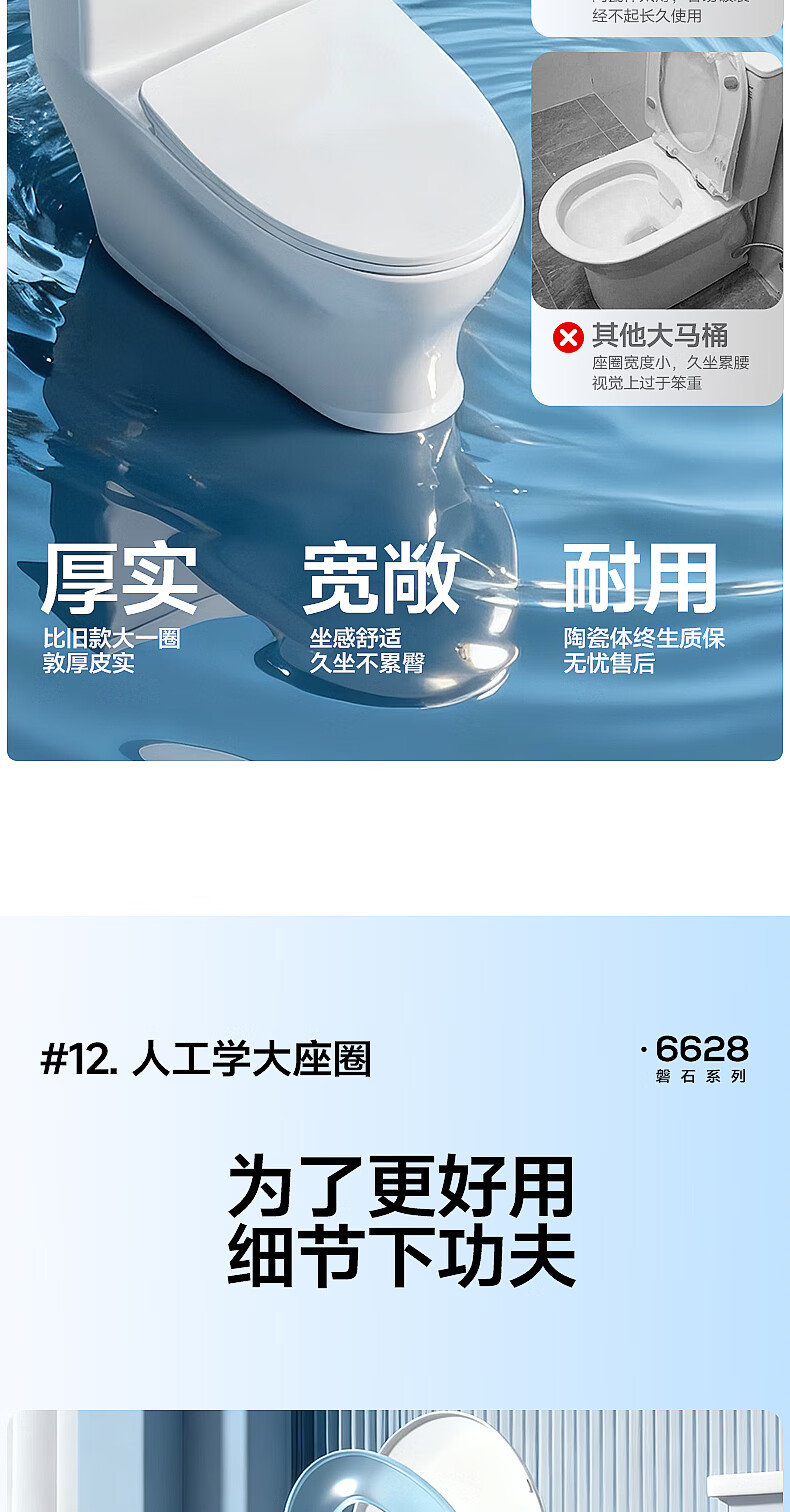 惠达(HUIDA)家用微无棱普通马桶虹吸式缓降盖板马桶大冲力卫生间坐便器6628 【2025新品】磐石系列6628 坑距390以上选 400坑距