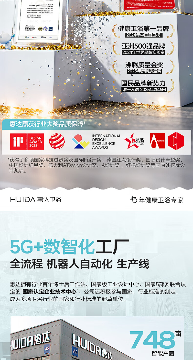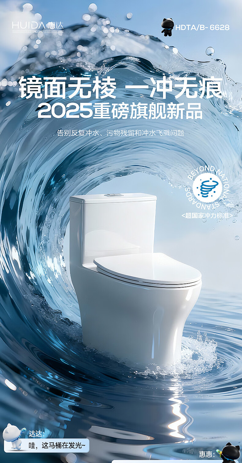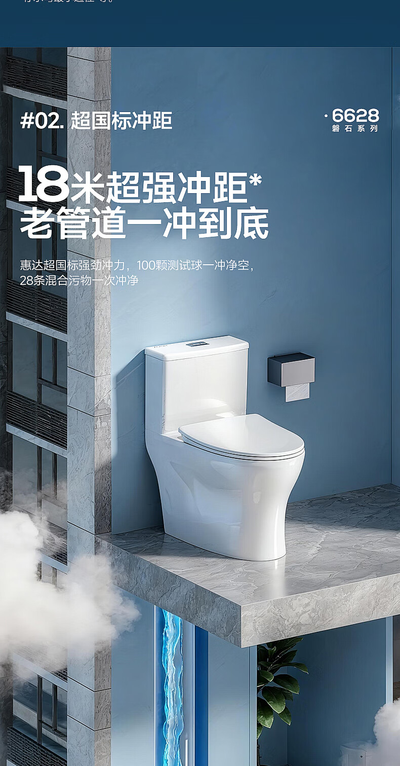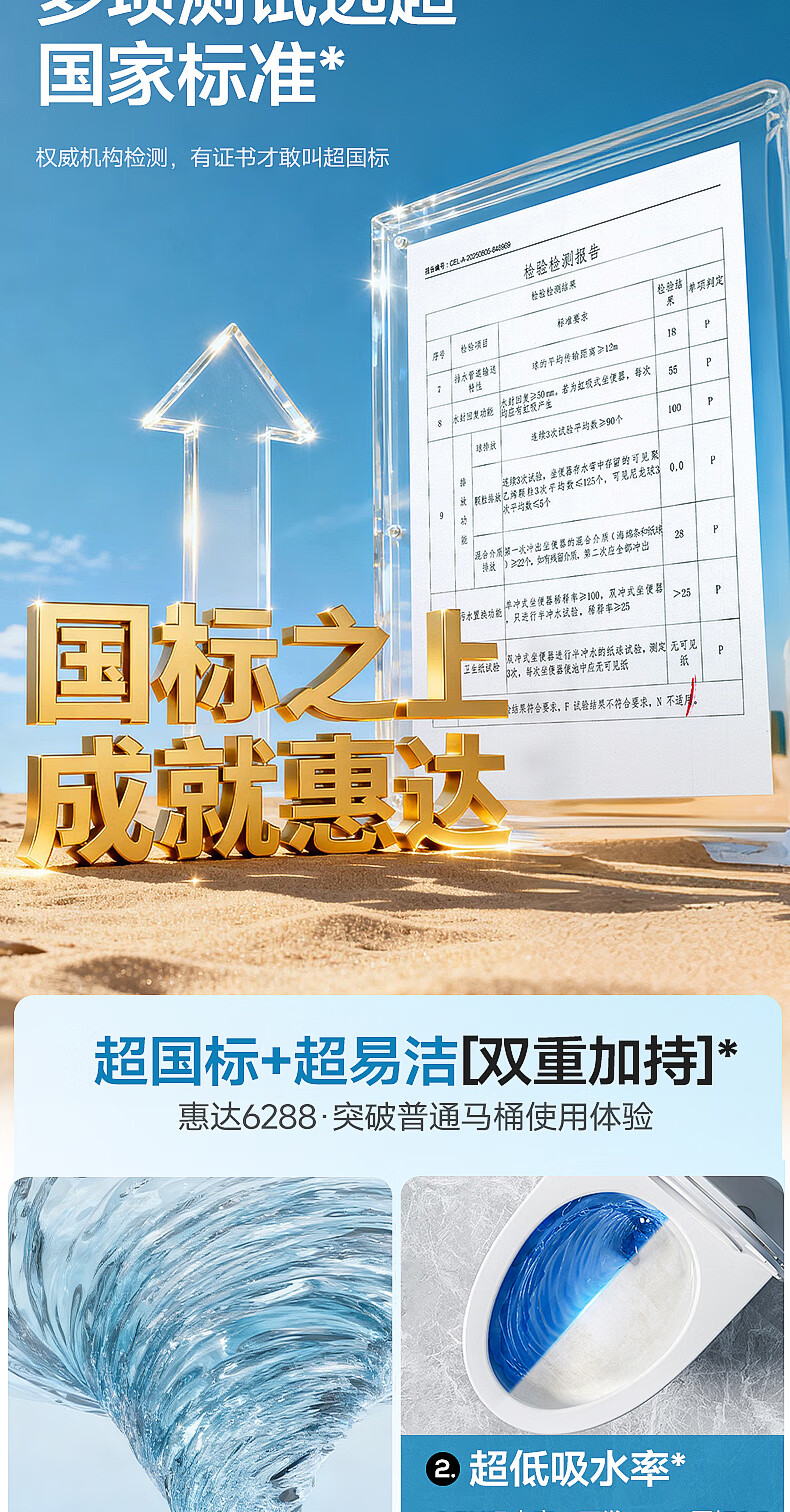 惠达(HUIDA)家用微无棱普通马桶虹吸式缓降盖板马桶大冲力卫生间坐便器6628 【2025新品】磐石系列6628 坑距390以上选 400坑距
