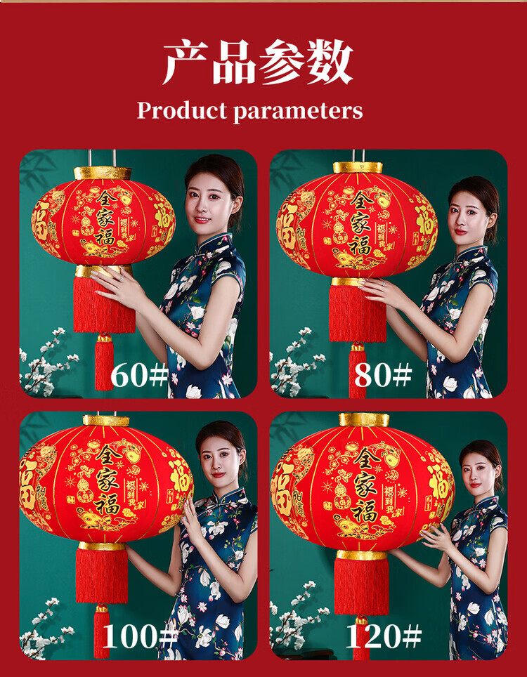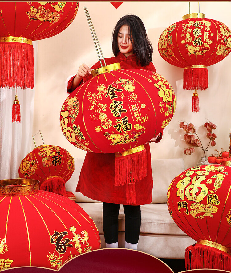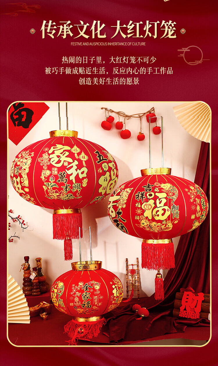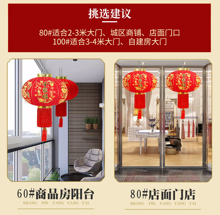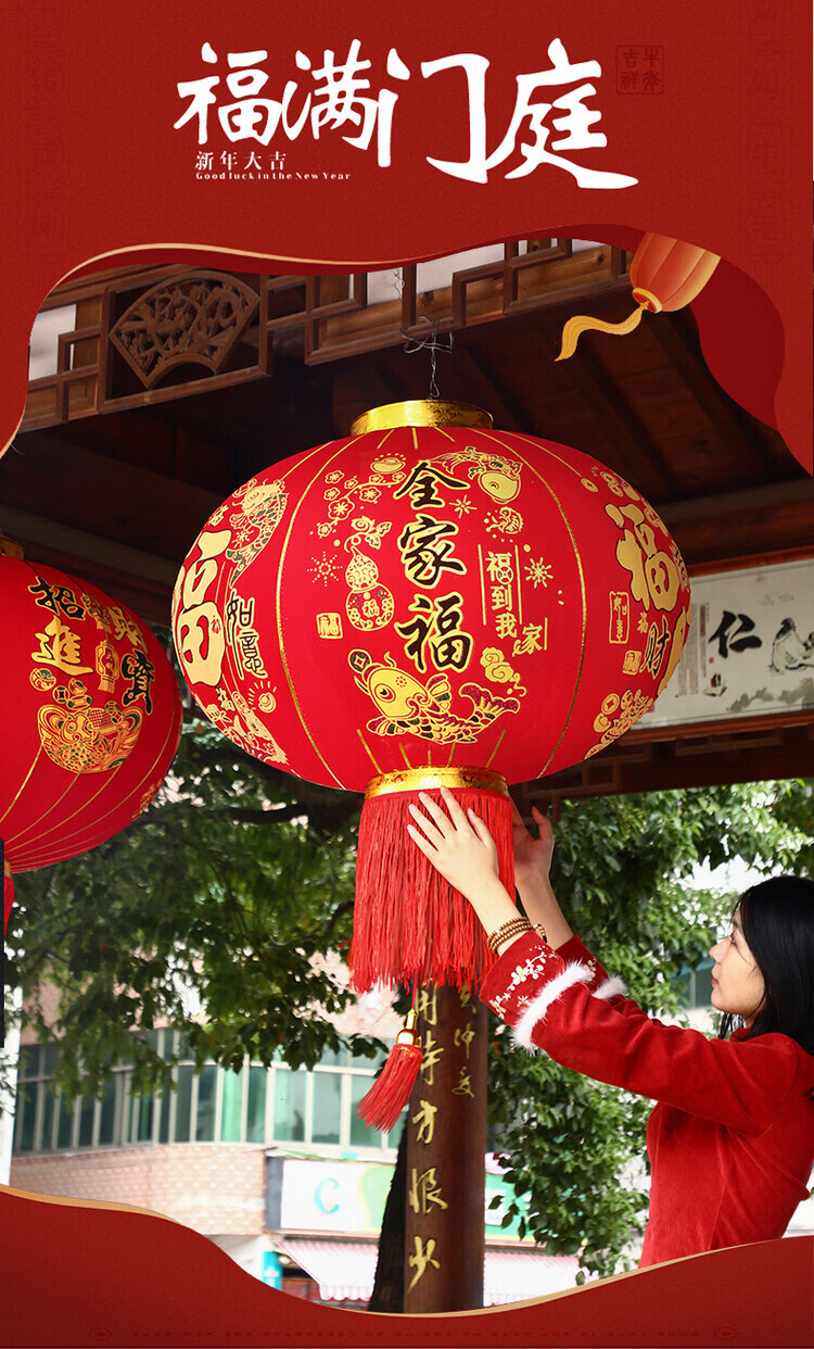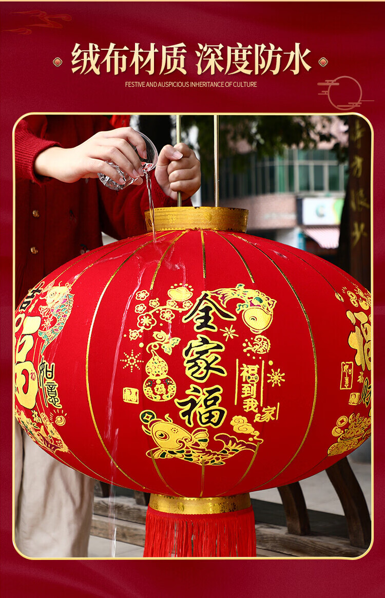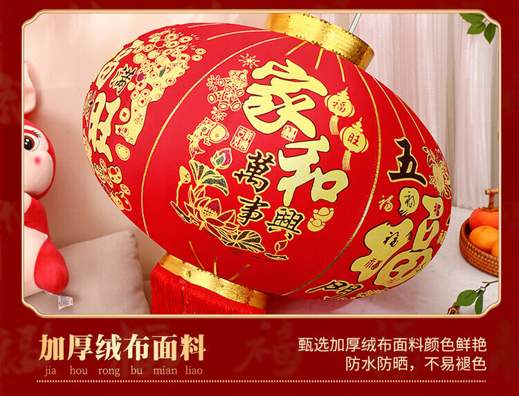 OYKTN2026春节大红绒布灯笼挂饰户外大门阳台防水宫灯喜庆新年布置装饰 【60#家和万事兴】2个装-高档绒布大灯笼+led