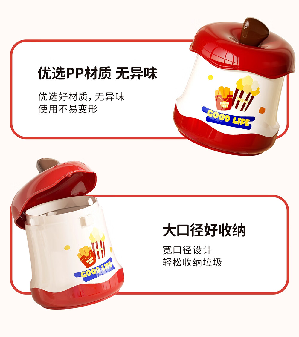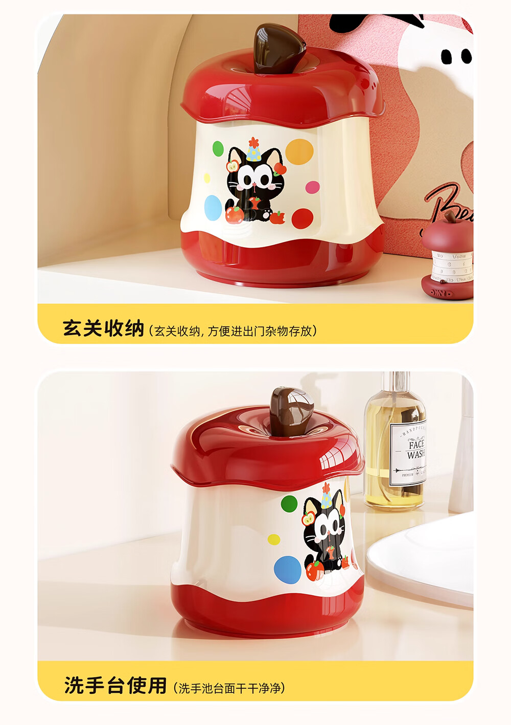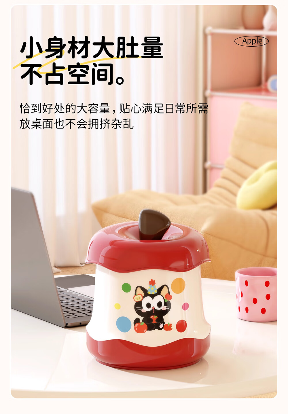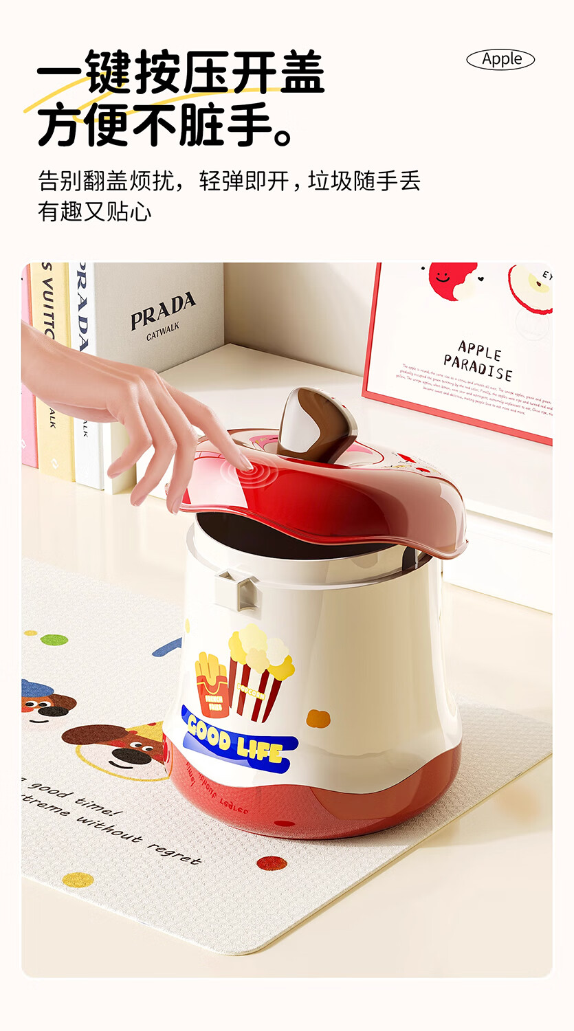木格格桌面垃圾桶高颜值网红新款带盖可爱办公室宿舍桌上迷你小卫生纸篓 红苹果+波点猫【按压弹盖/萌趣造型】