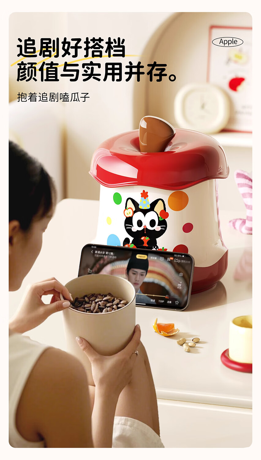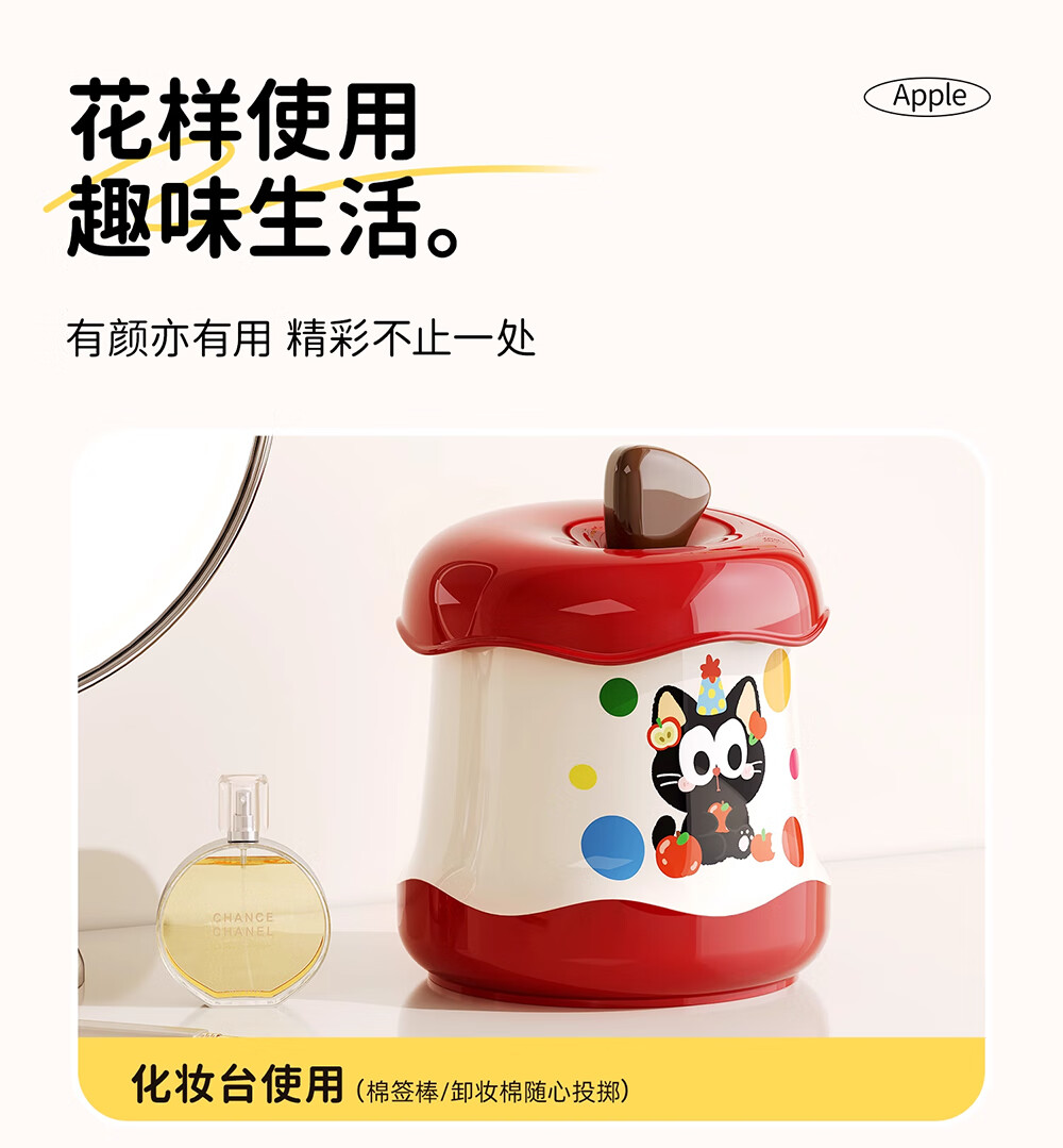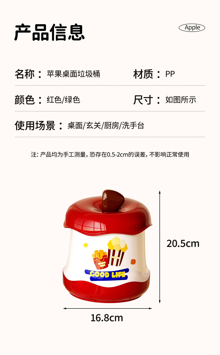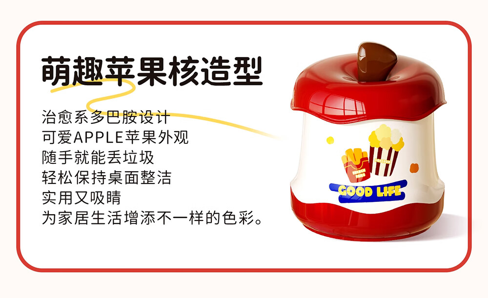 木格格桌面垃圾桶高颜值网红新款带盖可爱办公室宿舍桌上迷你小卫生纸篓 红苹果+波点猫【按压弹盖/萌趣造型】