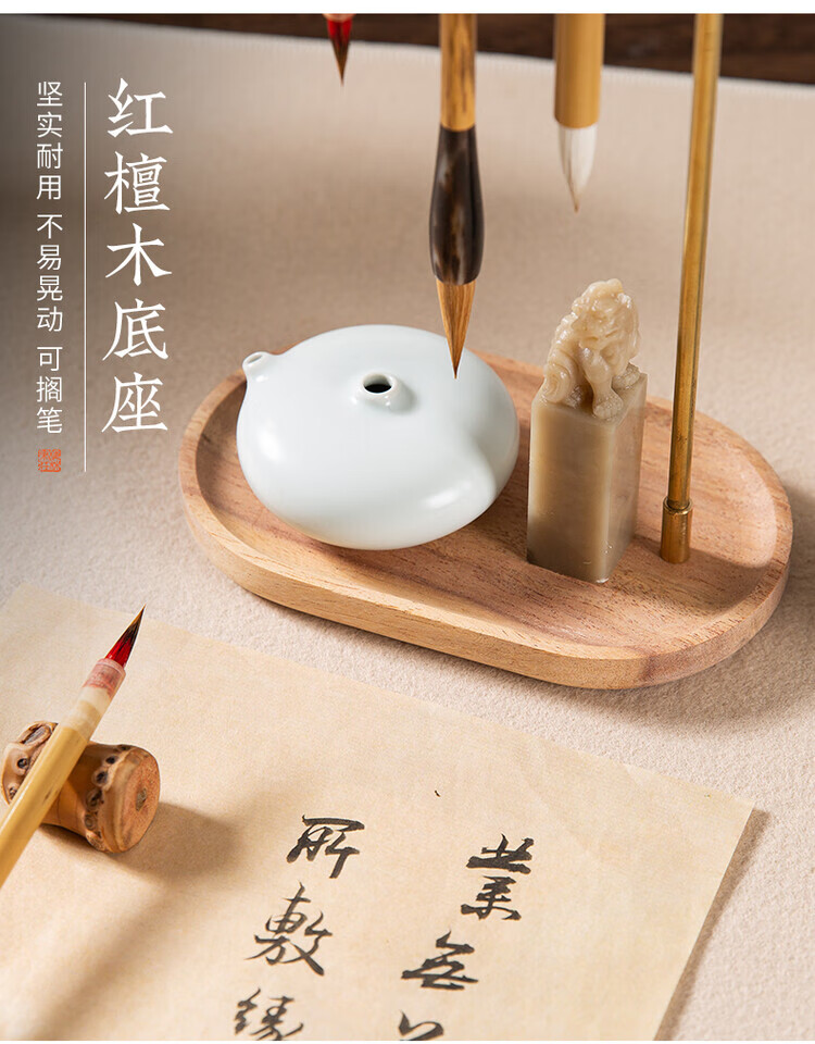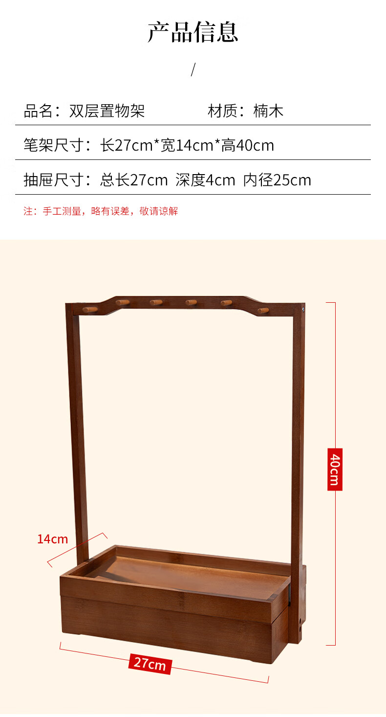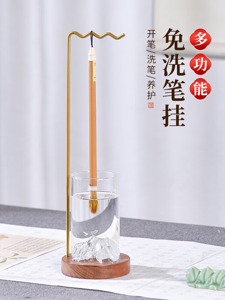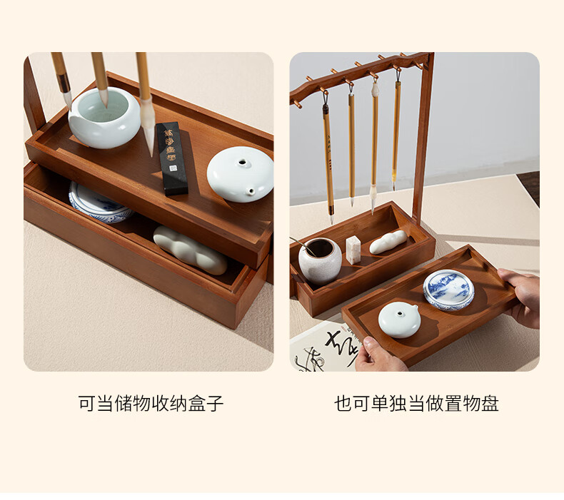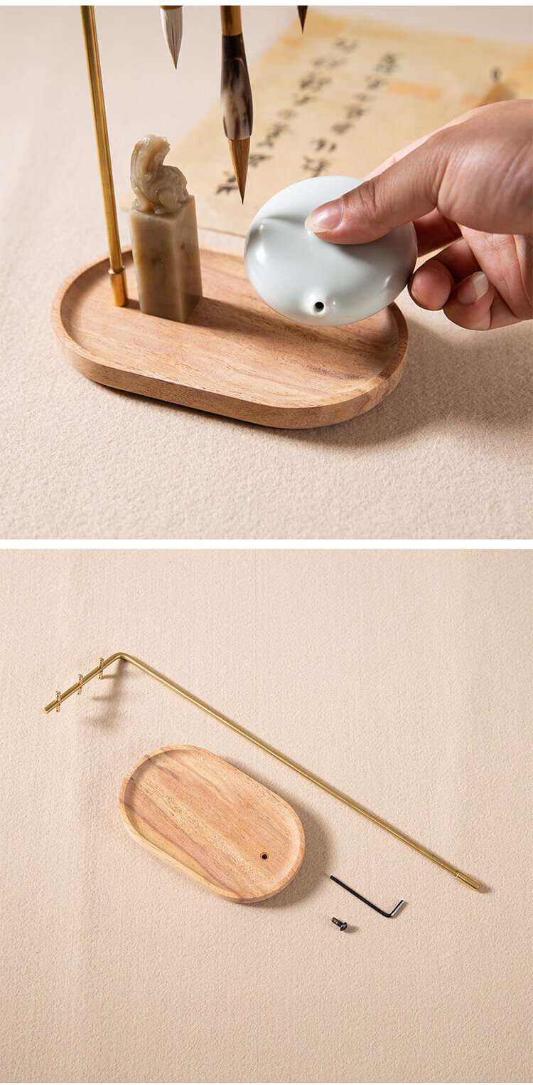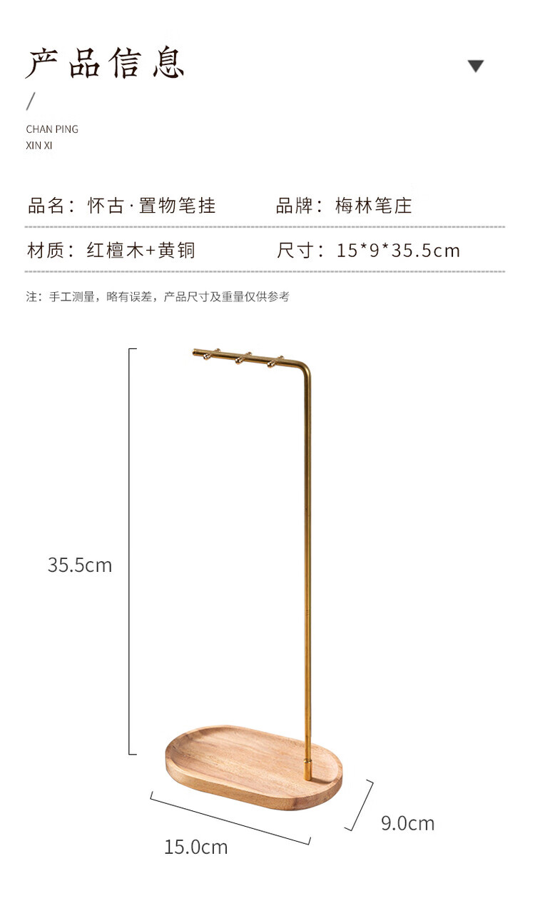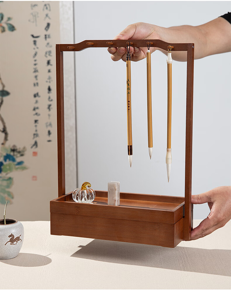 梅林笔庄黄铜笔挂怀古毛笔架新中式多功能实木铜针架子古风创意办公室桌面简约收纳置物架挂架文房四宝摆件 【单层】楠竹毛笔架