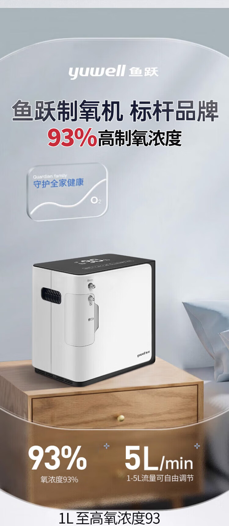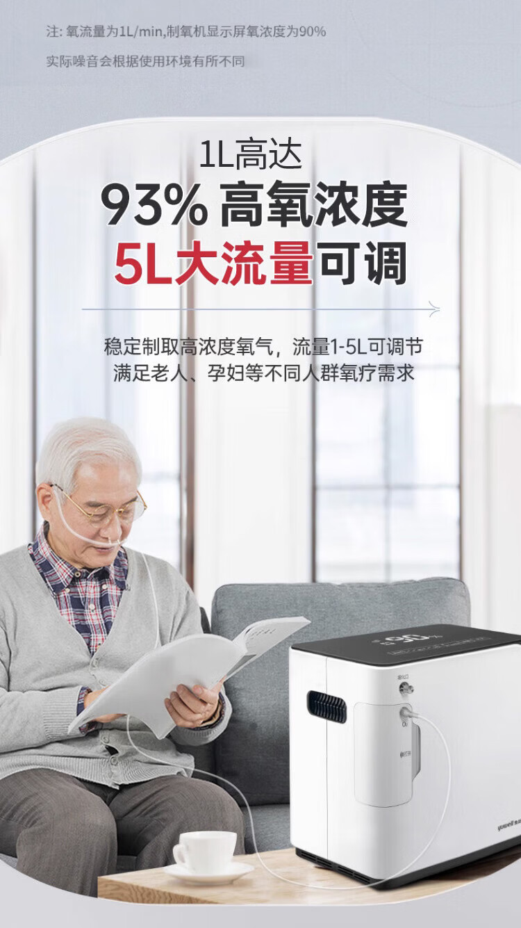 鱼跃吸氧机5升L家用制氧机老人孕妇用呼吸制氧雾化一体机轻音吸氧机 【制氧雾化一体】5升氧可调+轻音制氧+24h定时