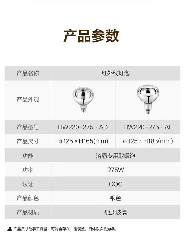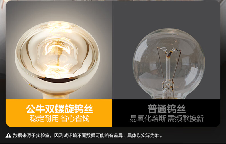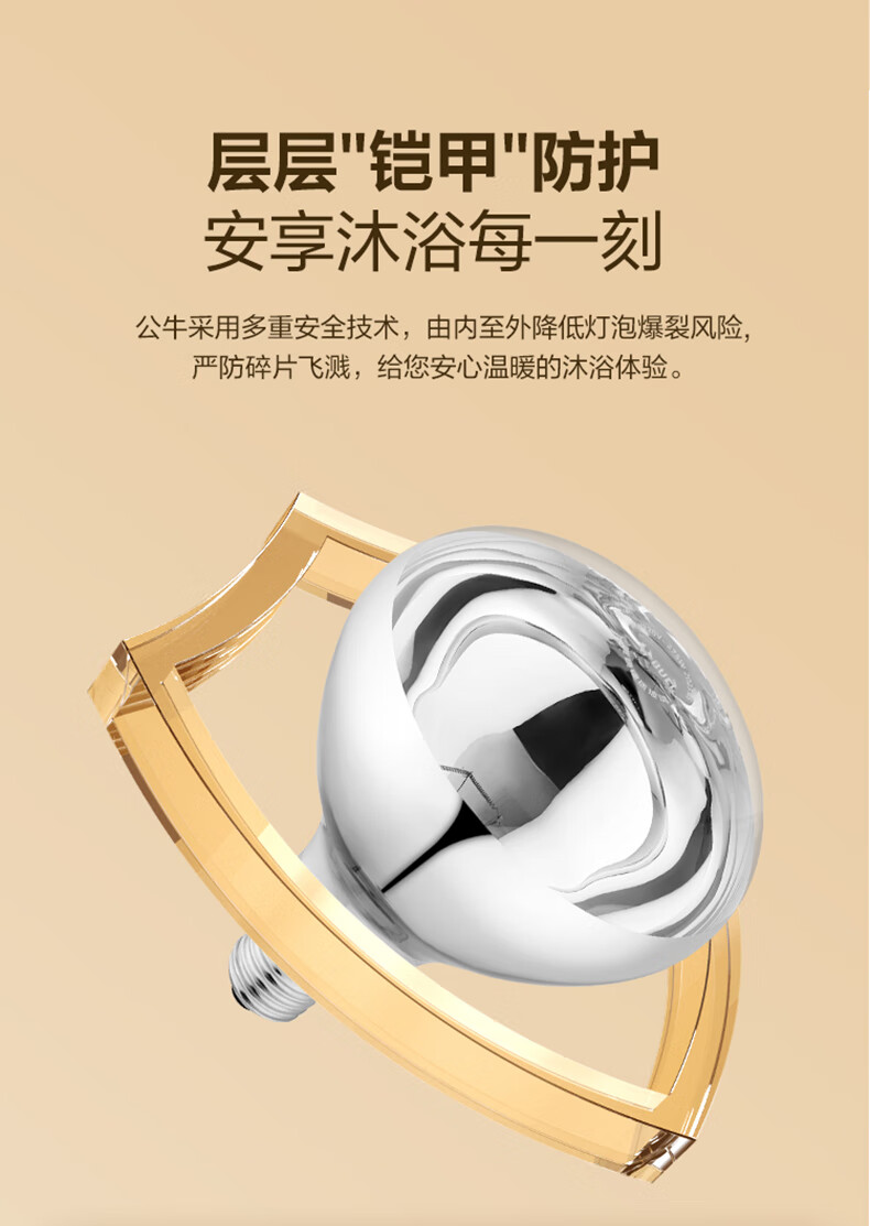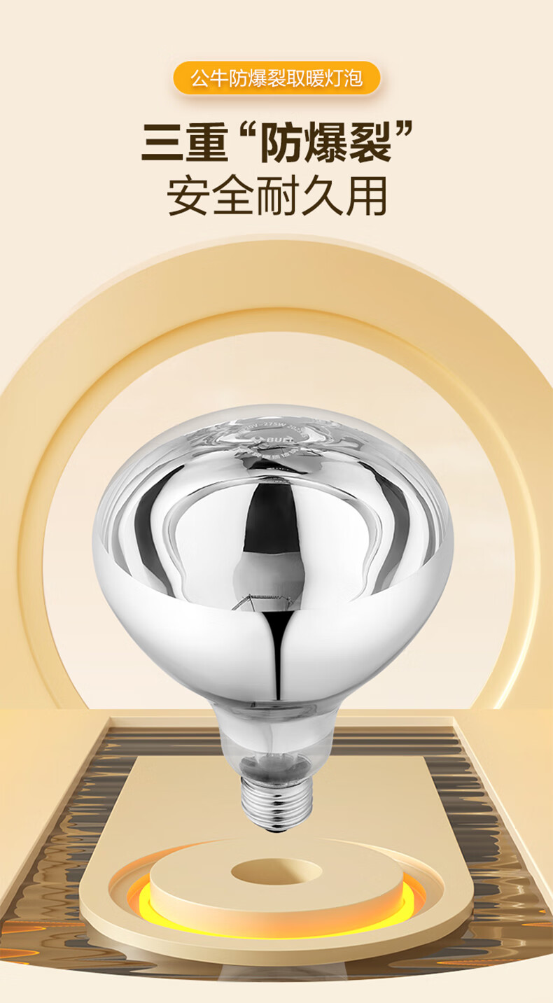 公牛(BULL)浴霸灯泡 防爆裂冬天取暖灯 老式通用集成吊顶灯暖泡浴室照明一体 高165mm【2只装】通用E27螺口 官方大功率高效耐高温卫生间洗澡