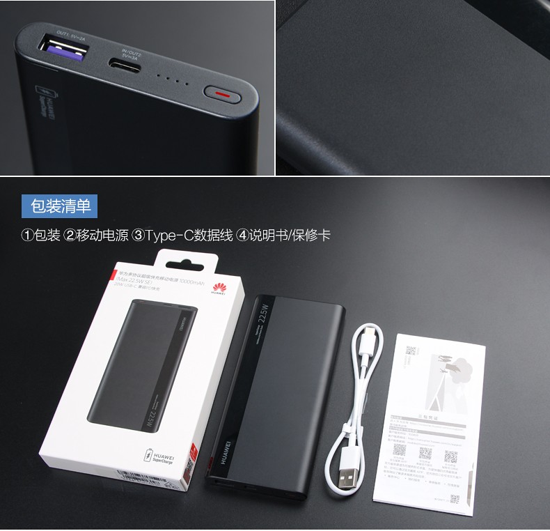 华为原装充电宝10000毫安移动电源大容量22.5W双向超级快充超薄便携可上飞机荣耀小米苹果手机通用 22.5W超级快充版-黑色【配Type-c数据线】