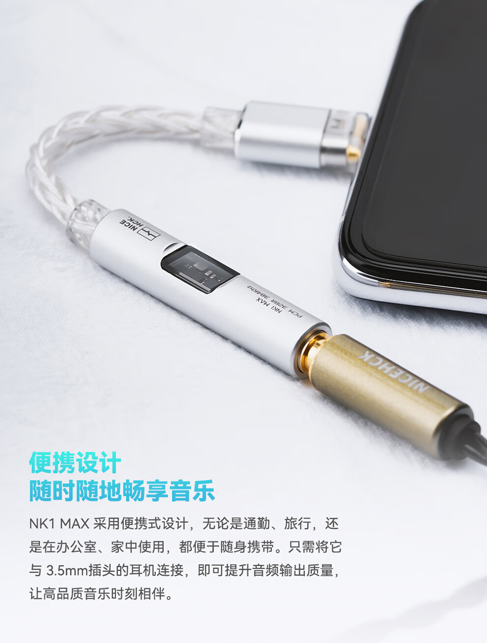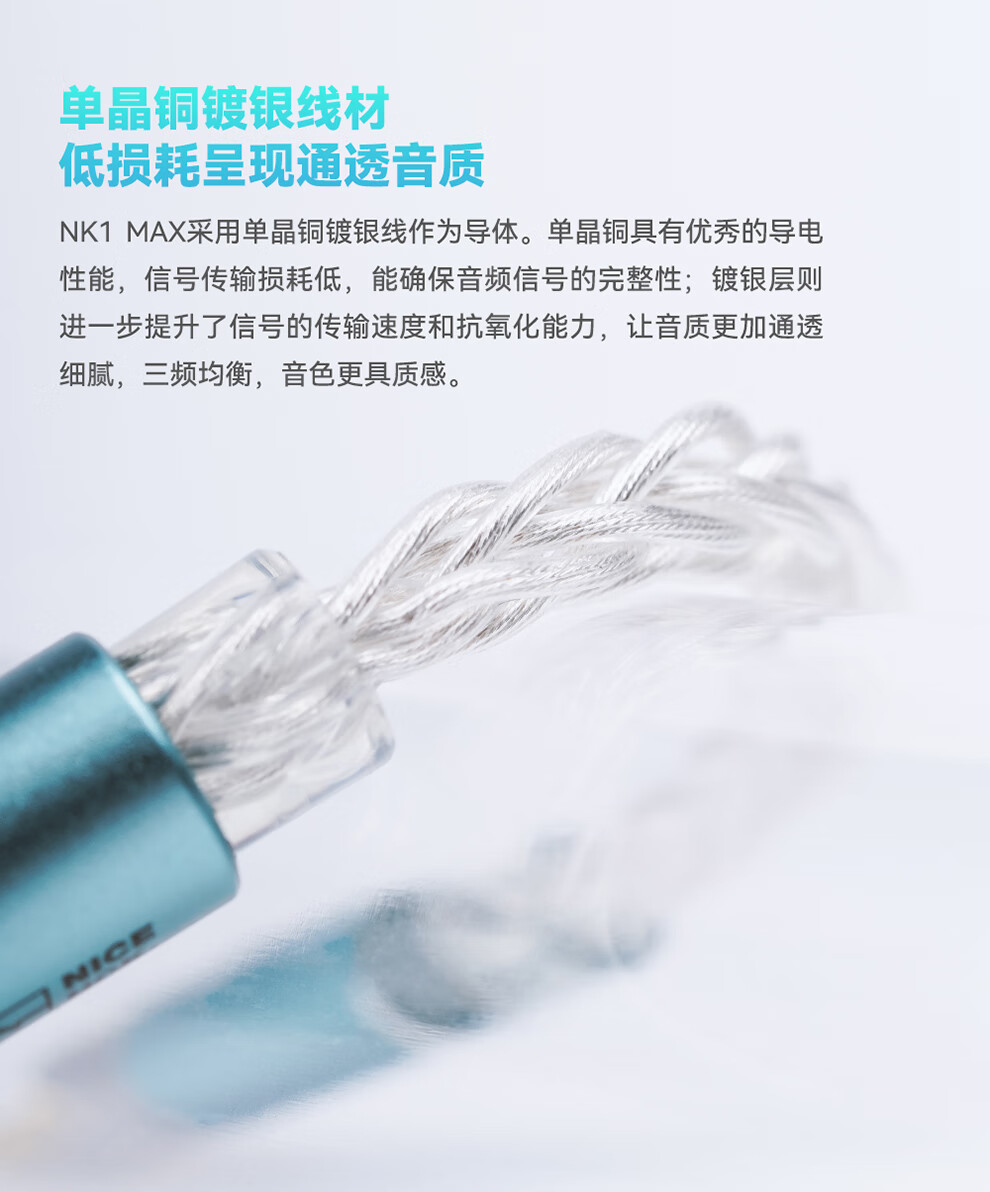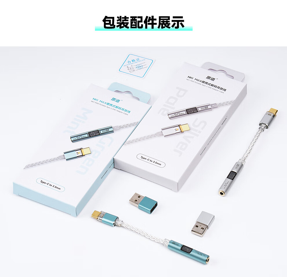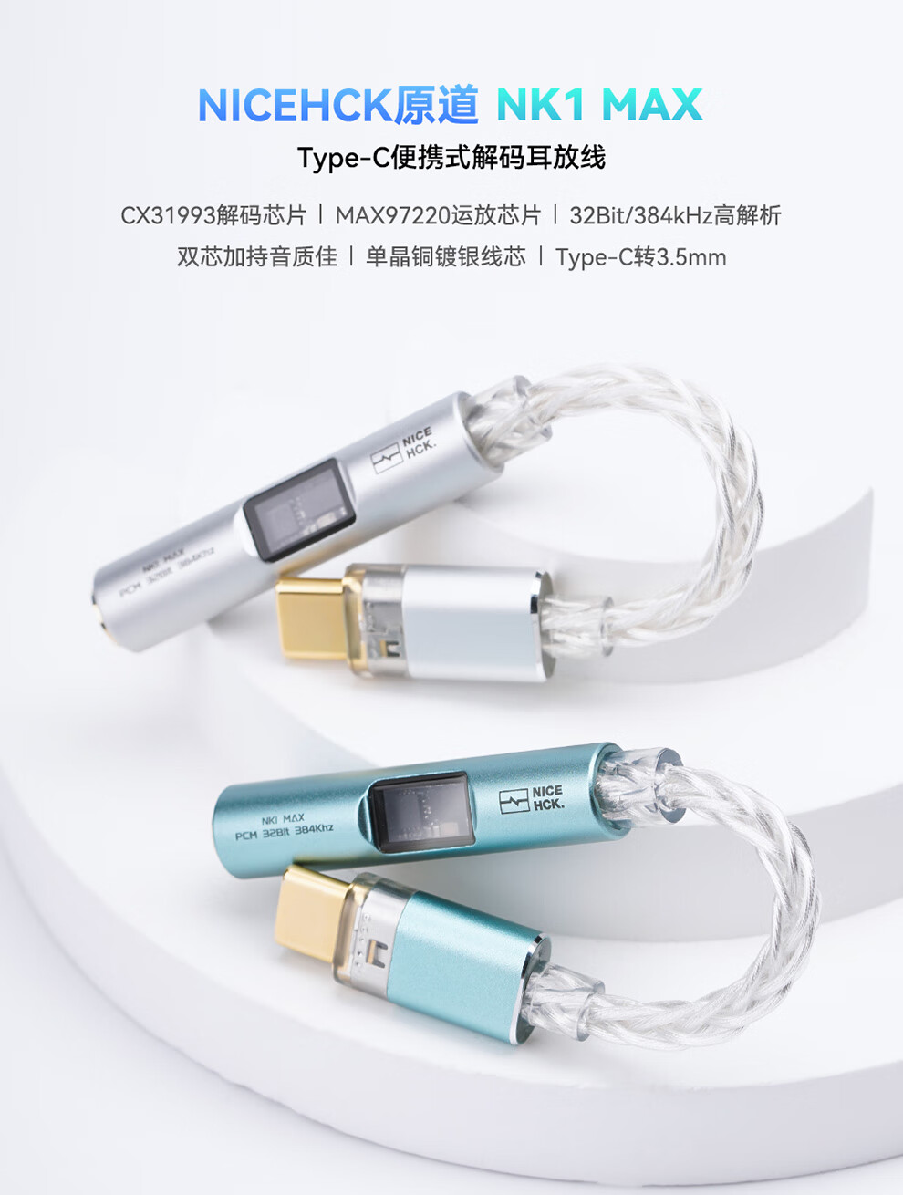 NICEHCK原道 NK1 MAX转接线原道耳机Type-C小尾巴HiFi音频DAC解码耳放线CX31993+MAX97220双芯片 NK1 MAX双芯片解码耳放线-清雅银色版