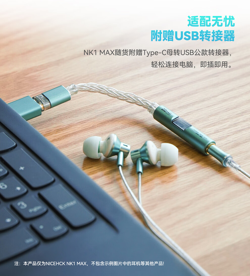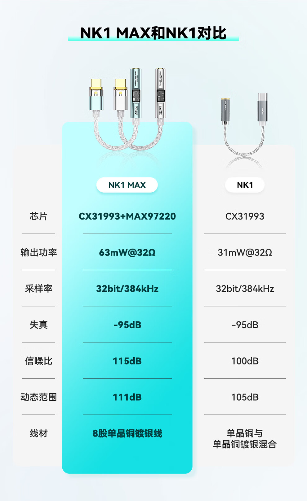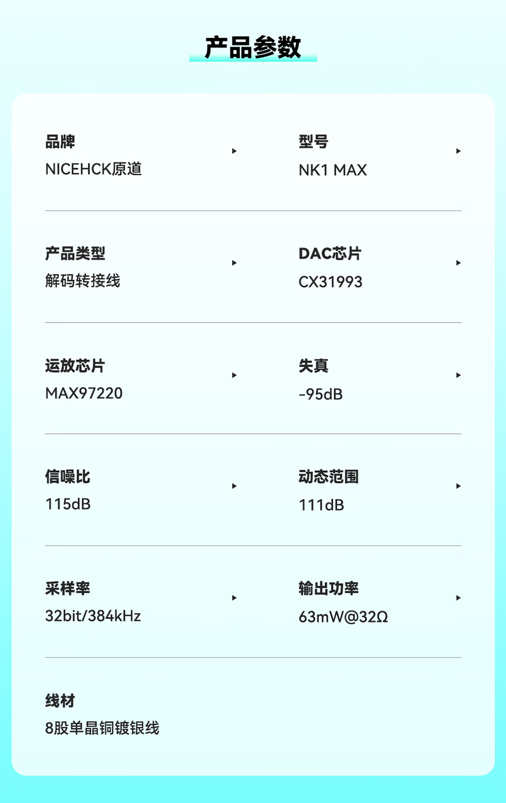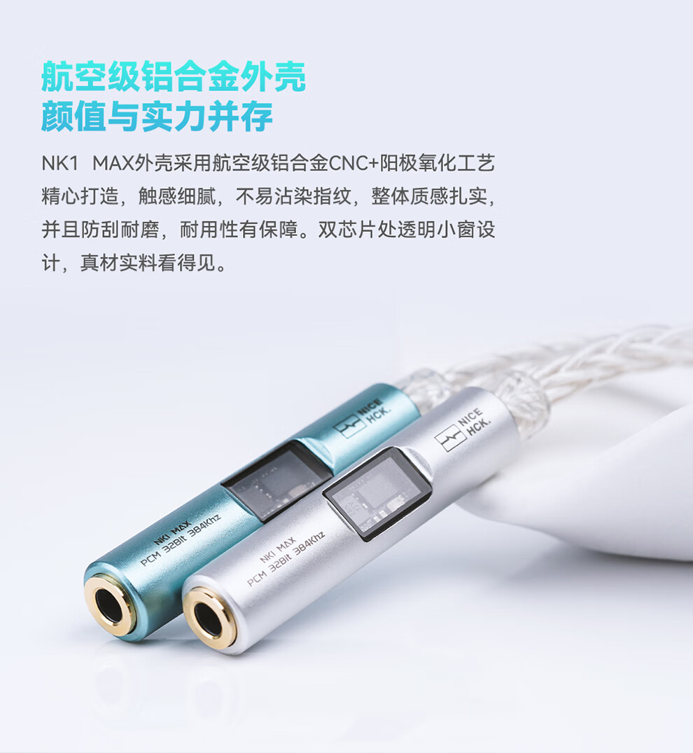 NICEHCK原道 NK1 MAX转接线原道耳机Type-C小尾巴HiFi音频DAC解码耳放线CX31993+MAX97220双芯片 NK1 MAX双芯片解码耳放线-清雅银色版