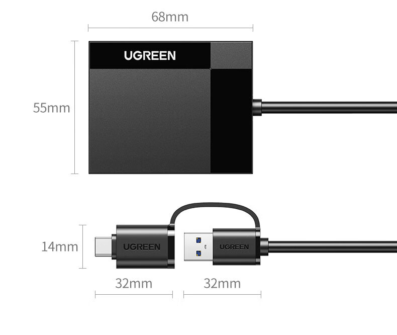 绿联 USB/Type-C3.0高速4.0读卡器多功能合一SD/TF读卡器OTG 适用手机相机行车记录仪监控摄像头存储卡 Type-C+USB【3.0双卡同读】奶茶色胶壳
