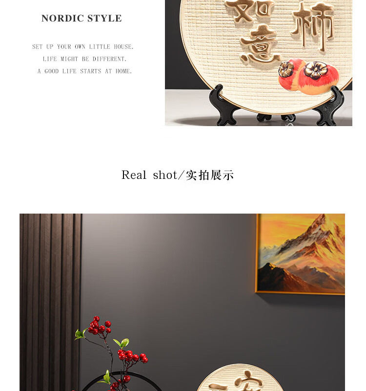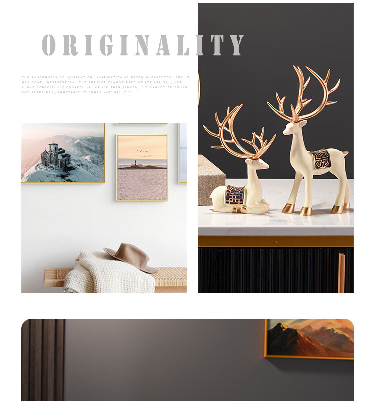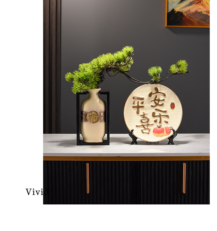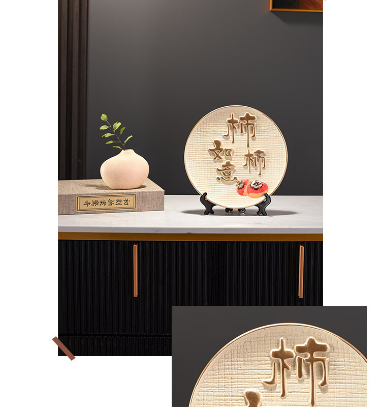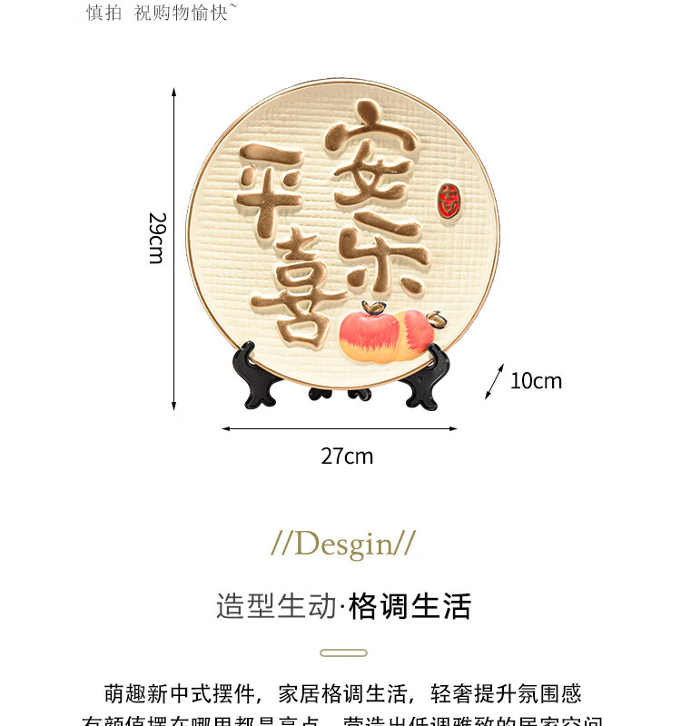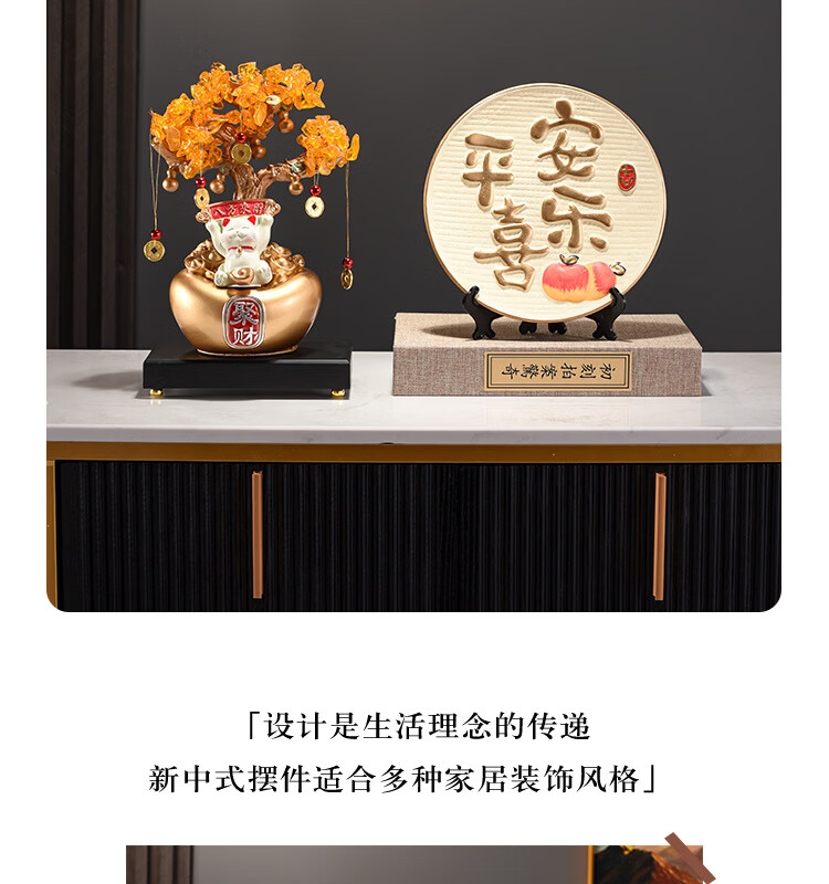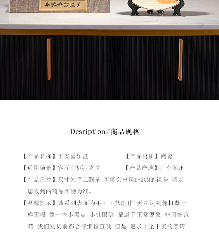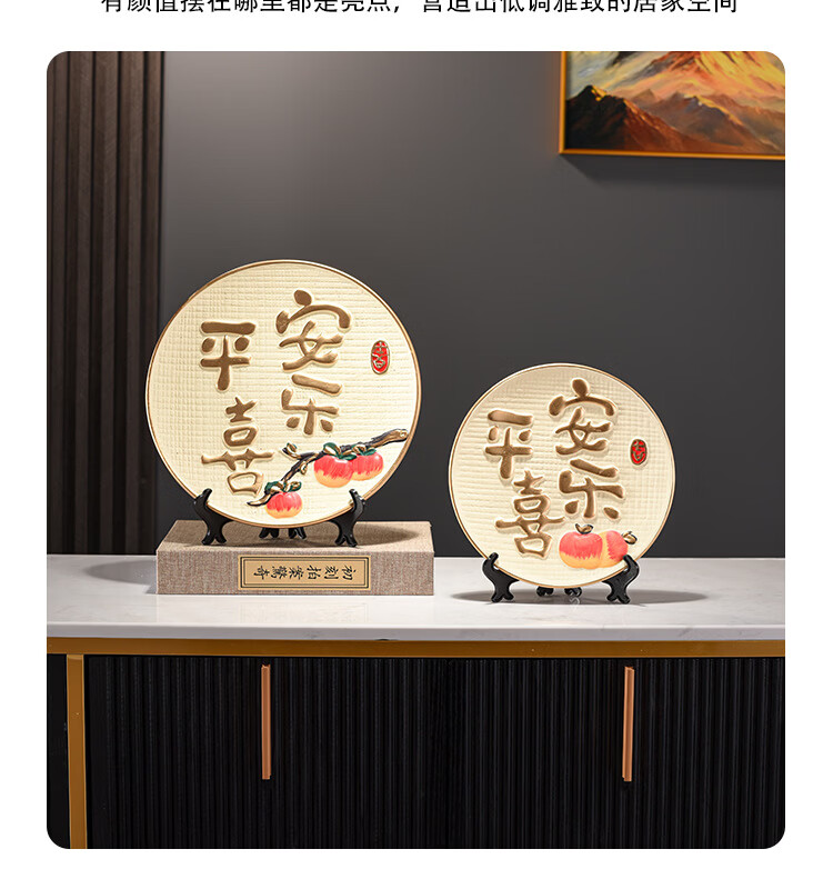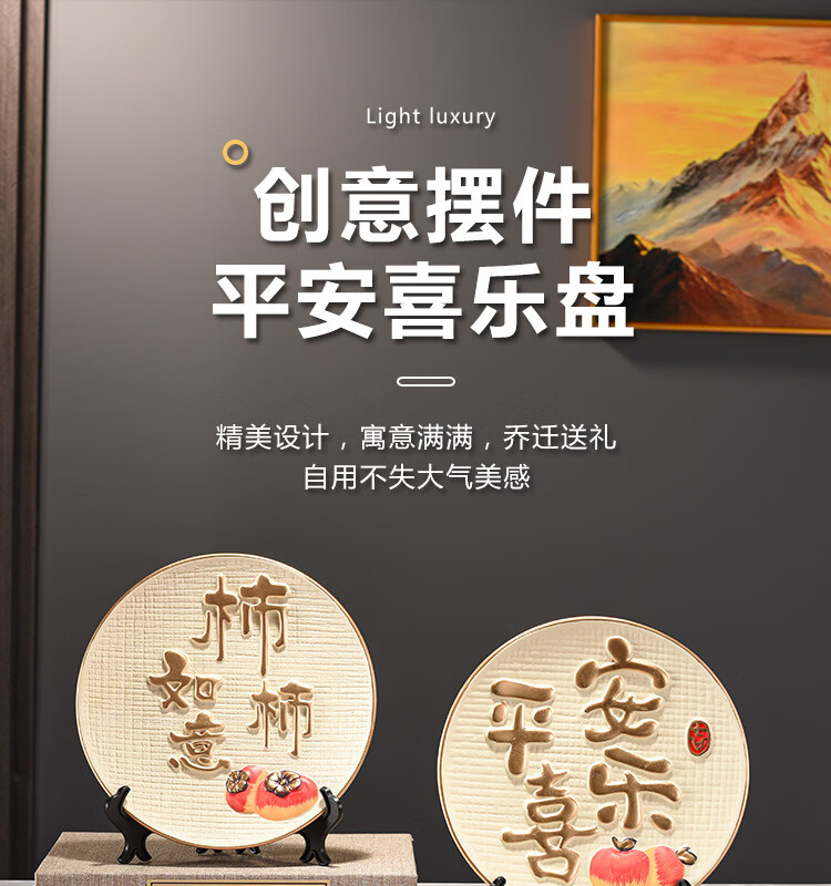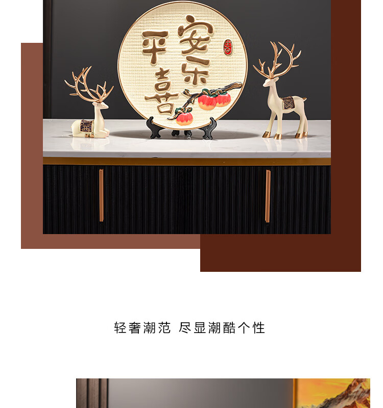 OYKTN中国风平安喜乐摆件酒柜摆件客厅玄关电视柜书房办公室陶瓷装饰品 大号平安喜乐盘+大鹿一对