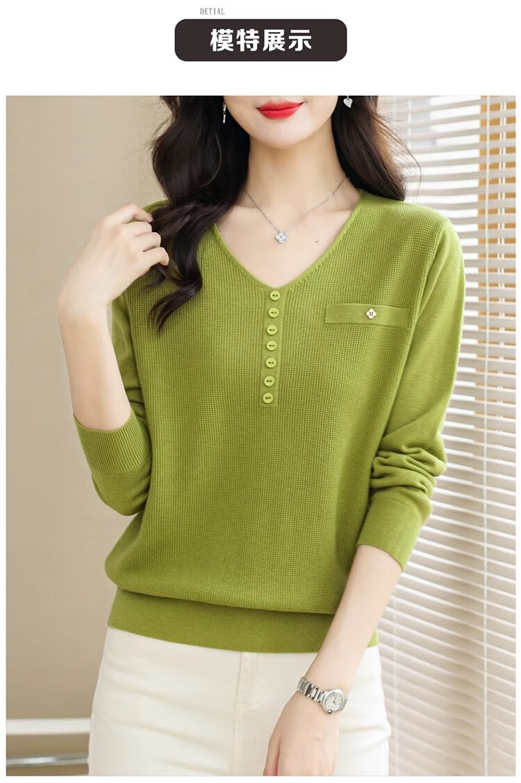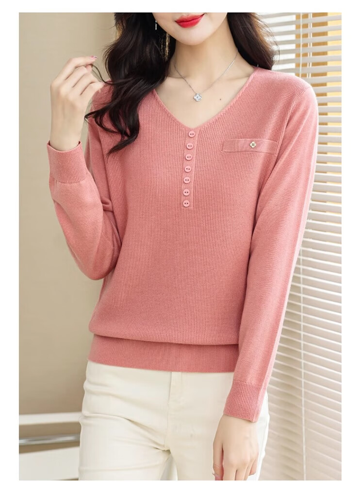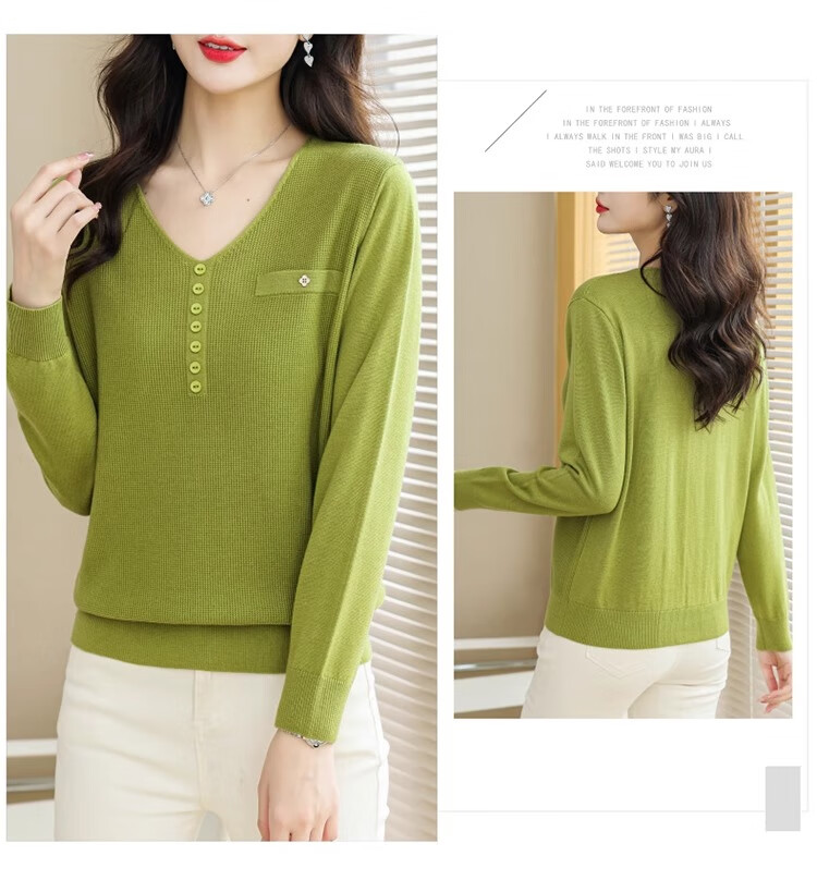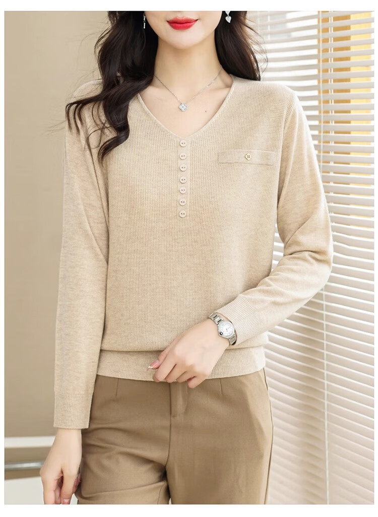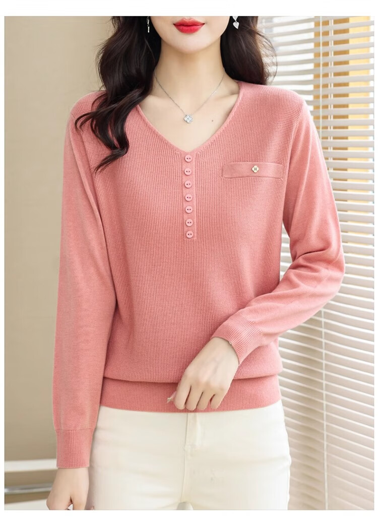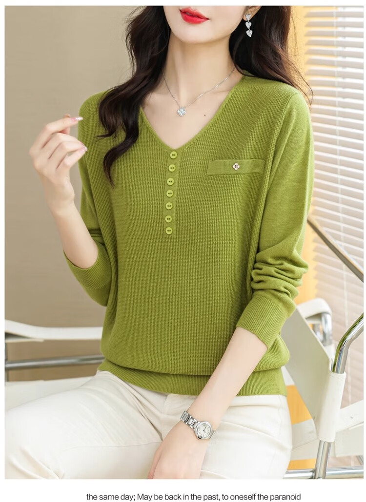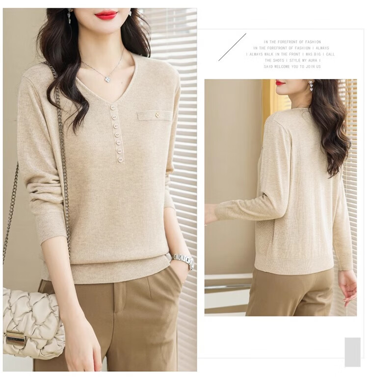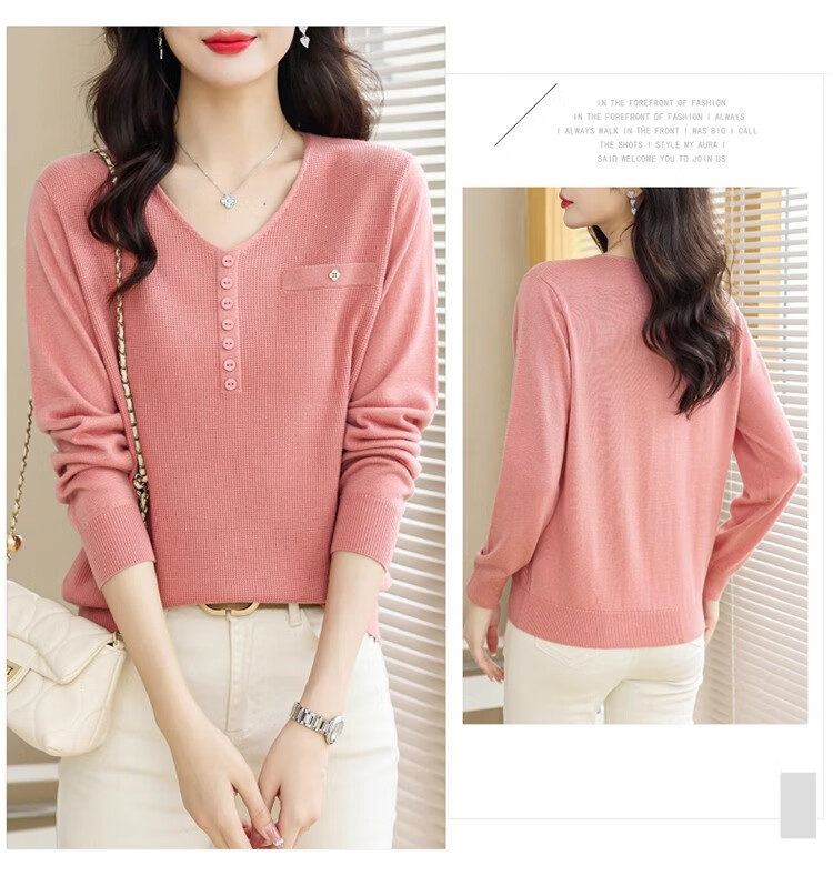 香影芬针织衫女长袖春秋装遮肚子上衣v领时尚毛衣女洋气内搭针织打底衫 灰色 XL (建议115-125斤)