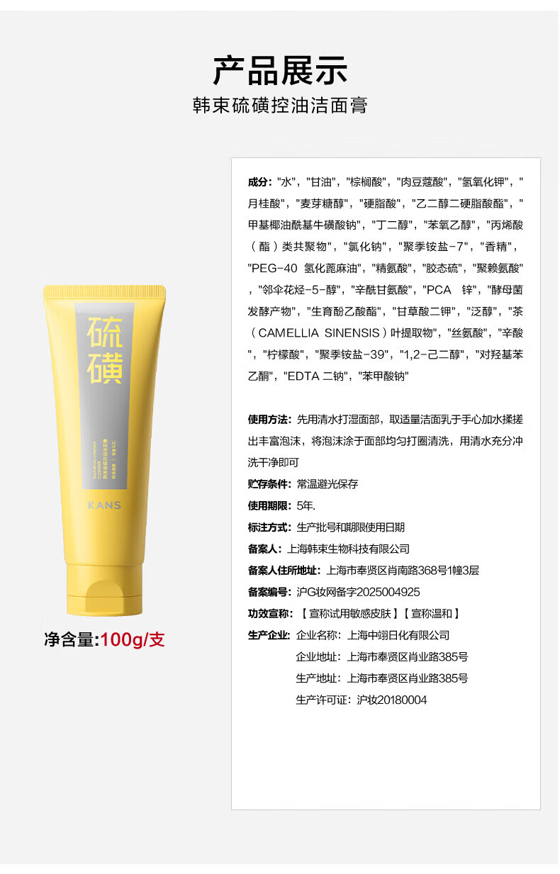 韩束硫磺洁面膏控油清爽清洁舒缓保湿男女通用护肤品生日礼物 【清爽控油】洁面100g*2