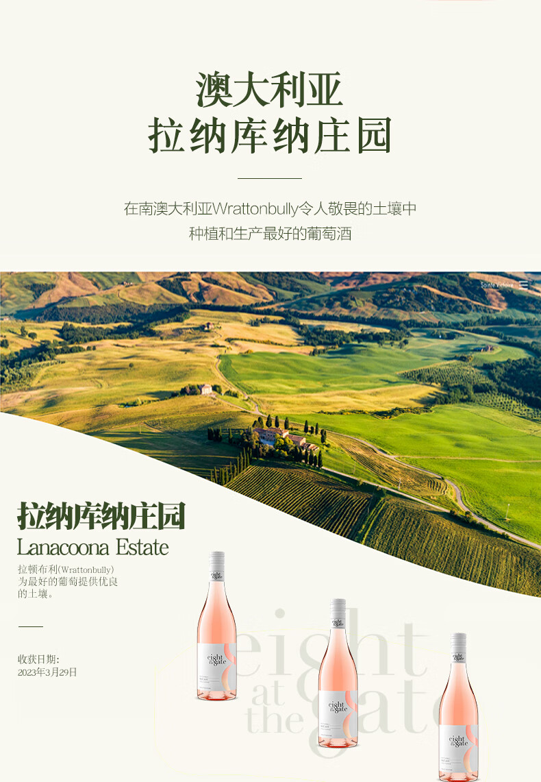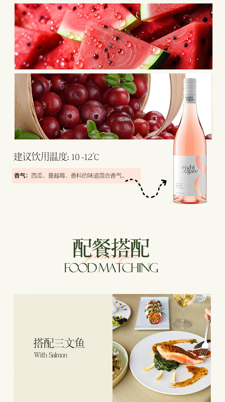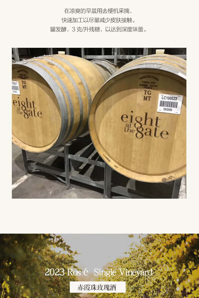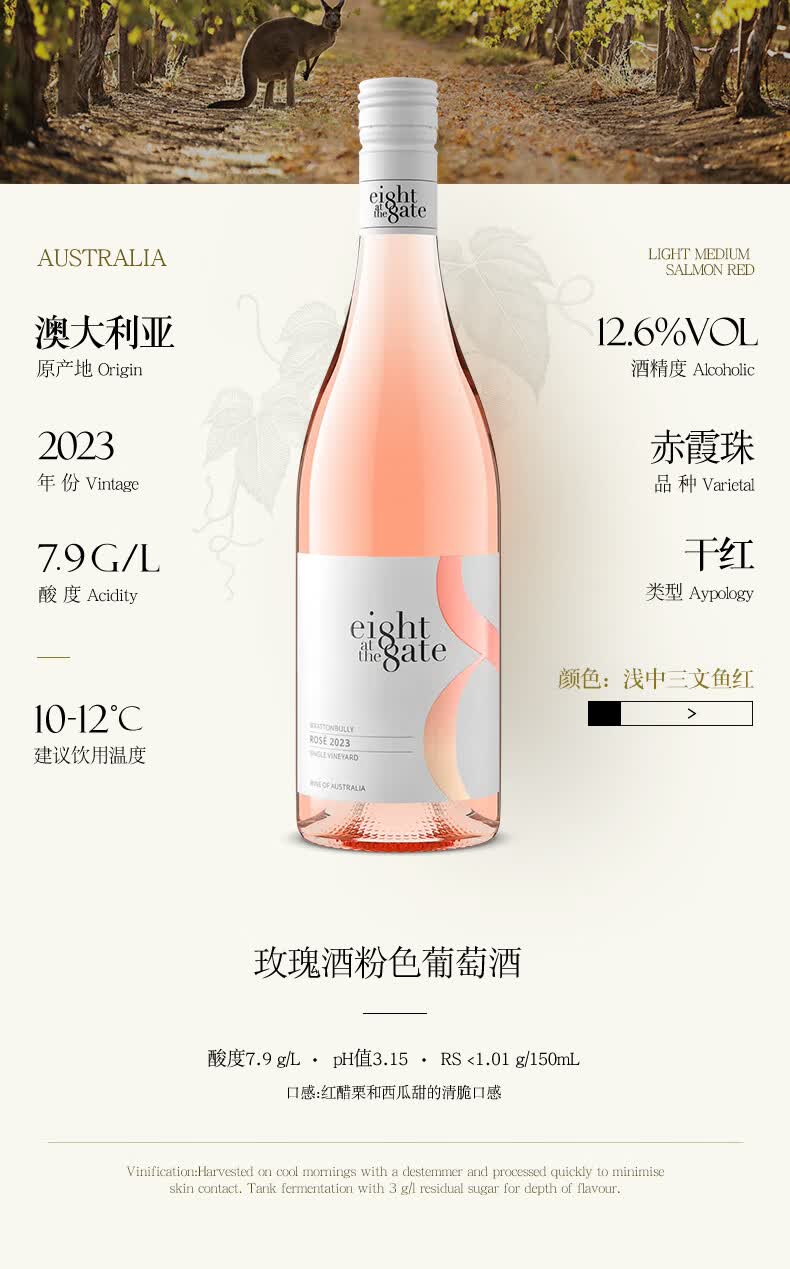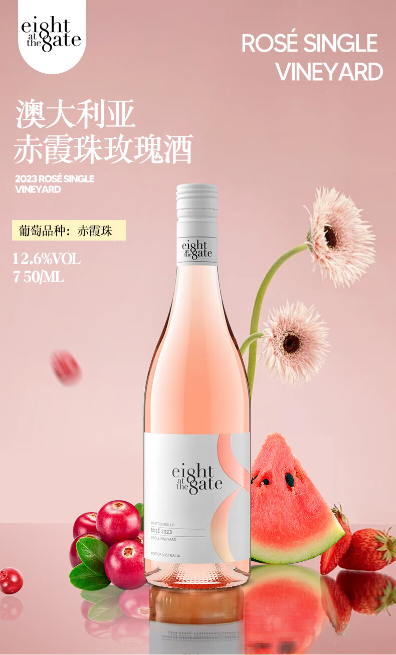 EIGHT AT THE GATE8号门2023玫瑰酒单一葡萄园粉色葡萄酒约会自饮送人 赤霞珠玫瑰酒 750ml/单瓶
