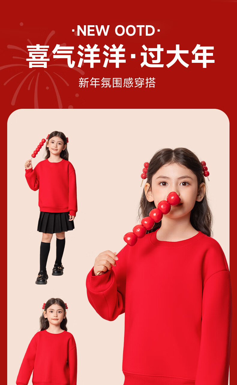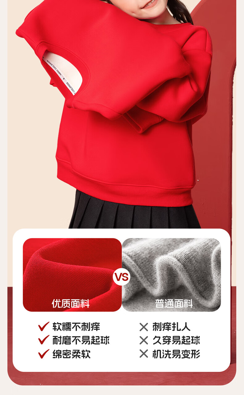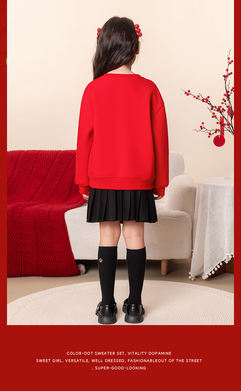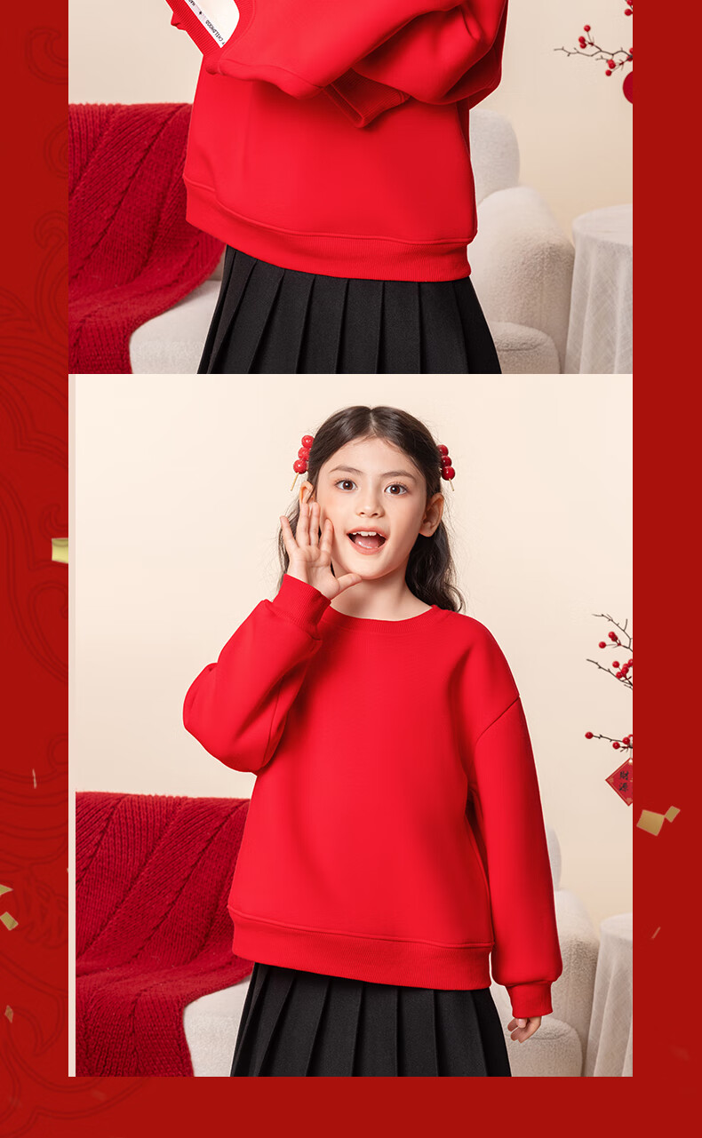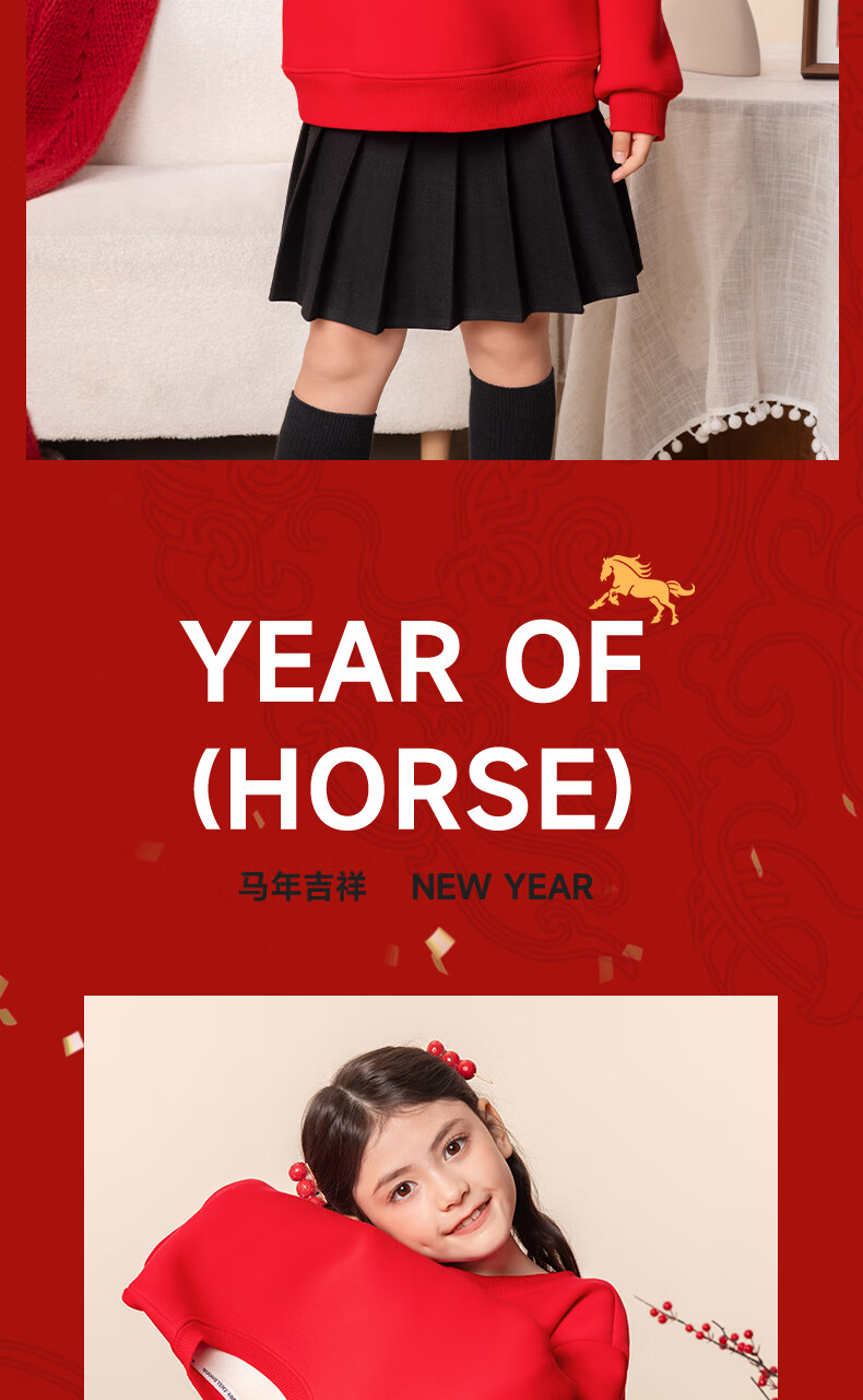小马宝莉【马年特辑】女童加绒卫衣新年装儿童红色拜年服马年冬季过年上衣 红 印章碧琪中_2 160