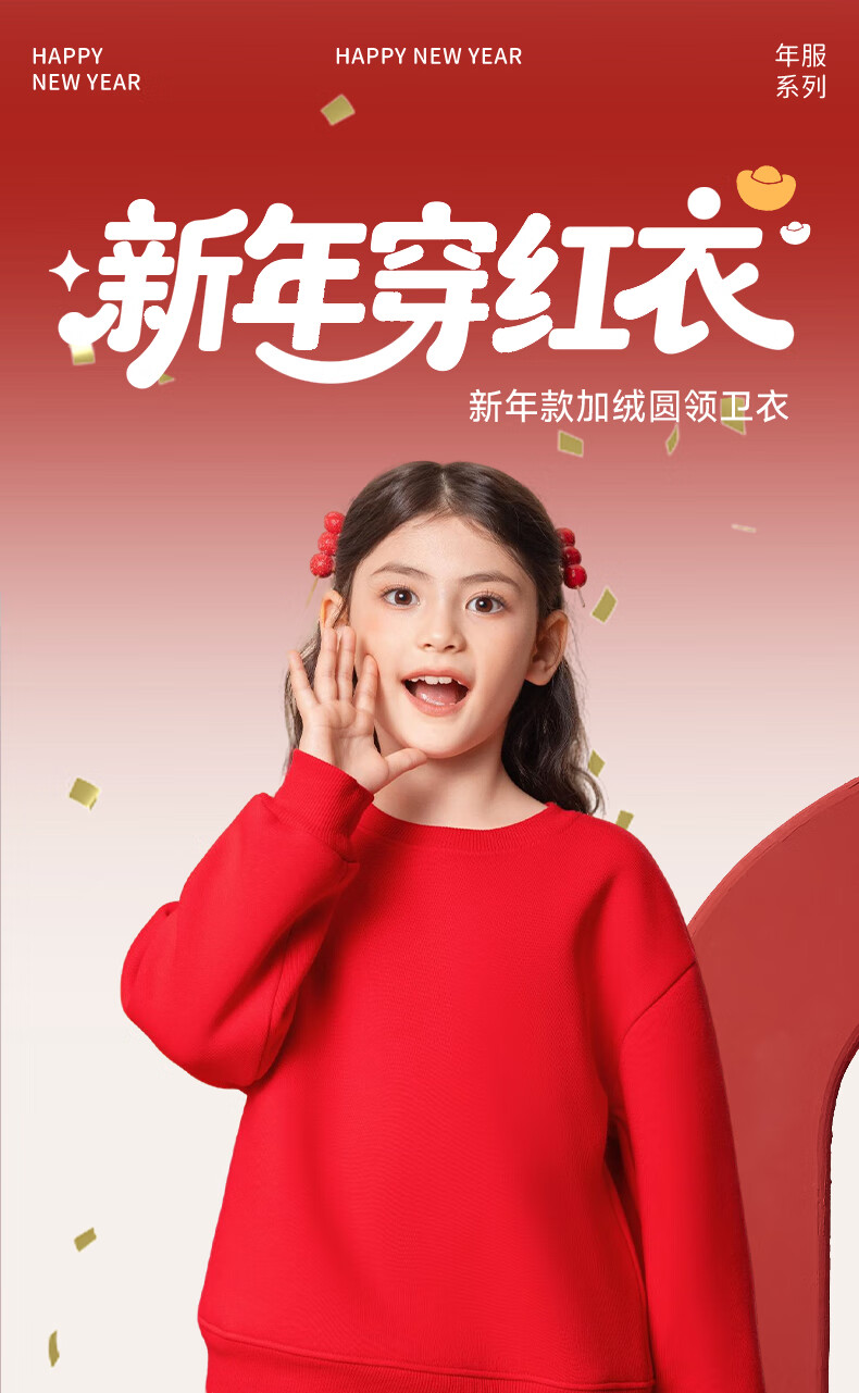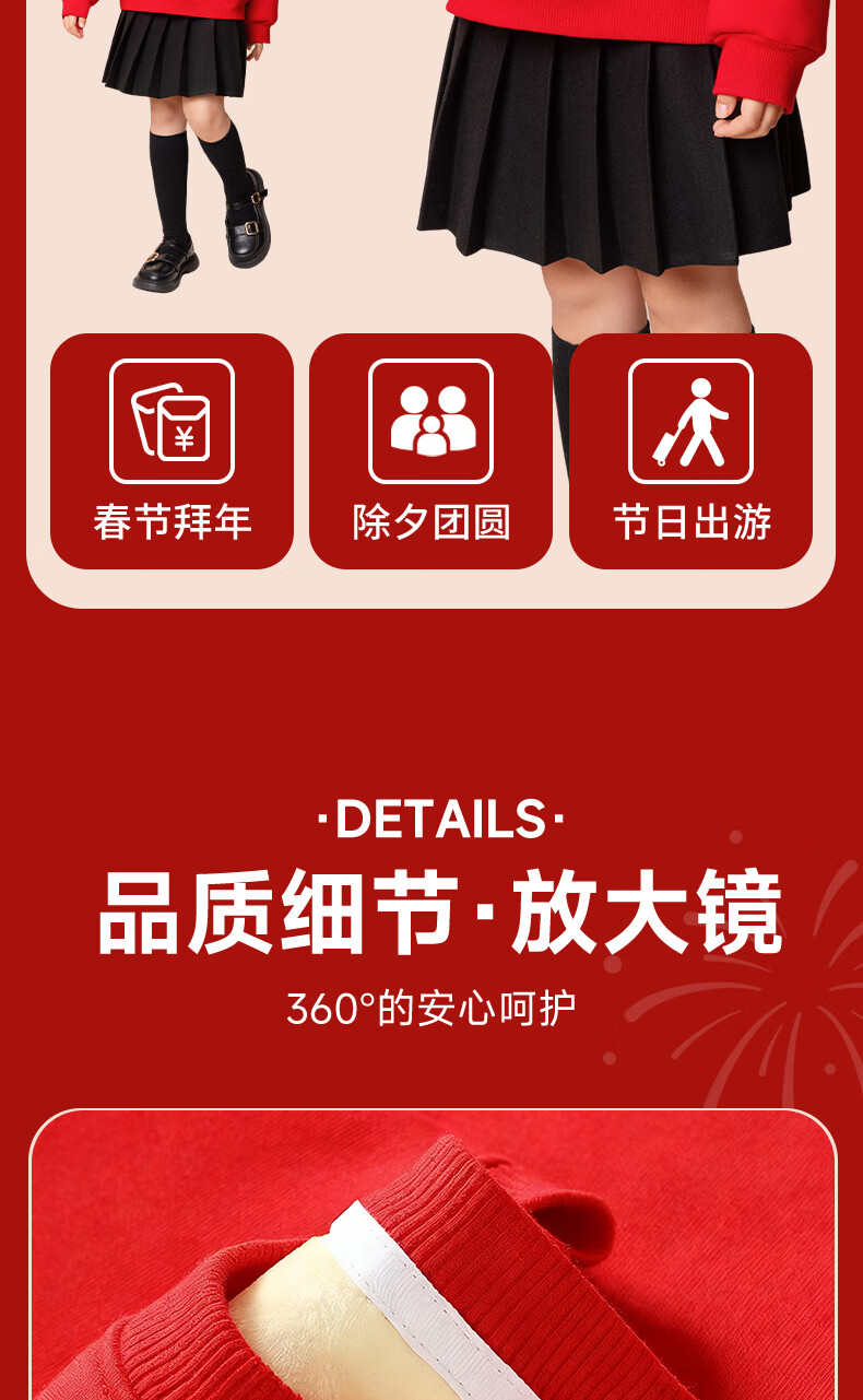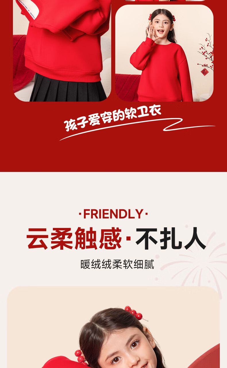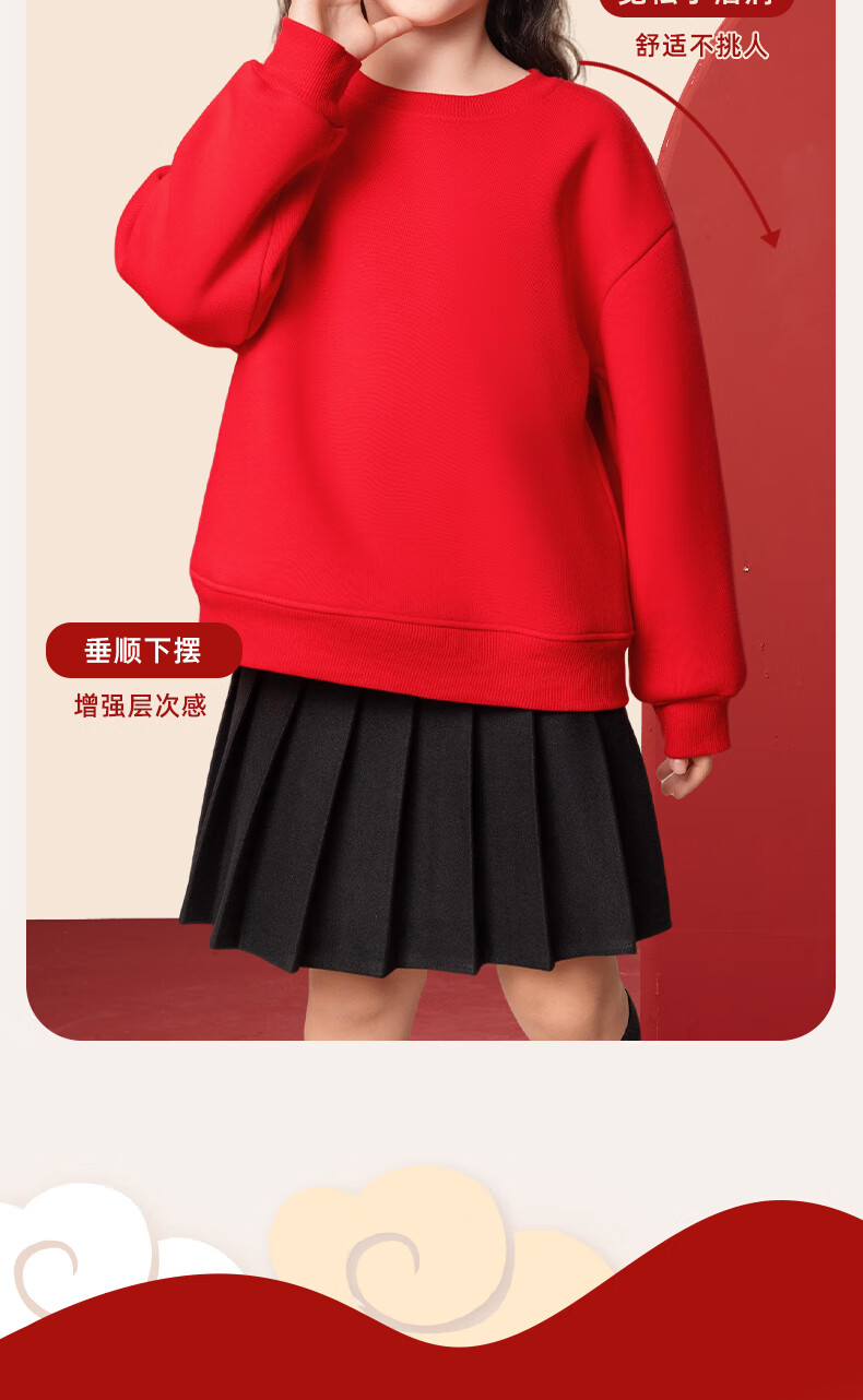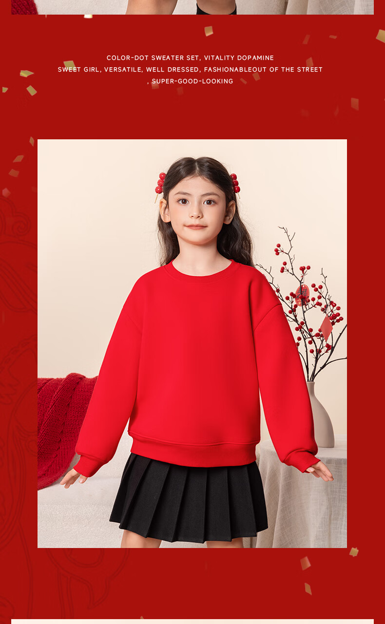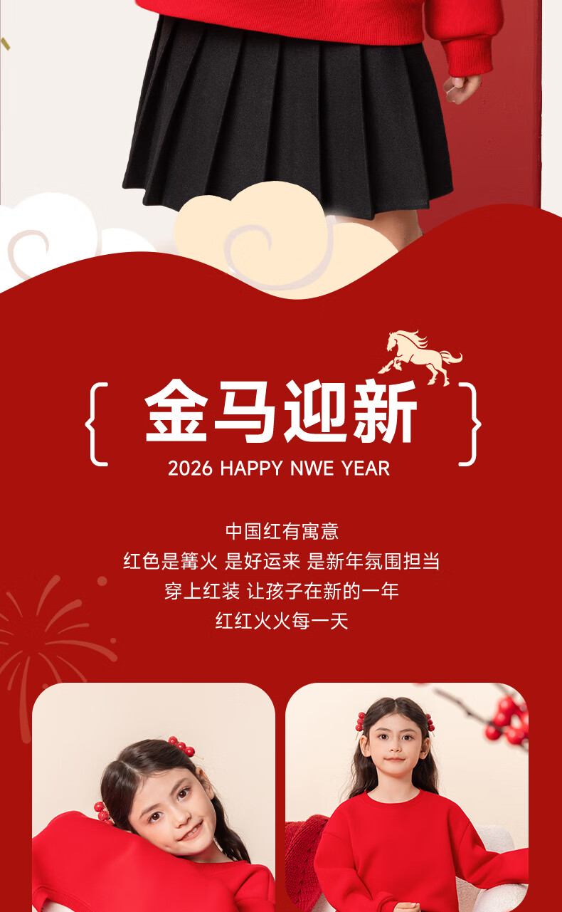 小马宝莉【马年特辑】女童加绒卫衣新年装儿童红色拜年服马年冬季过年上衣 红 印章碧琪中_2 160