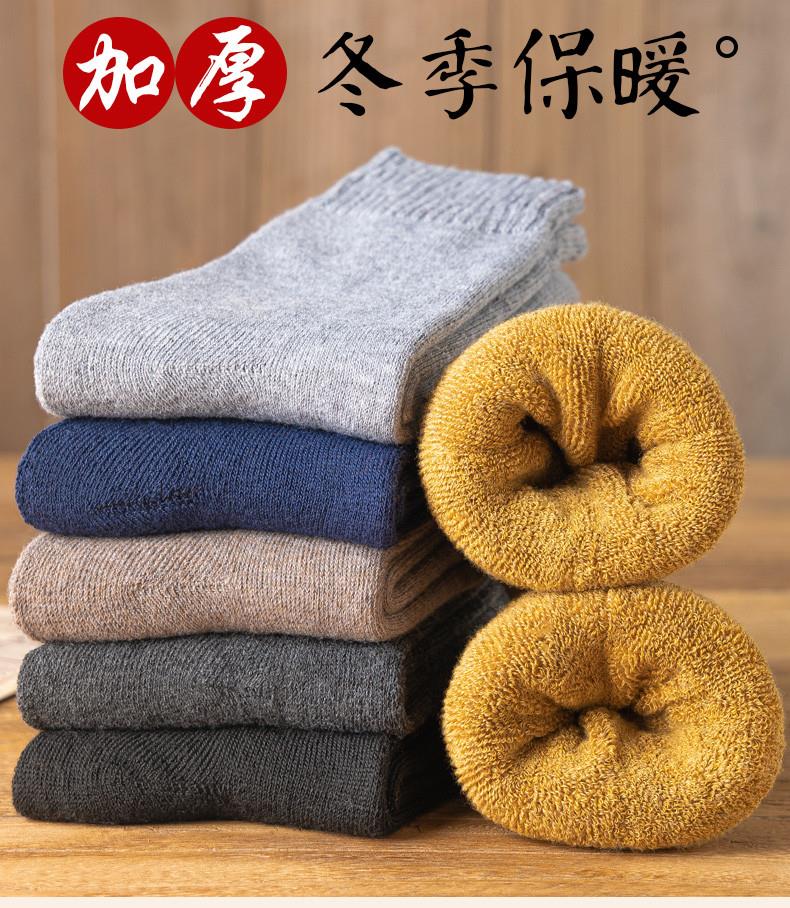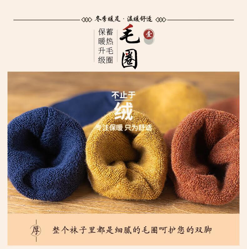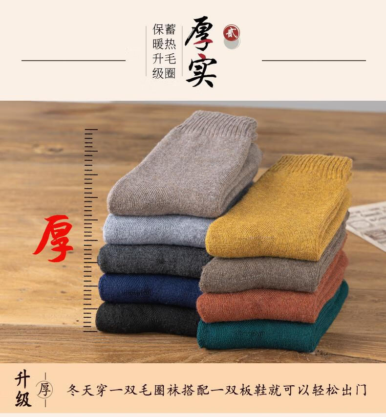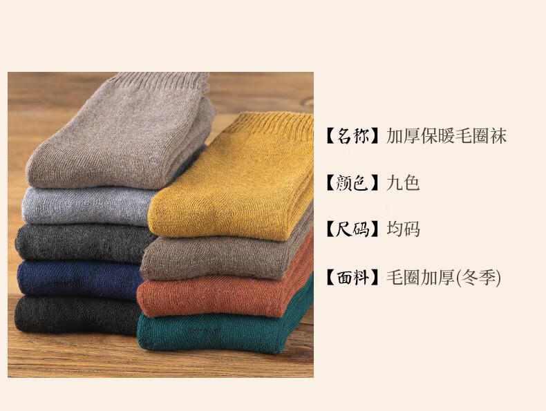 芬腾毛圈袜秋冬季男款加厚保暖蓄热加绒冬天袜纯色超厚中长筒防臭袜子 (随机色) 1双