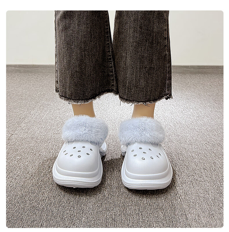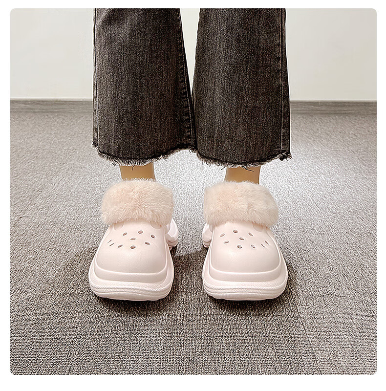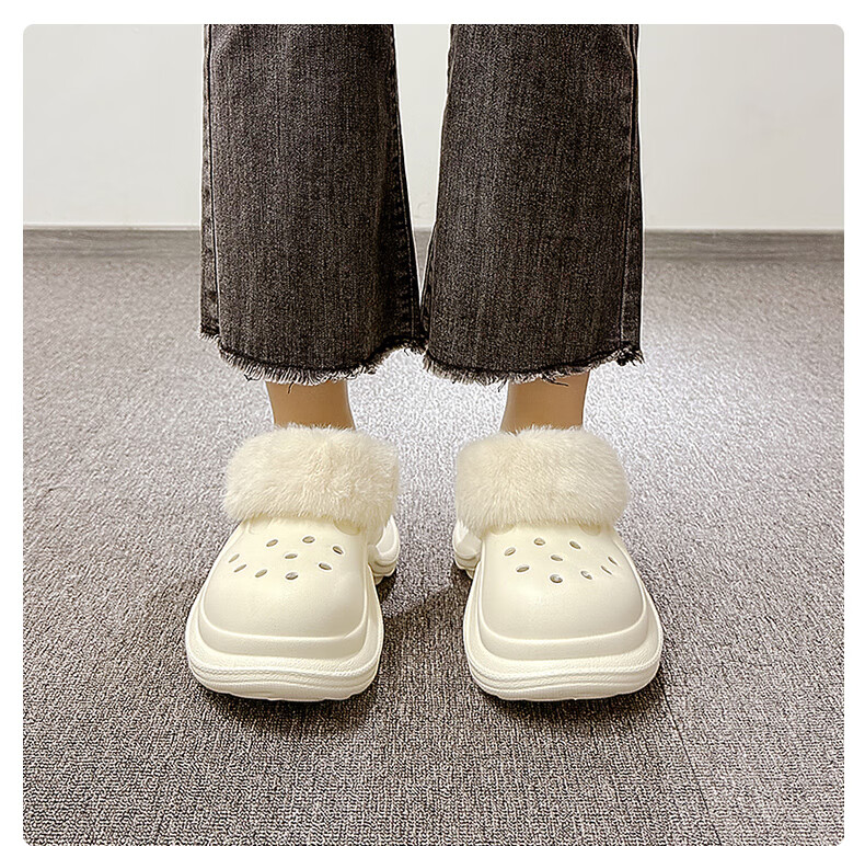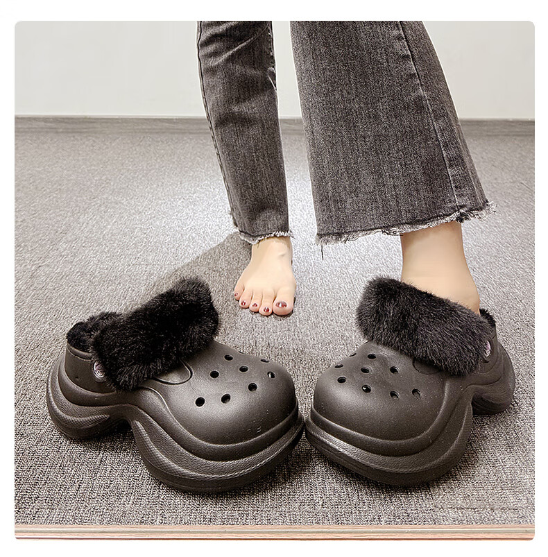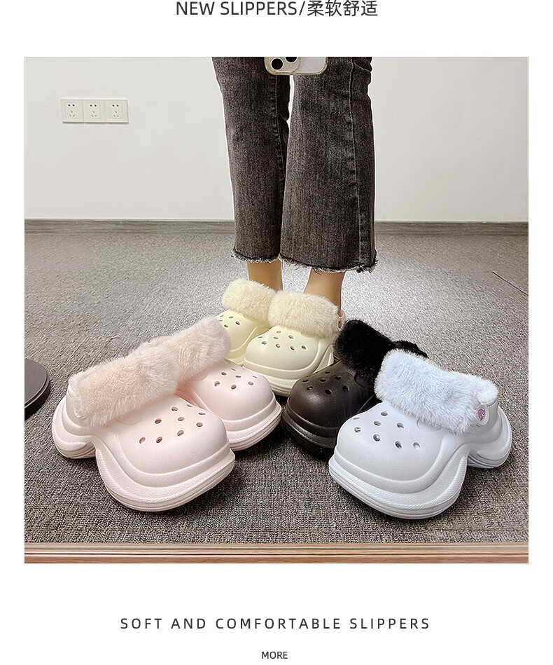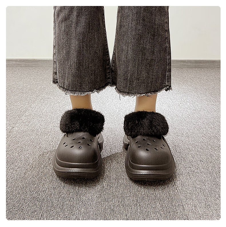 仙女风松糕厚底棉鞋女冬季防水外穿可爱超时尚包跟加绒防滑棉拖鞋 黑色 35