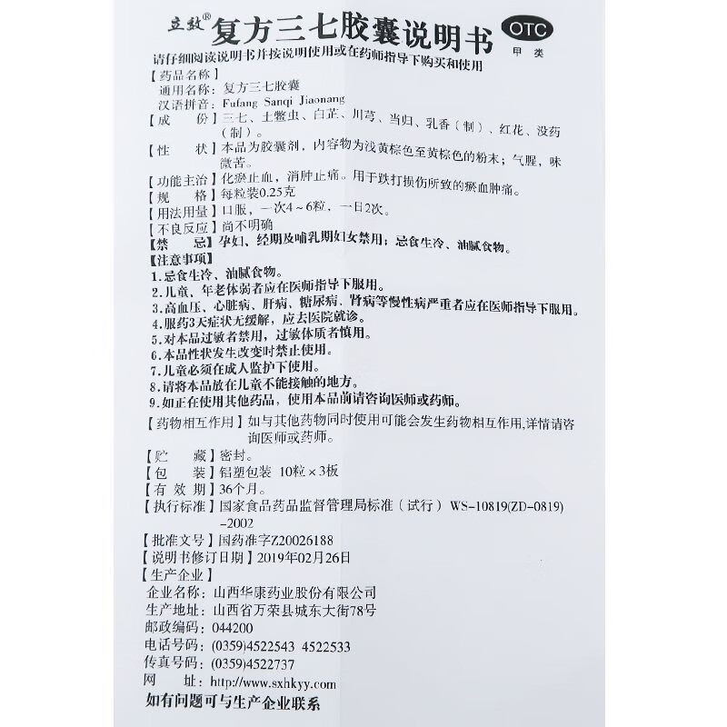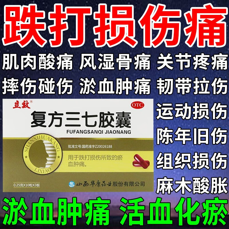 治跌打损伤扭伤韧带拉伤淤血肿痛摔伤碰伤软组织损伤胀痛麻木消肿止痛活血化瘀药 复方三七胶囊 【消肿止痛】三盒装