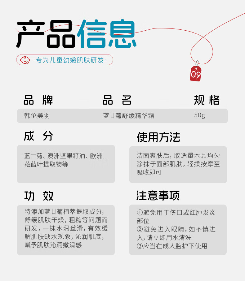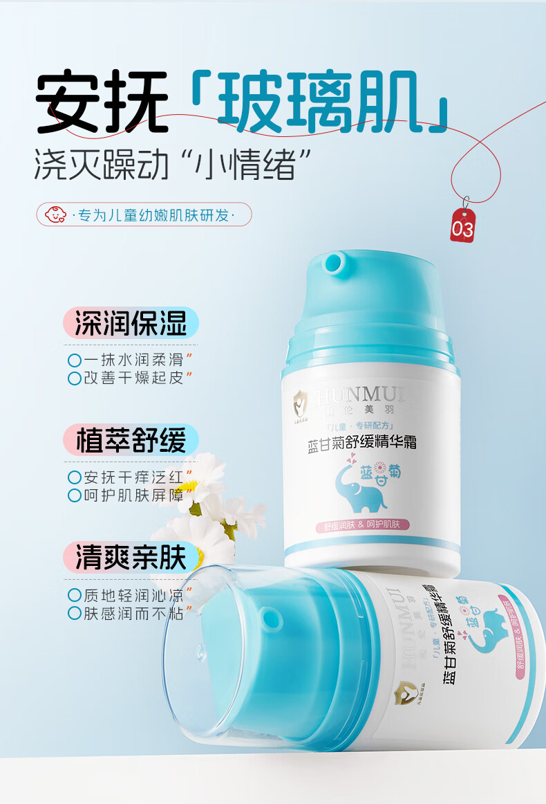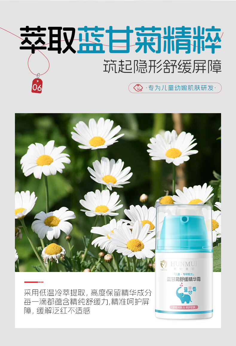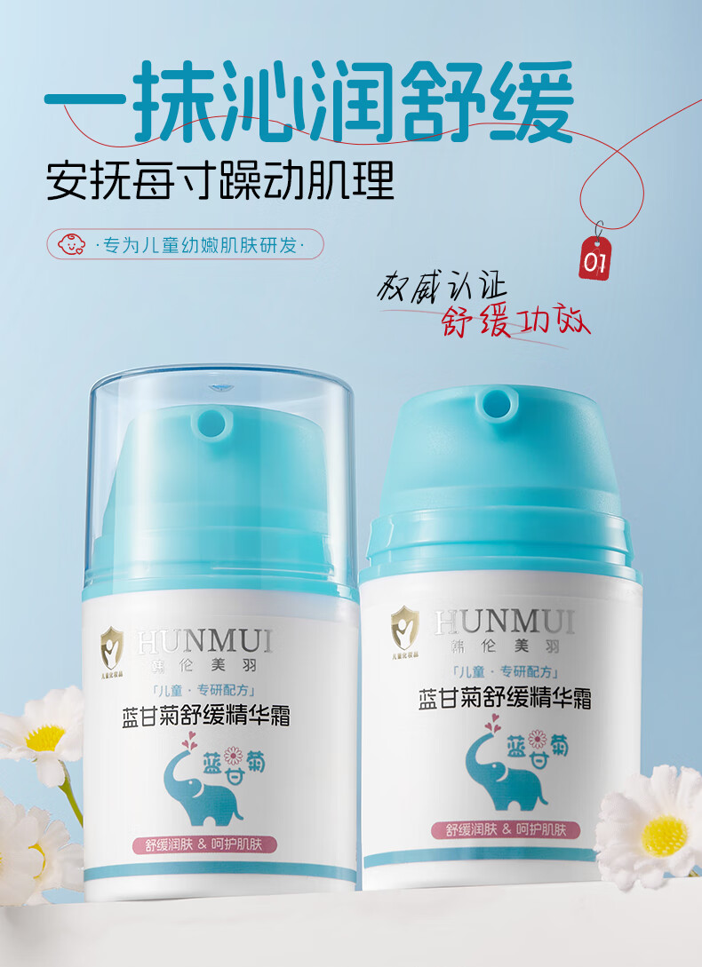 韩伦美羽蓝甘菊舒缓精华霜秋冬季儿童面霜青少年男护肤女保湿滋润 50g 2瓶