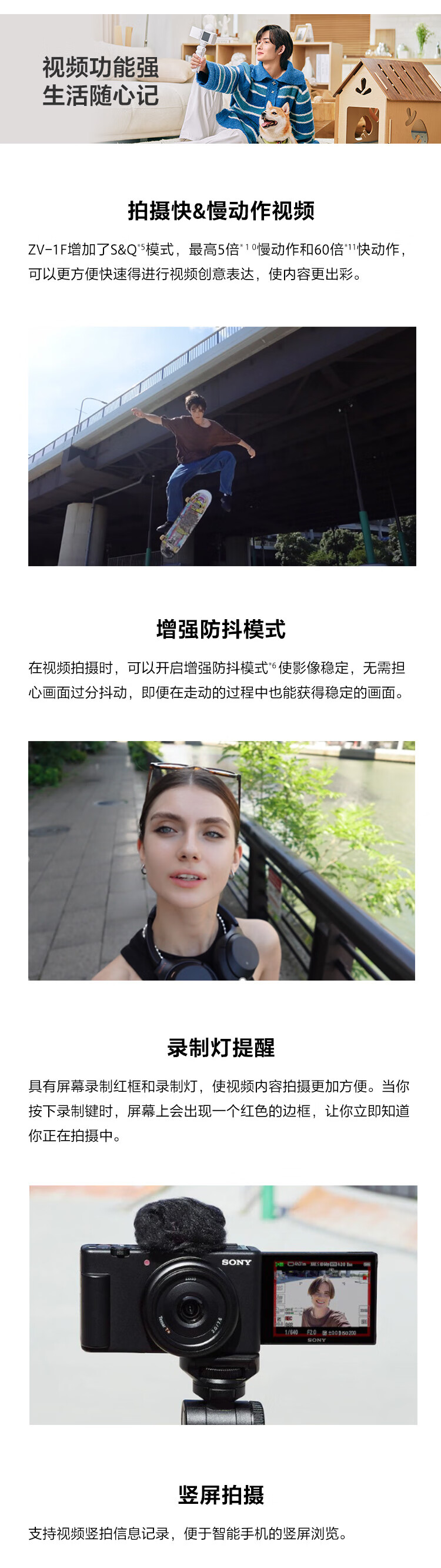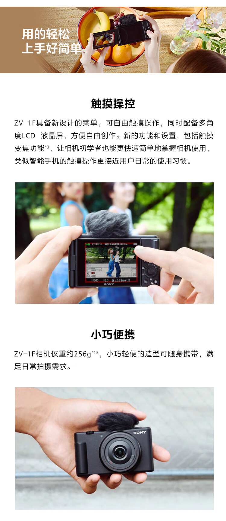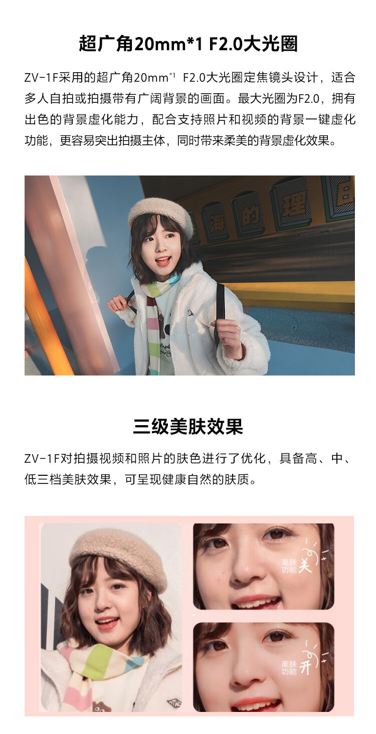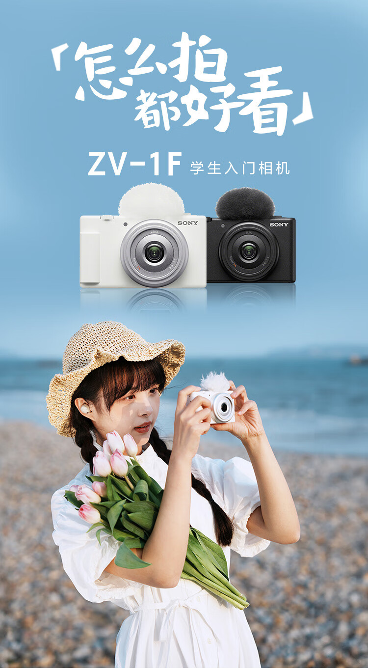 索尼(SONY)【官方直营】 索尼ZV-1F 学生数码相机 1英寸影像传感器 超广角定焦20mm 数码相机 卡片机 白色