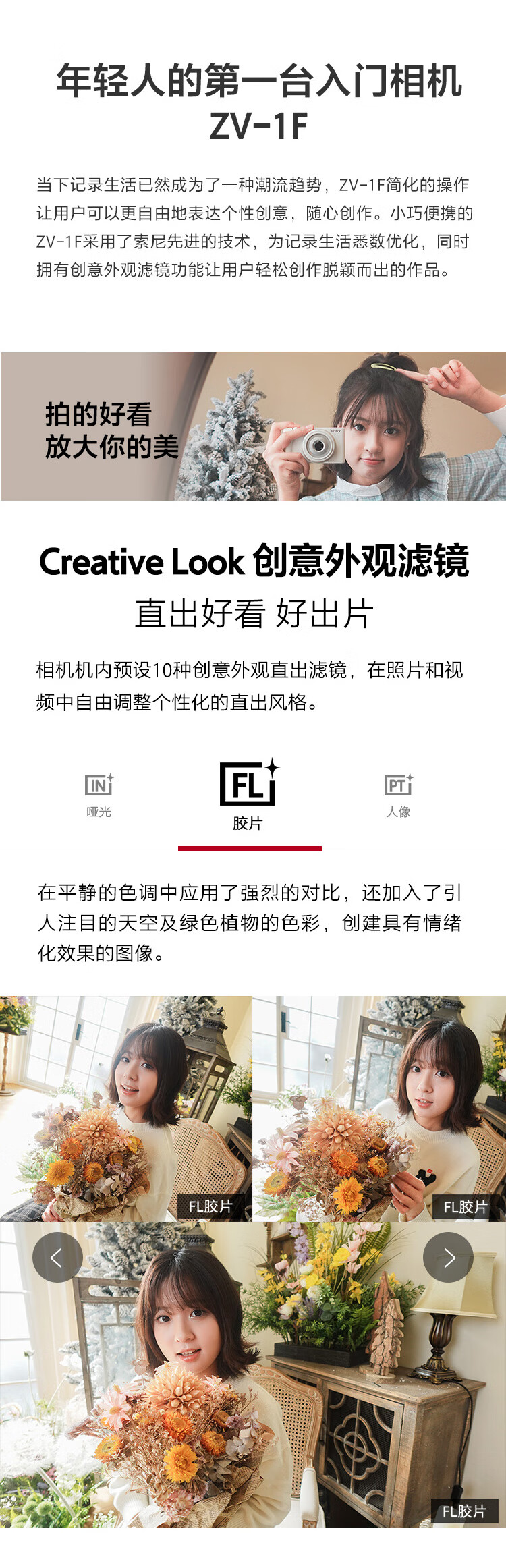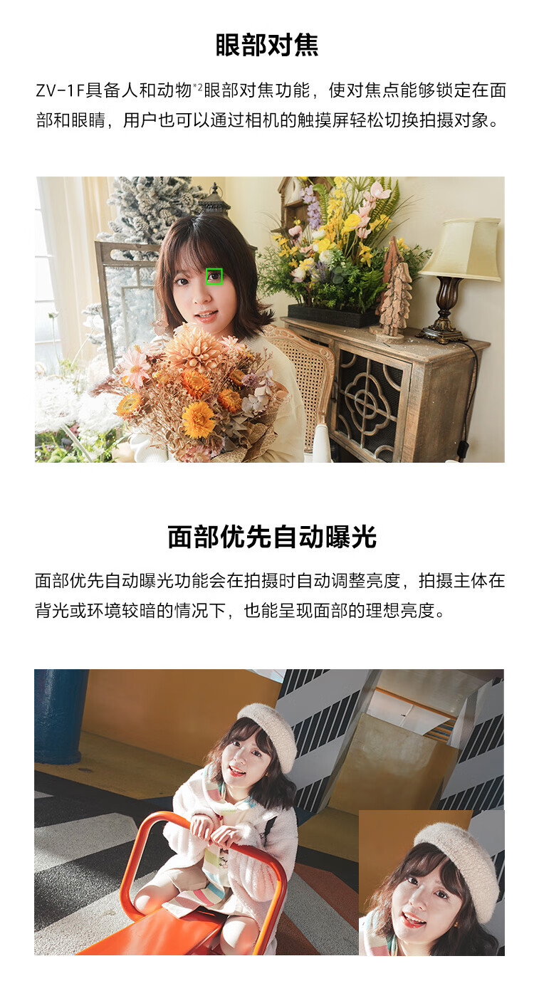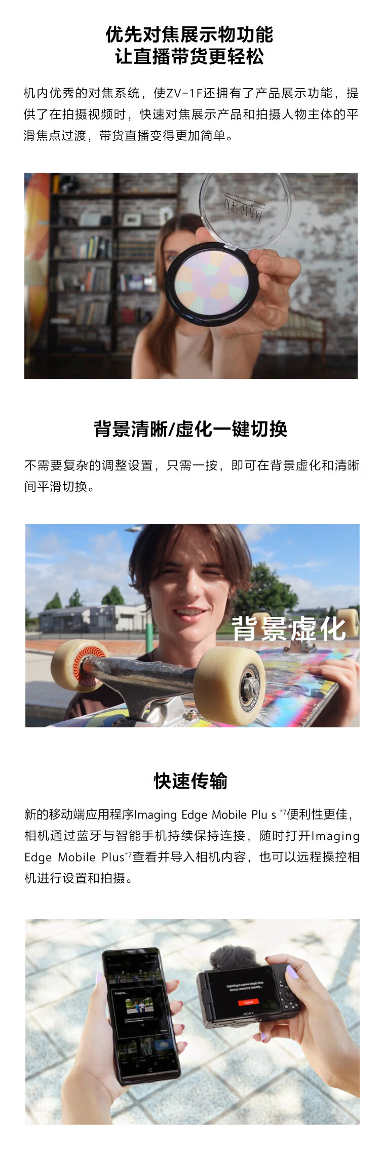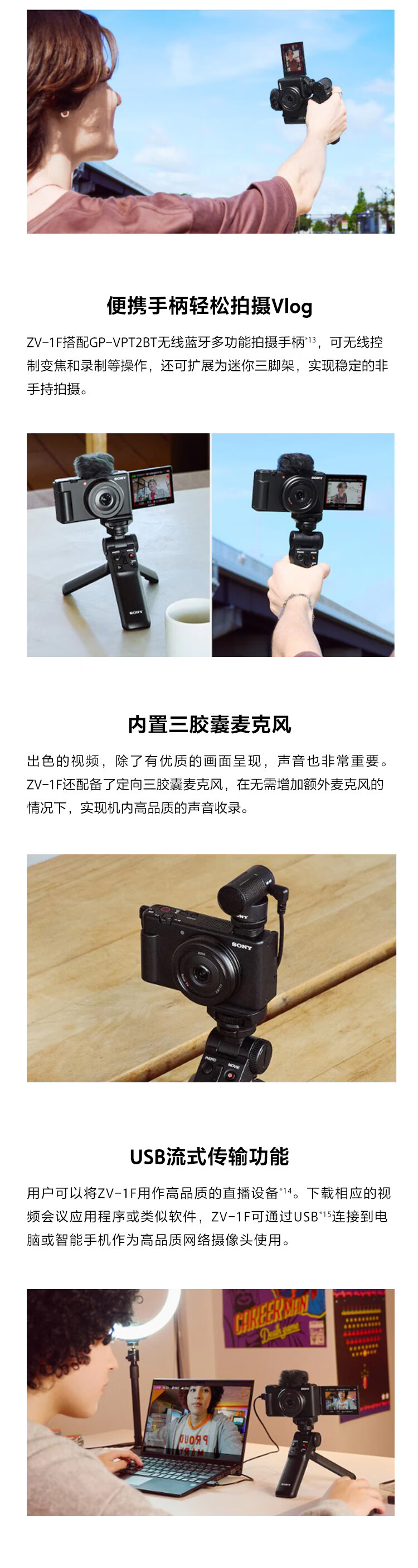 索尼(SONY)【官方直营】 索尼ZV-1F 学生数码相机 1英寸影像传感器 超广角定焦20mm 数码相机 卡片机 白色