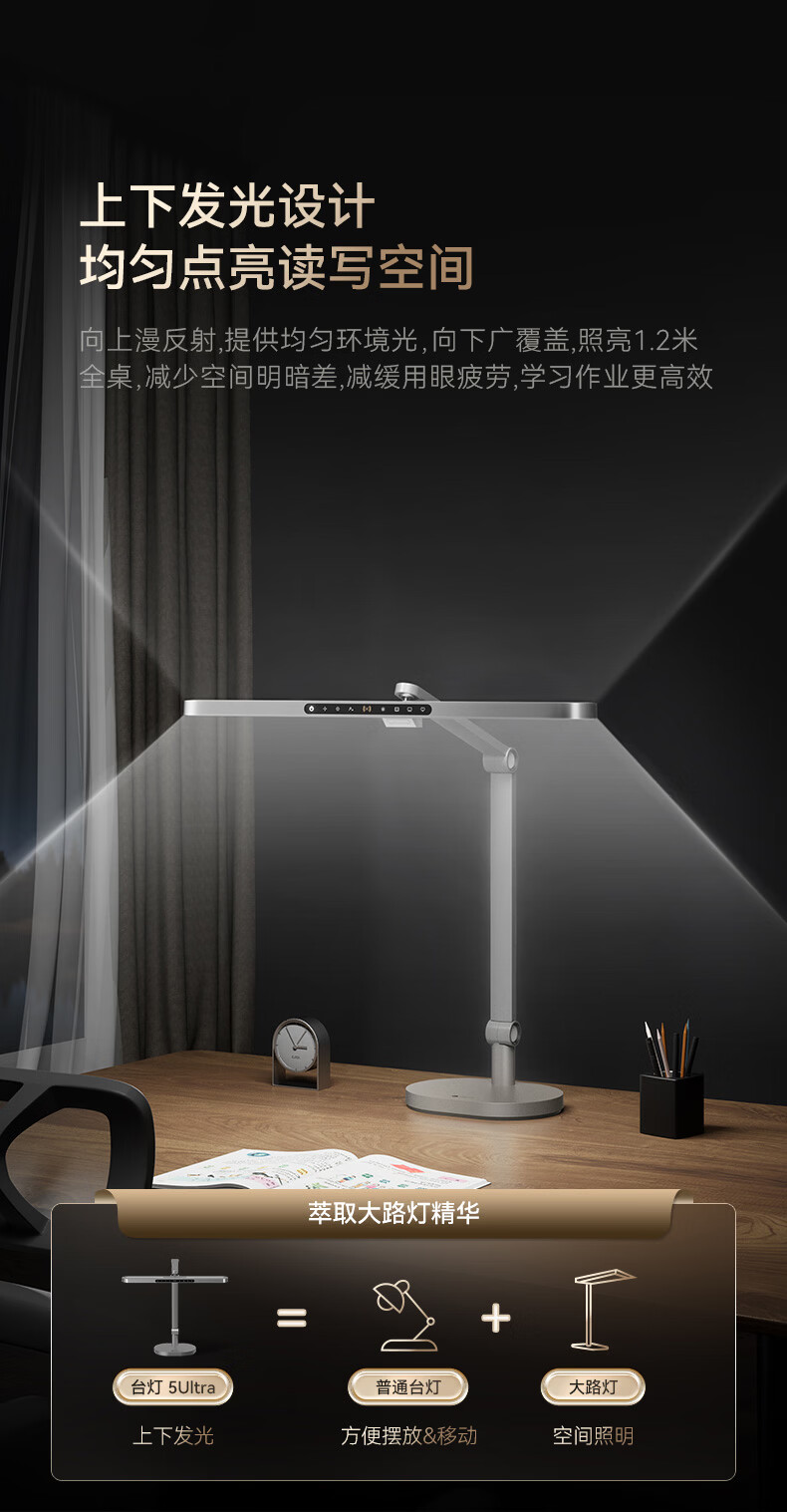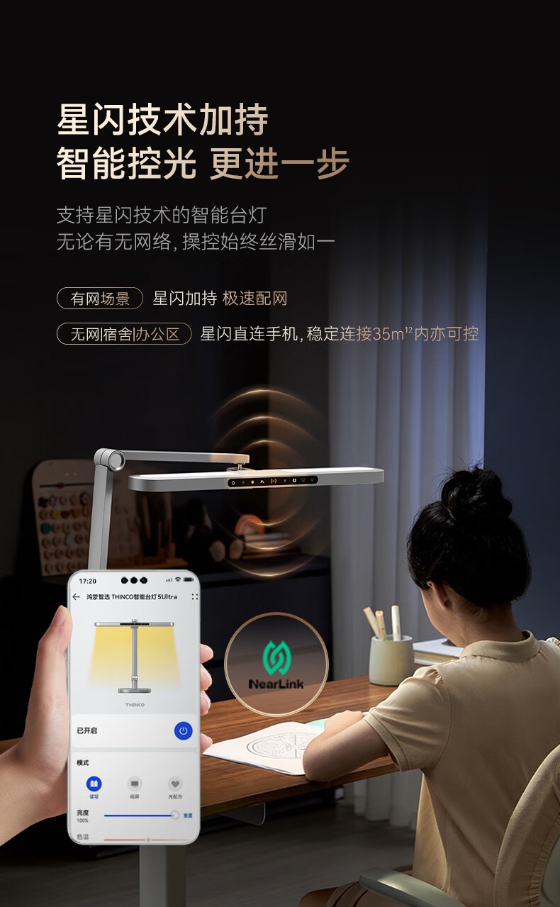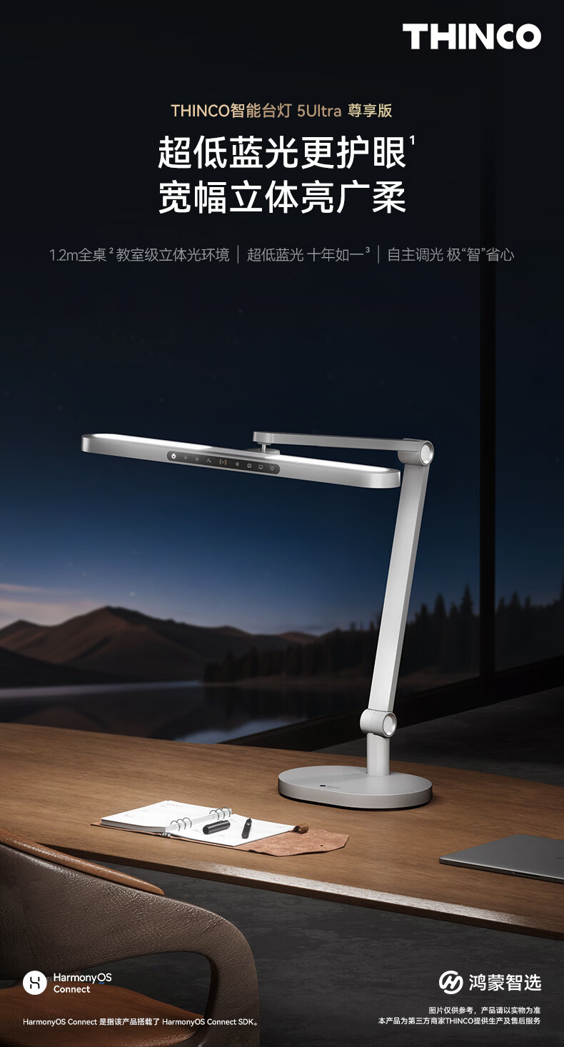 鸿蒙智选THINCO智能台灯学生护眼学习防蓝防近视光感应灯5Ultra星河银